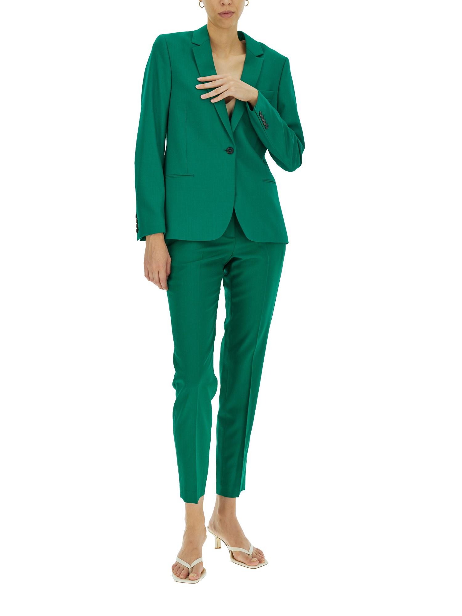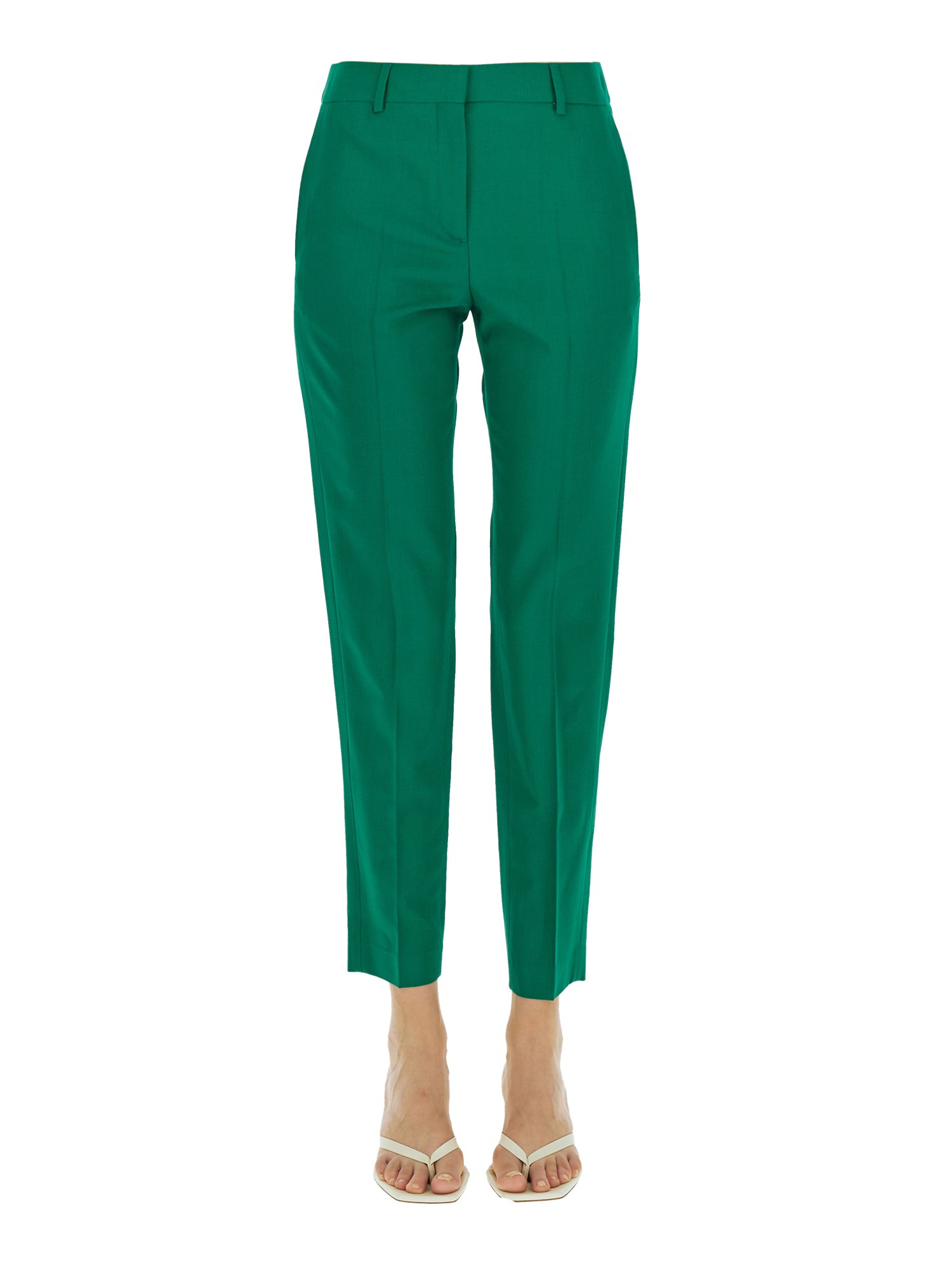 The Button Hook and Zipper Front Straight Leg Wool Pants from PS by Paul Smith are a must-have staple for your closet. These pants are made of 100% wool and feature a button hook and zipper front closure for easy access. The straight-leg design allows for a perfect fit in all body types and is easily paired with your favourite shirt or sweater.