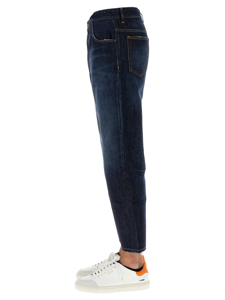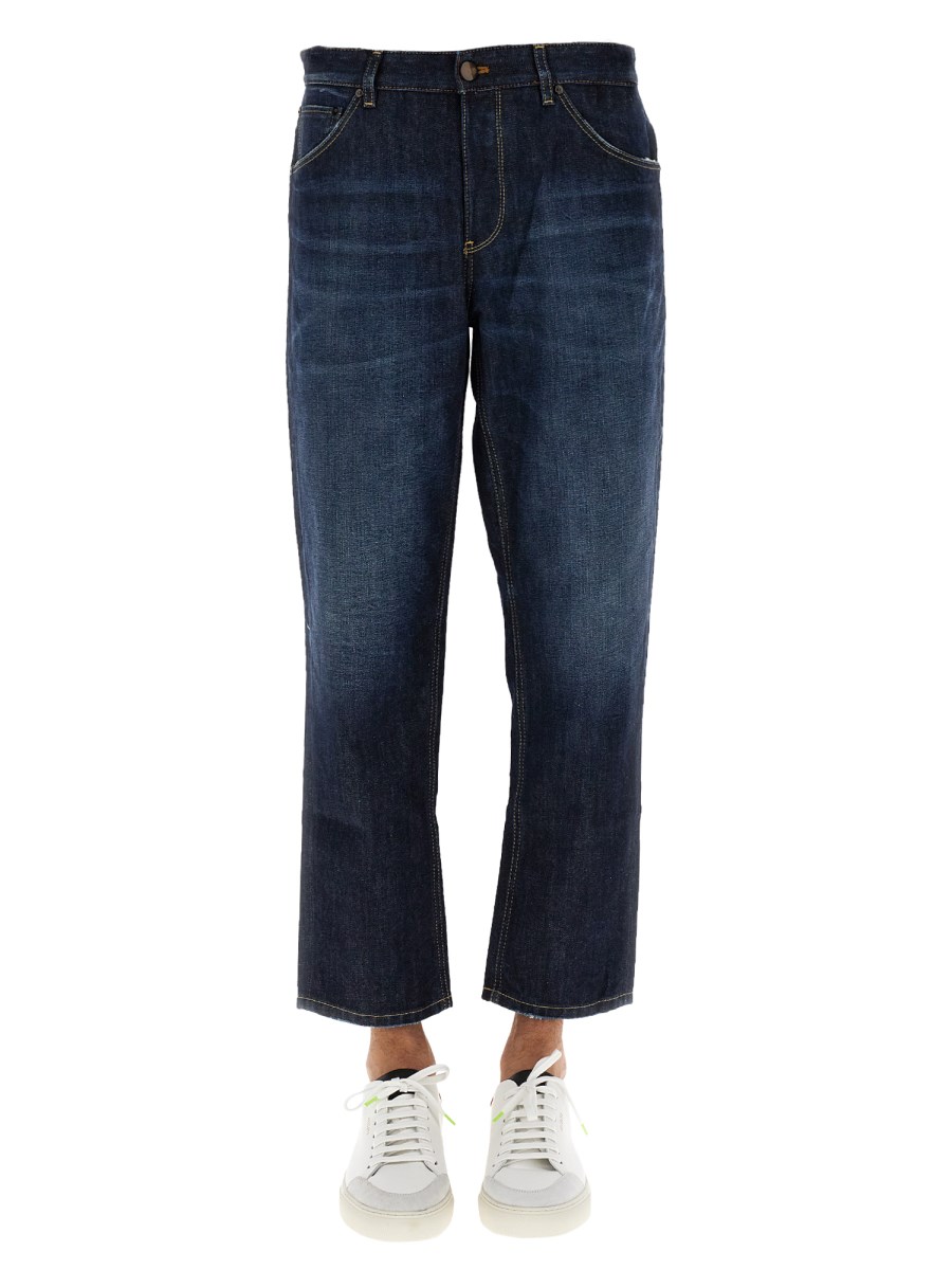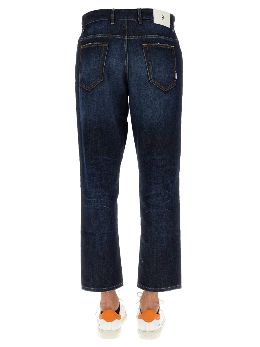 The most comfortable jeans ever, these PT Torino jeans have a classic five-pocket design, belt loops at the waist, and button and zipper closure. They're made of 100% cotton denim and are available in a variety of sizes. It has a logo patch on the back and gives a relaxed fit.