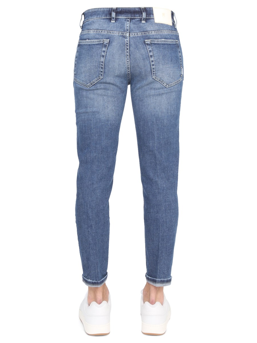 Cotton denim jeans from PT Torino are a must-have for any fashion-savvy man. The slim fit denim jeans feature a straight leg, two back pockets, and a logo patch on the left pocket. The jeans are offered in a wide variety of colours and fabrics, including the very popular raw denim, so be sure to browse our selection of men's jeans.