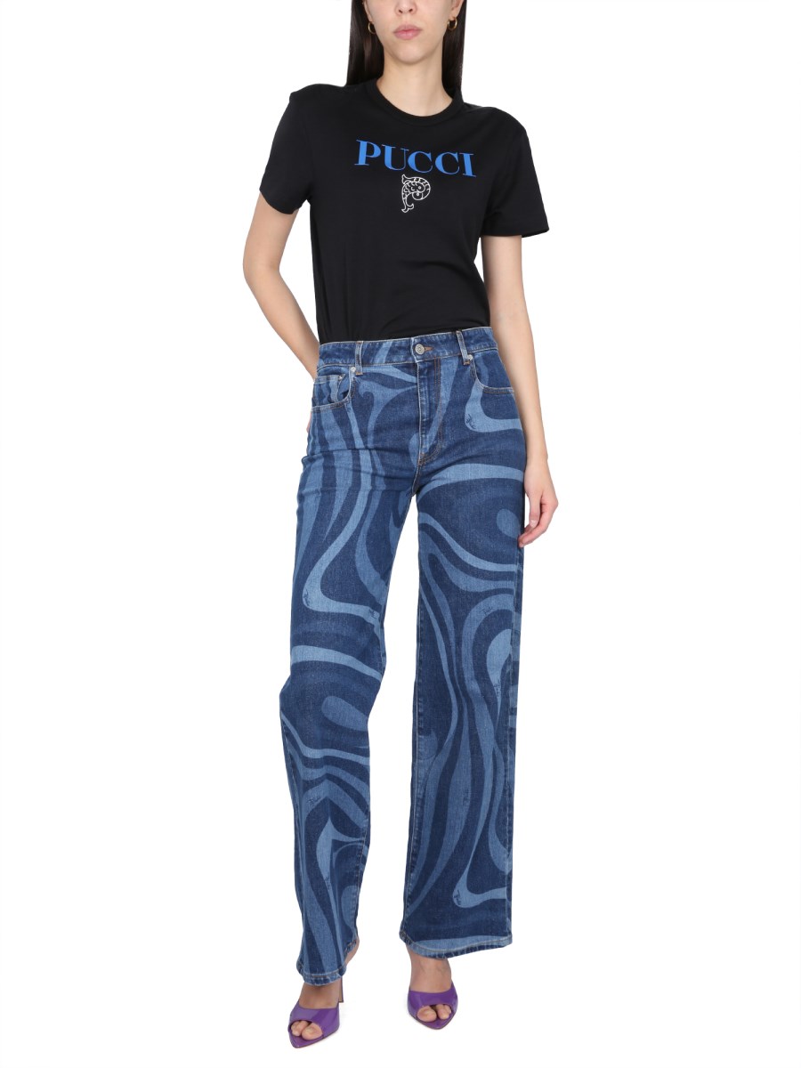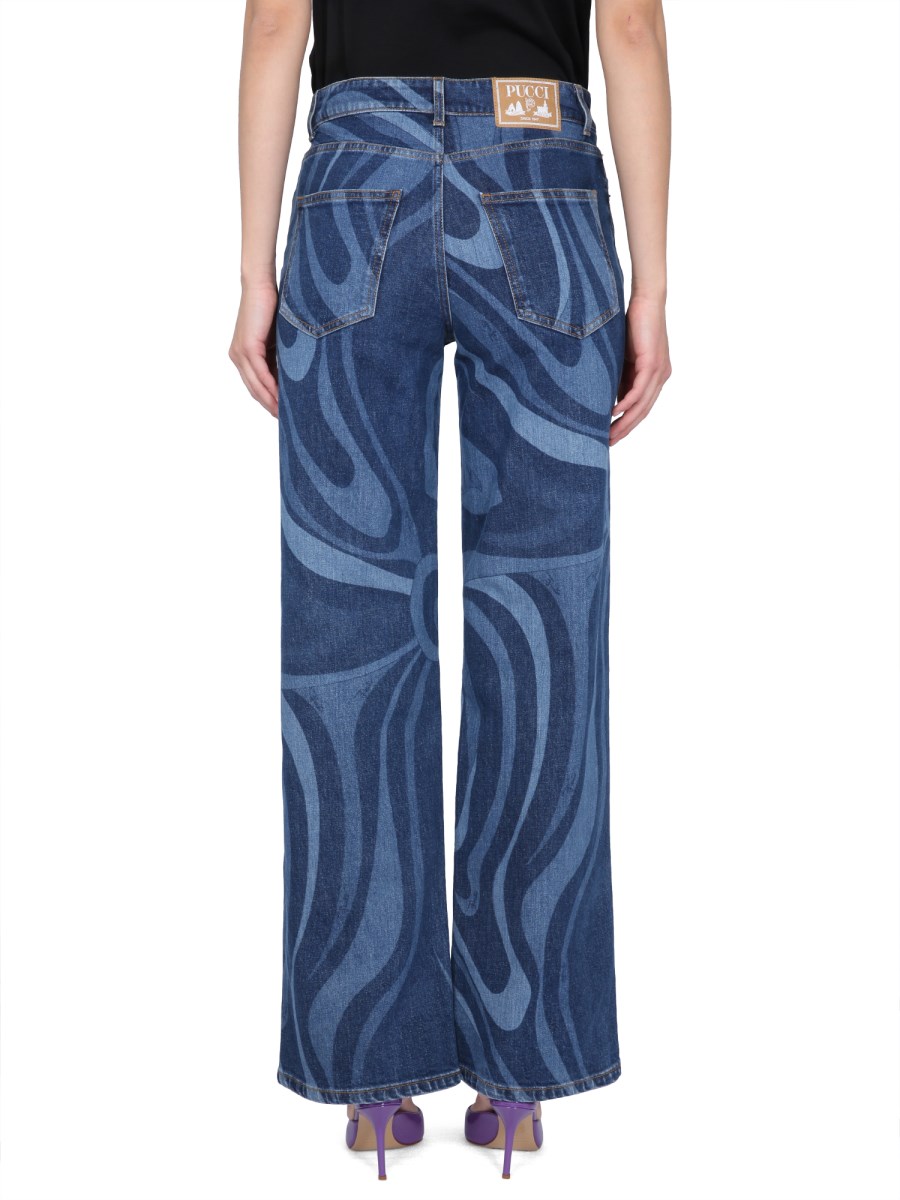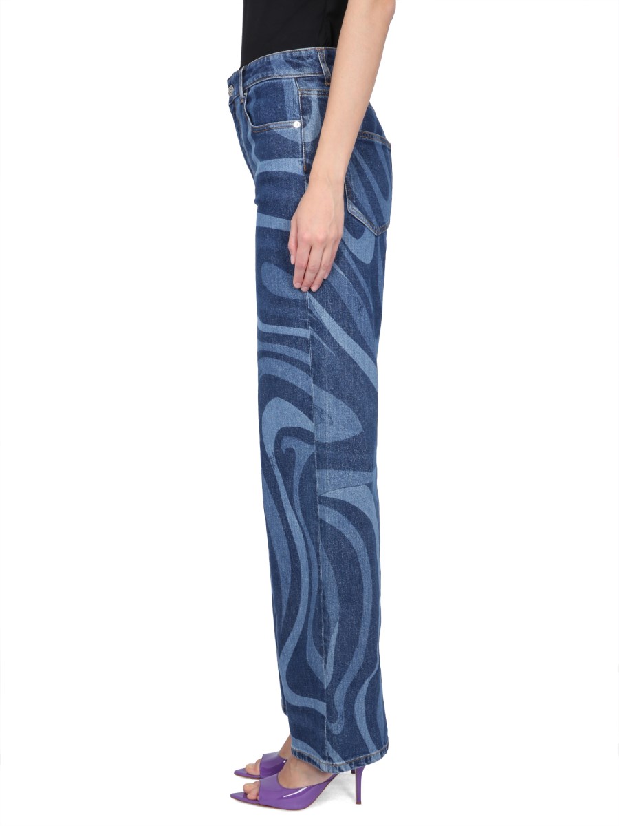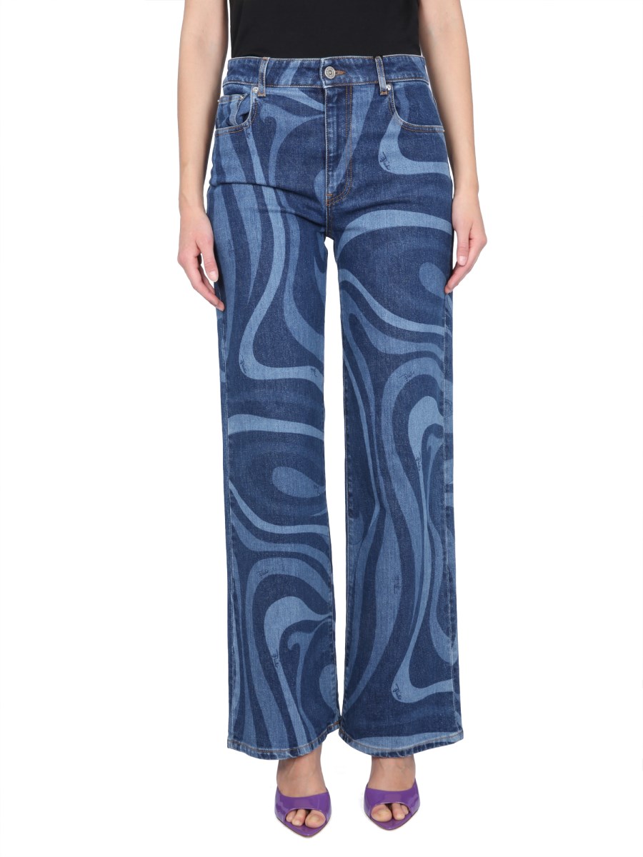 These jeans from Pucci are made with 100% cotton and are a must-have for any fashionista's closet. These jeans come with a button and zipper closure on the front. They have belt loops throughout the waist and are finished with a five-pocket construction. The regular-fit jeans have a striking marble print.