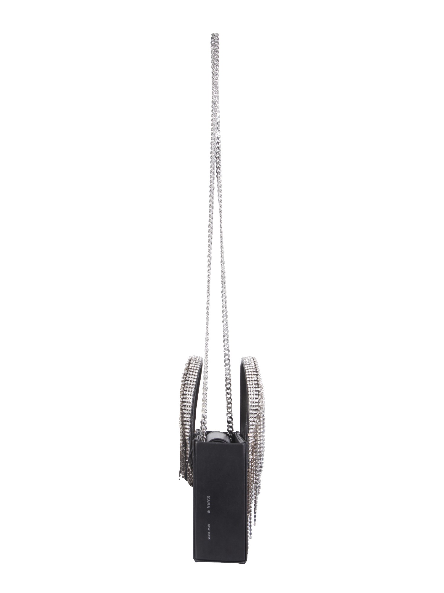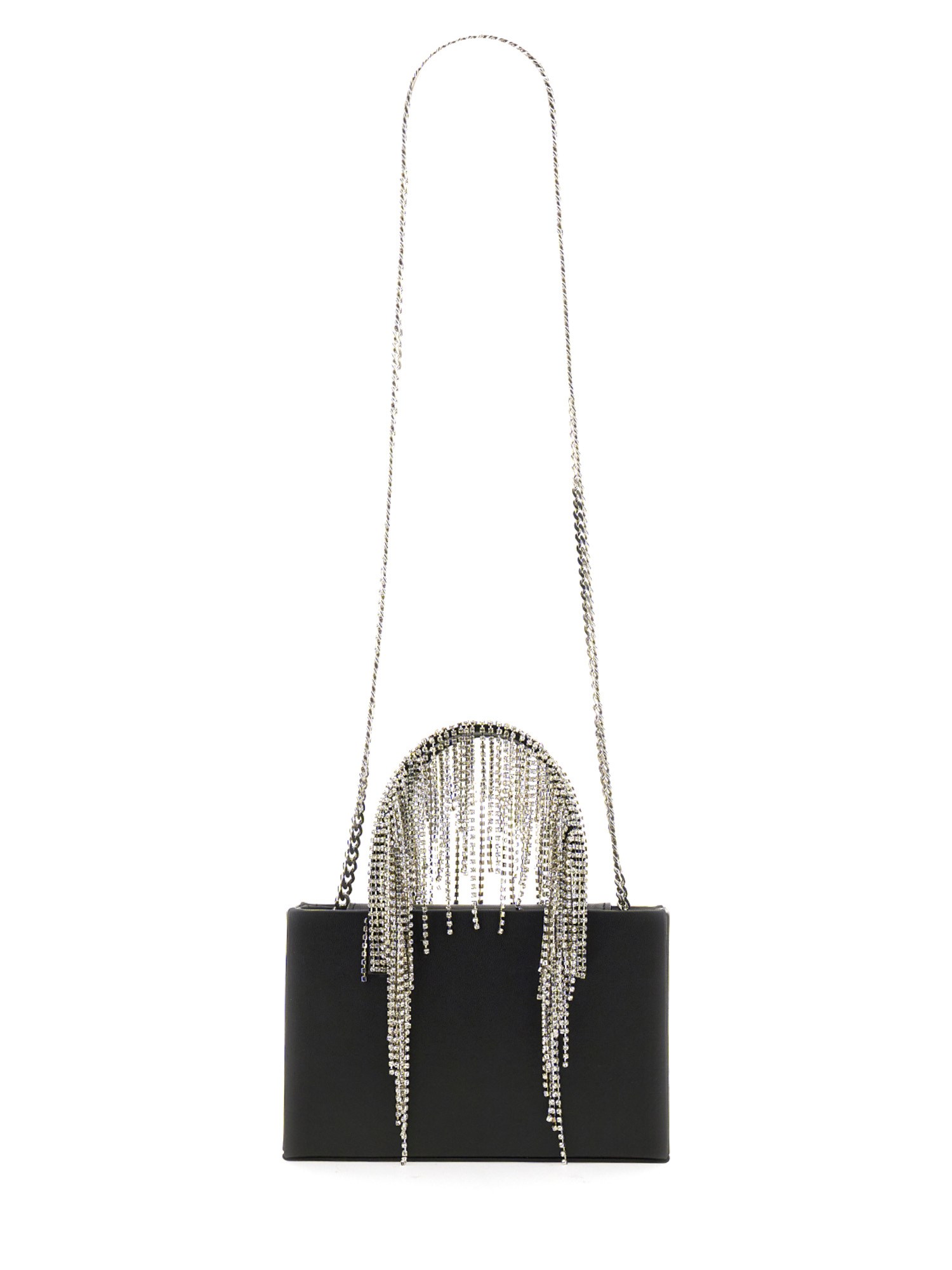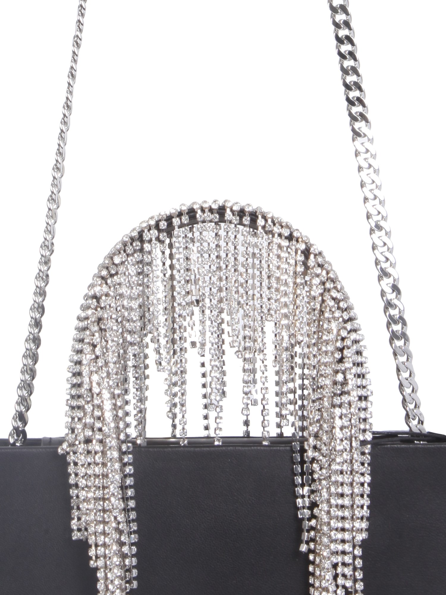 Introducing the Midi Crystal Fringe Tote. Lambskin leather body with a top opening that closes with leather flap and hidden magnet. Hold the handles dripping in crystal fringe in your hands or wear it over your shoulder with the silver chain strap. Please note this unique style was made by hand. This bag is delicate and needs to be handled with care.
