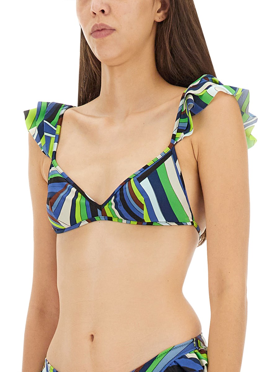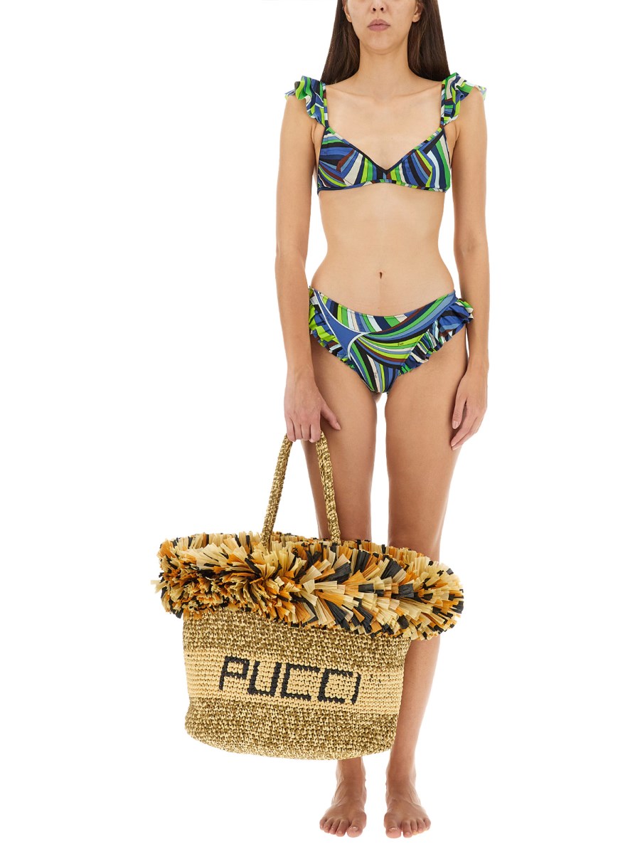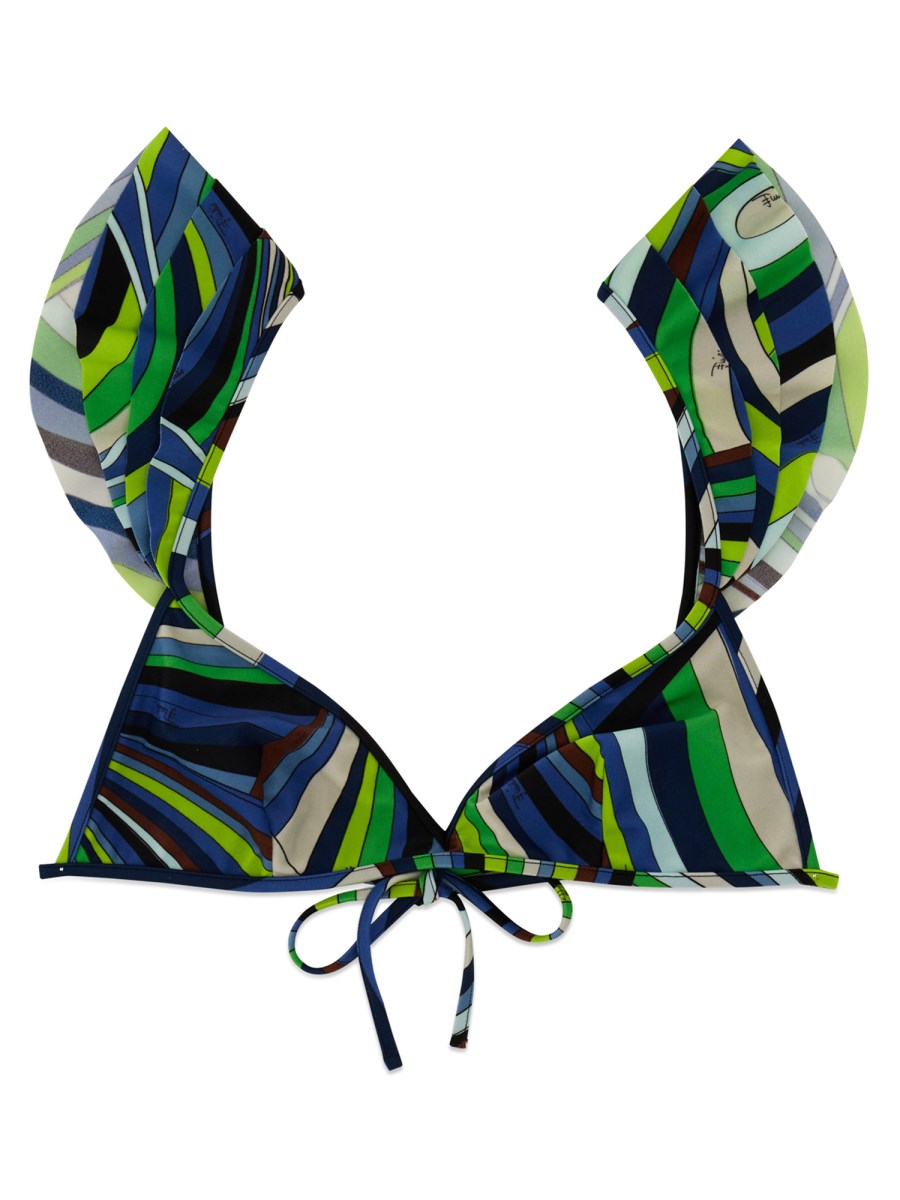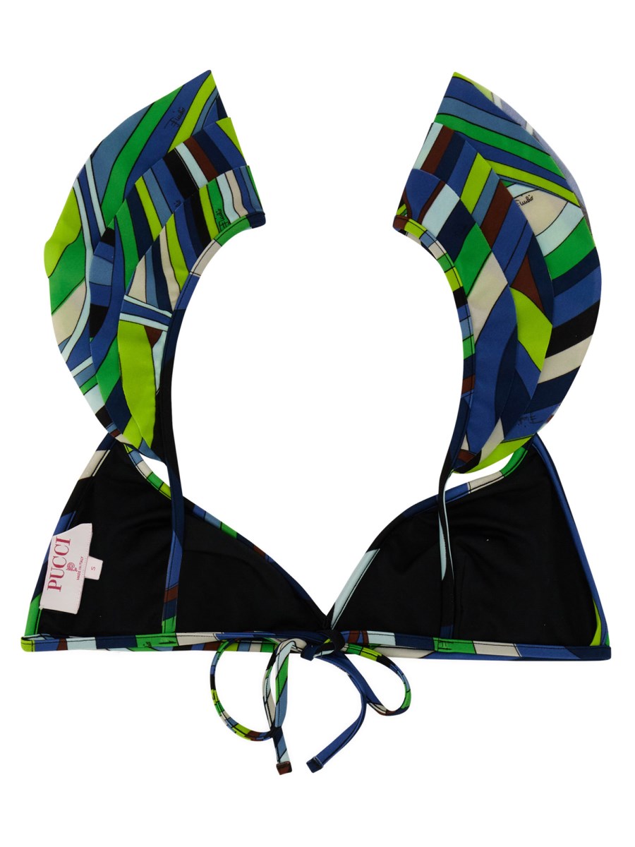 This classic swimsuit top from Pucci will make a statement for you on the beach, pool, or by the pool. Made of soft, stretchy fabric with a flattering neckline, it is perfect for a boho chic look. The swimsuit is adorned with a unique print that is easy to read and makes your day!