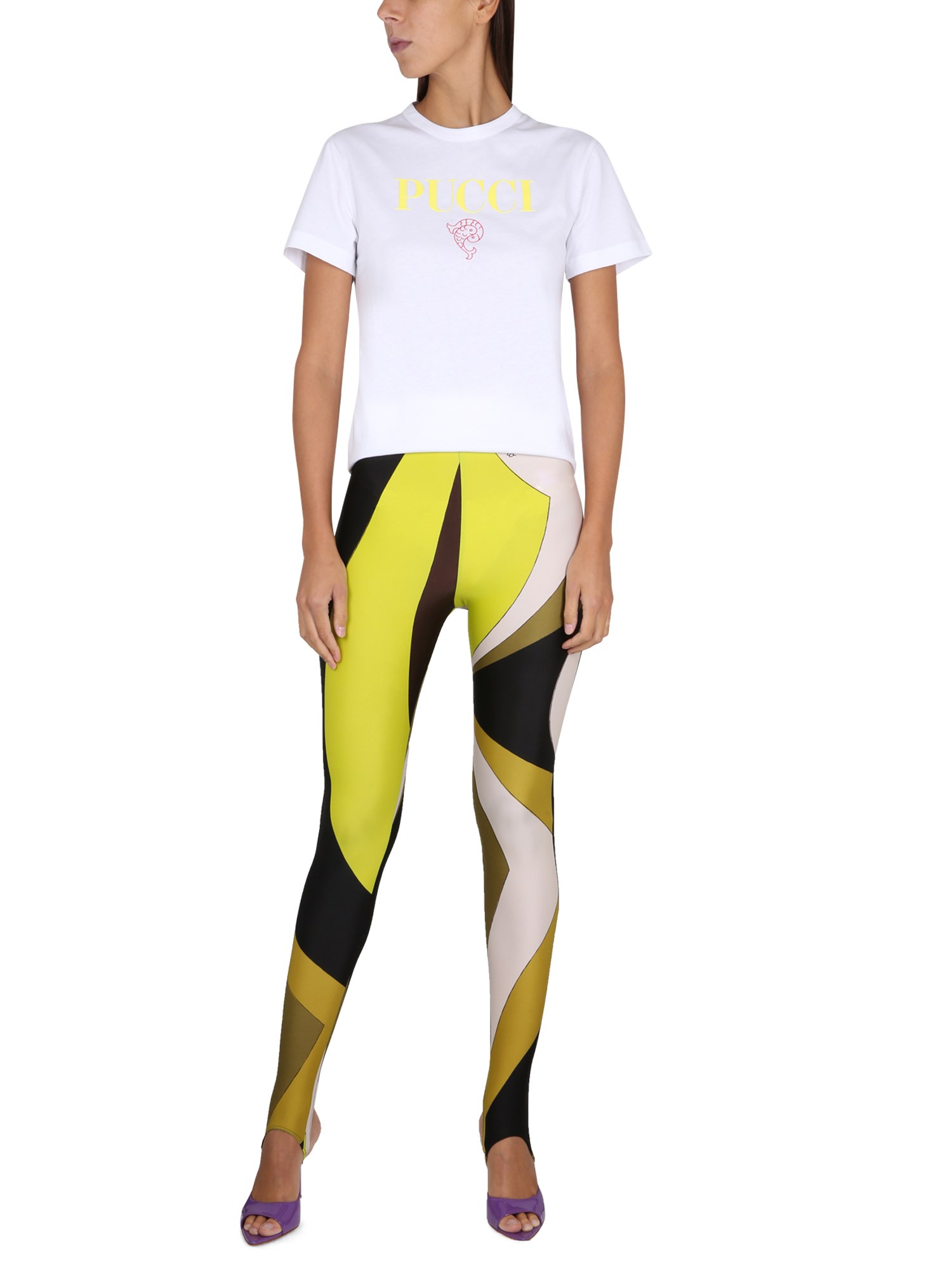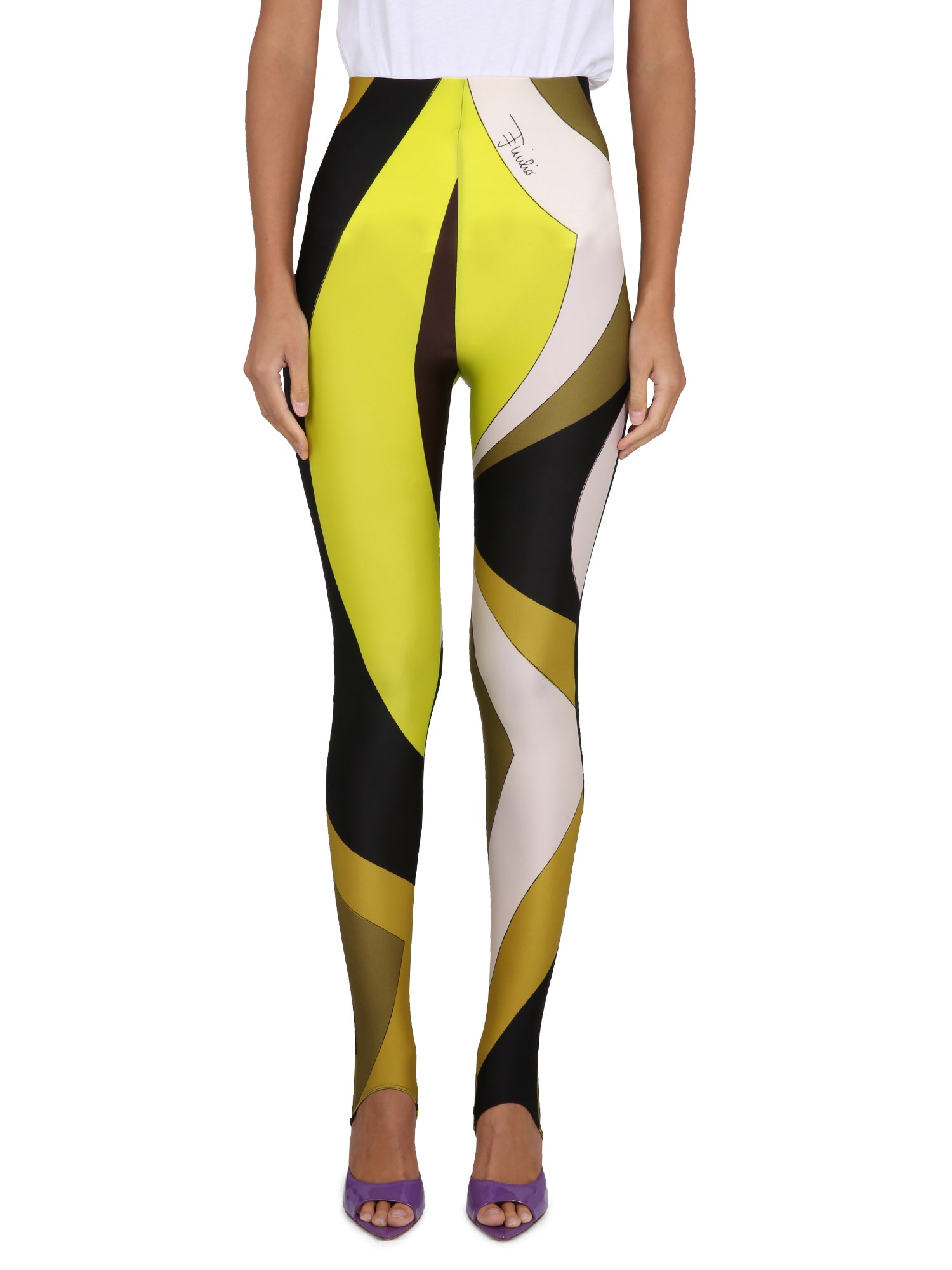 These stretchy, sleek and stylish leggings from Pucci will be your go-to for fitness and lounging. Made from a premium quality stretch lycra fabric, these leggings are breathable and comfortable. The waistband is elastic with an all-over print and the fabric is super stretchy, giving you a slim fit.