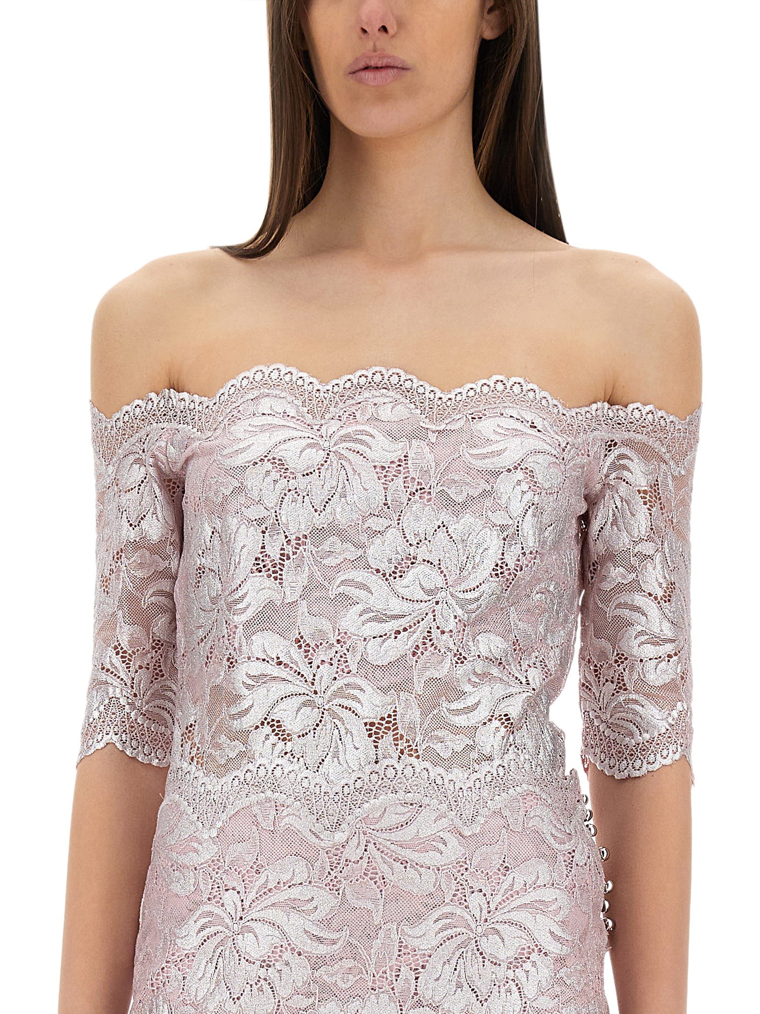 Elevate your wardrobe with the exquisite Lace Top from RABANNE, a perfect blend of elegance and modernity. Crafted from delicate lace, this top features intricate detailing that adds a touch of sophistication to any outfit. Its versatile design allows for seamless transitions from day to night, making it an essential piece for both casual and formal occasions. Pair it with tailored trousers or a chic skirt to create a stunning ensemble that showcases your unique style.