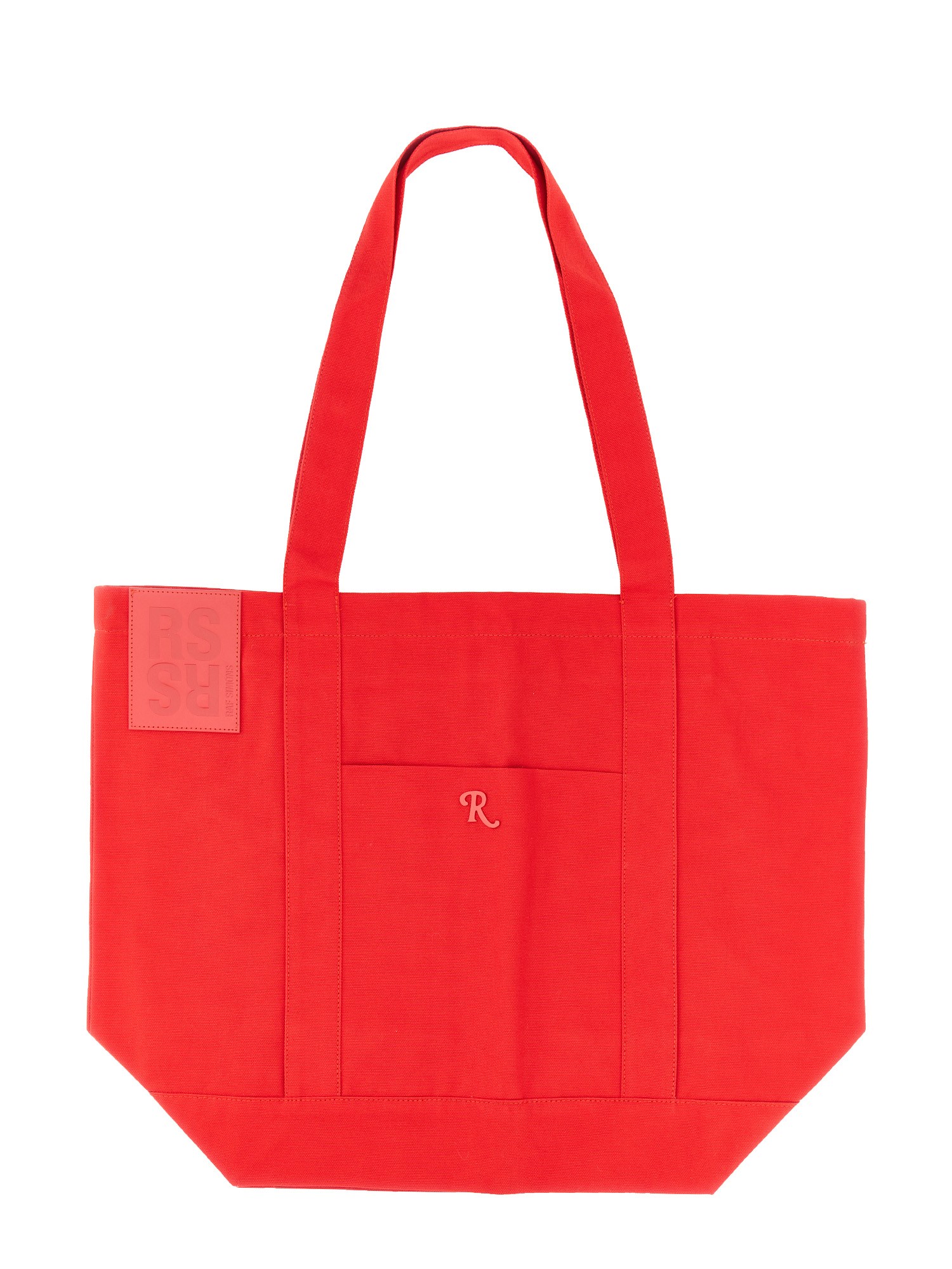 The Raf Simmons cotton tote bag is the perfect size for a day of errands. It features a sturdy, canvas-like material and has a patch of your logo on the front. It's a great way to show the brand off and look great while doing it! It features a double handle and the bag measures 34 cm x 51 cm x 20 cm.