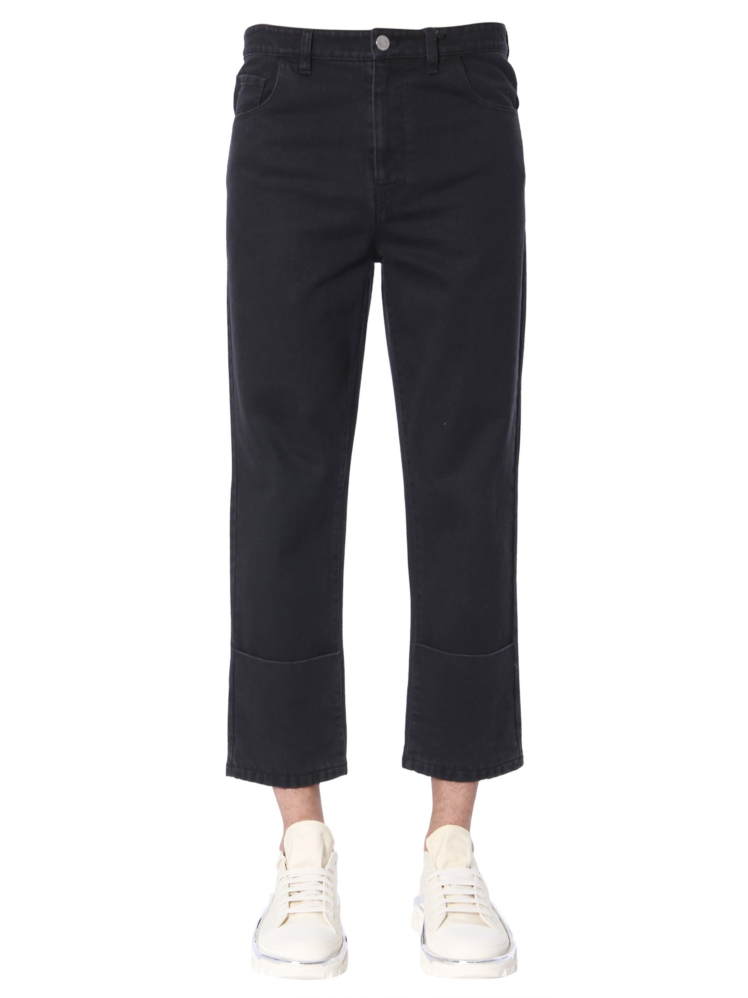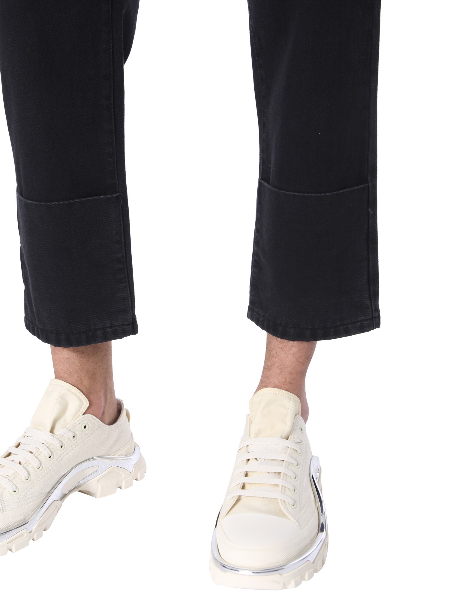 Upgrade the bottom wear section of your closet by including these classic fit jeans from Raf Simons. Fabricated from 100% cotton, these jeans provide breathability and feels soft against your skin. They feature a hidden zip and button closure that makes them convenient to wear. The turn-up detailing on the front adds a distinct touch to the design.