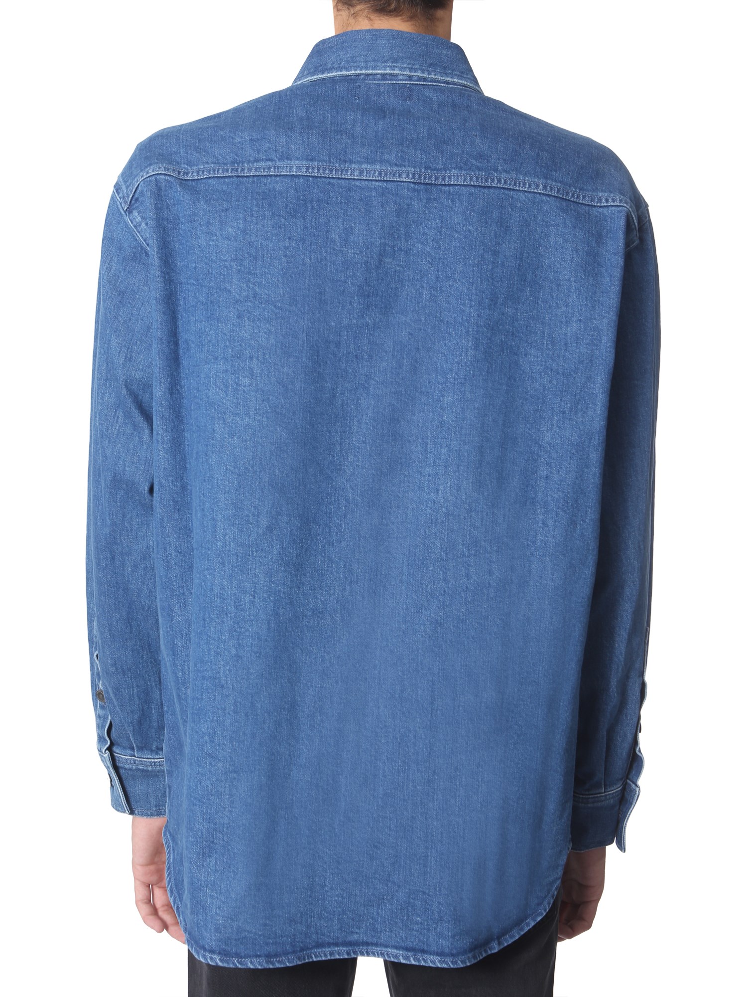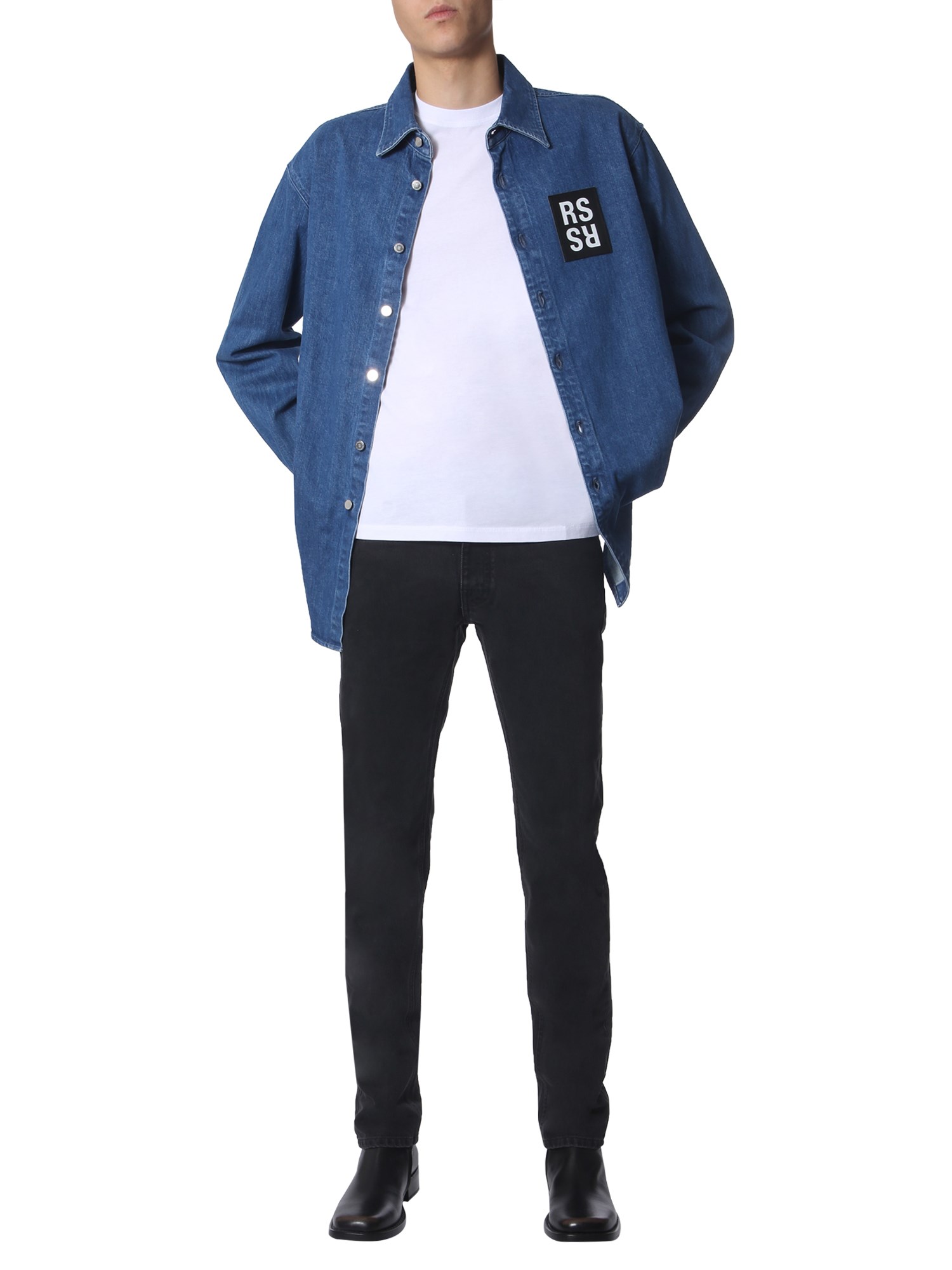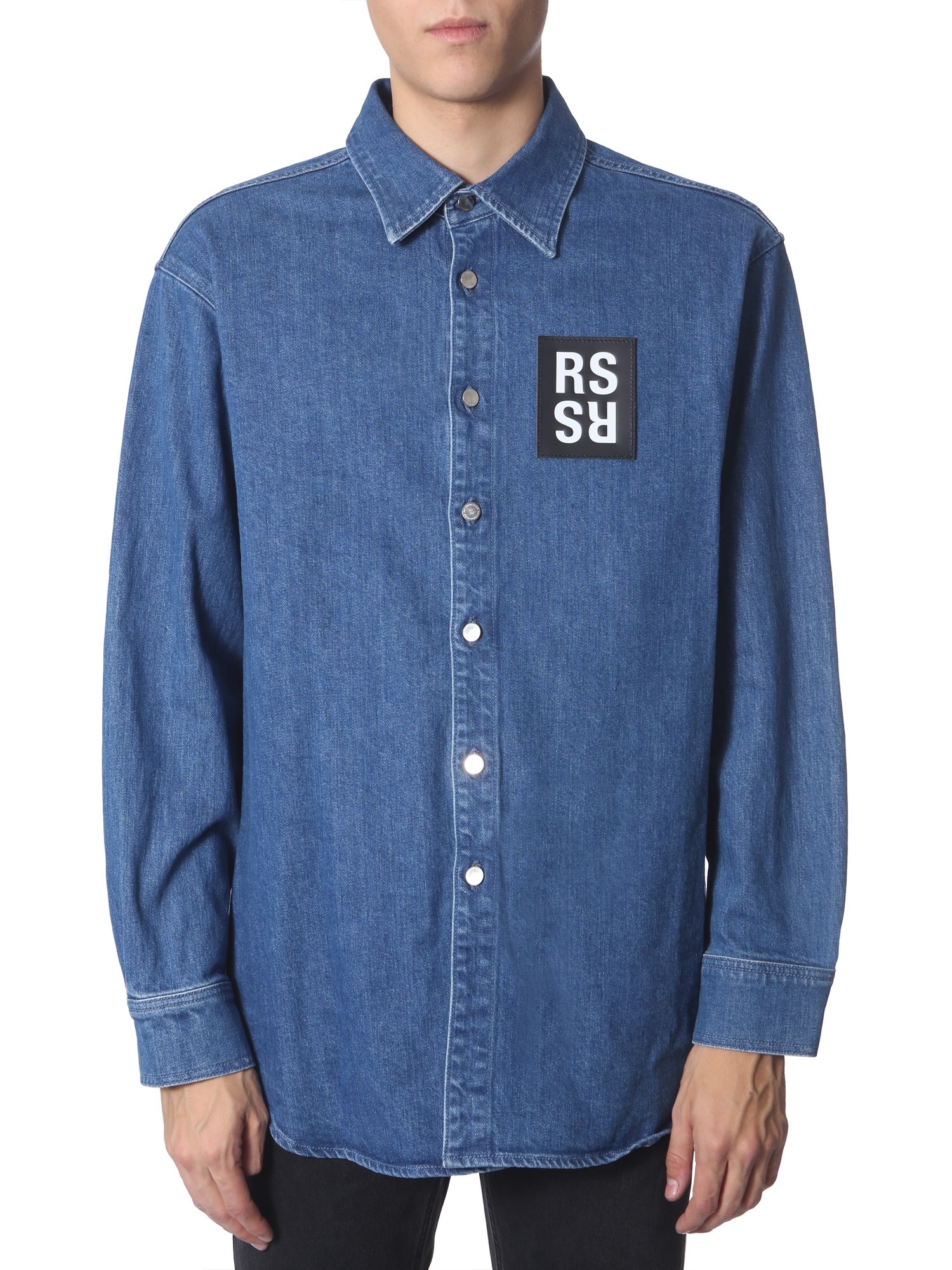 Always stay with the latest trends by adding this slim-fit denim shirt from Raf Simons to your collection. Even with classic straight collars, button-up closure at the front and at the cuffs, this shirt is never too boring to wear. You can wear this shirt to flaunt the logo patch with jeans, shorts or pants.