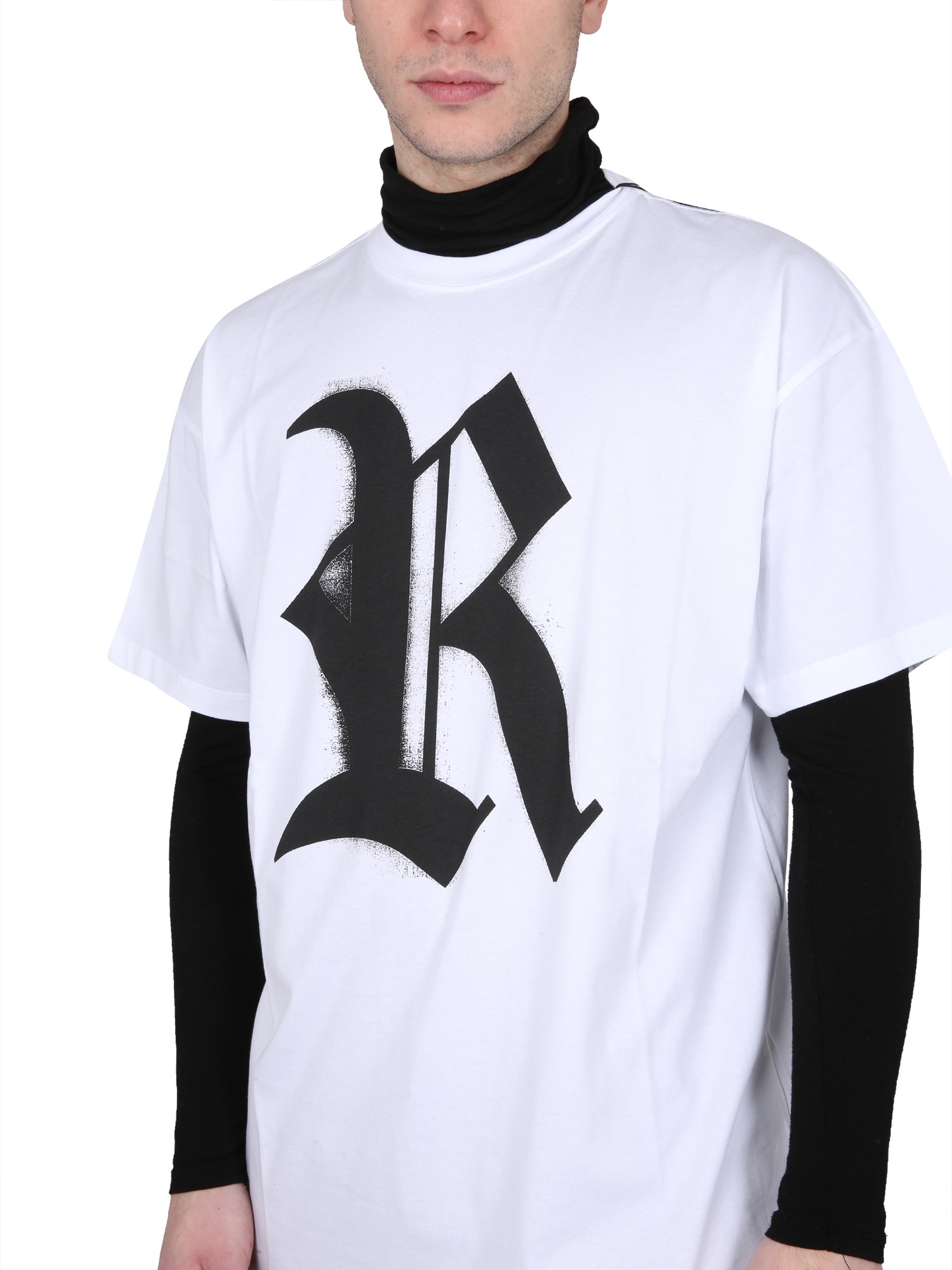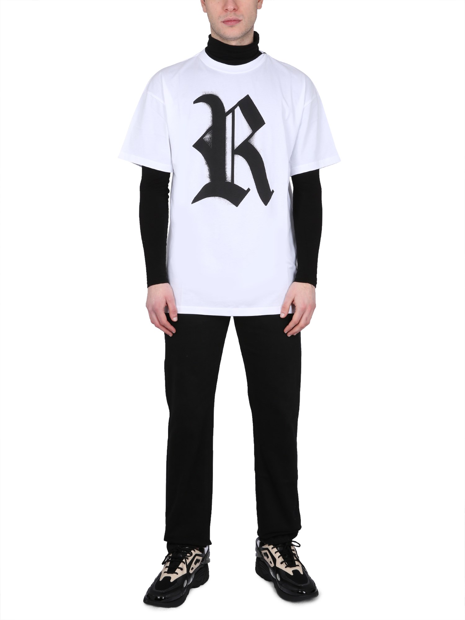The Crew Neck Logo T-shirt from Raf Simons is a relaxed fit, easy to wear, and extremely comfortable. It's a comfortable shirt that you'll want to wear again and again. It is a casual shirt that you will love to wear all day long. The cotton T-shirt is a perfect blend of comfort and style.