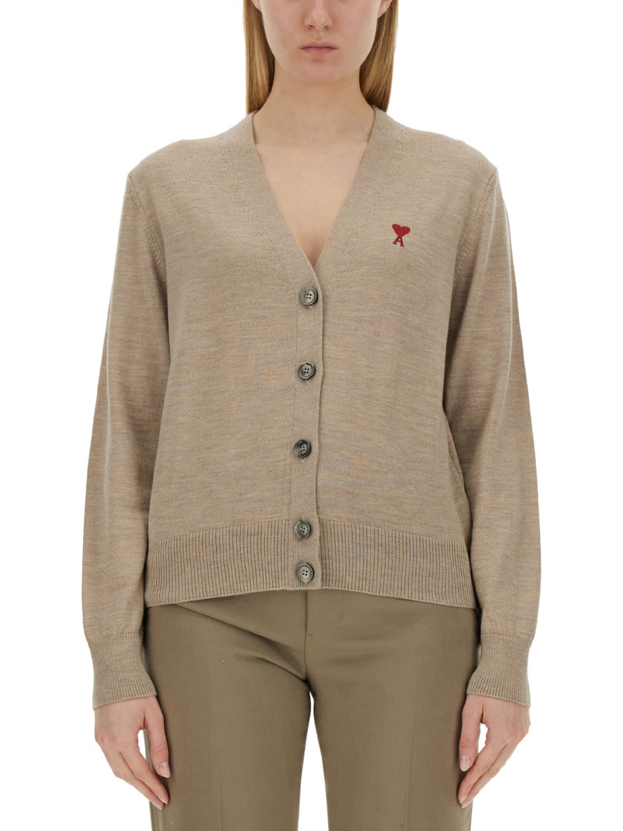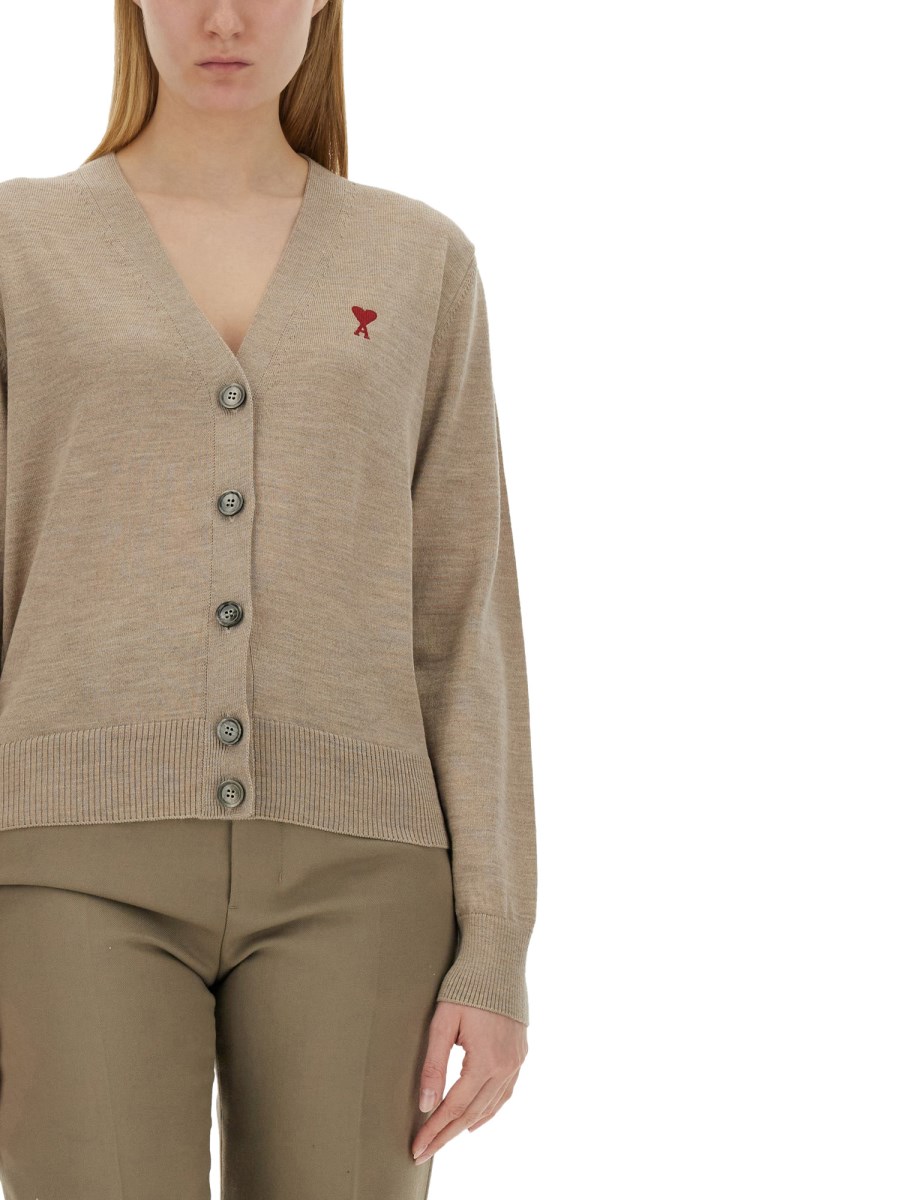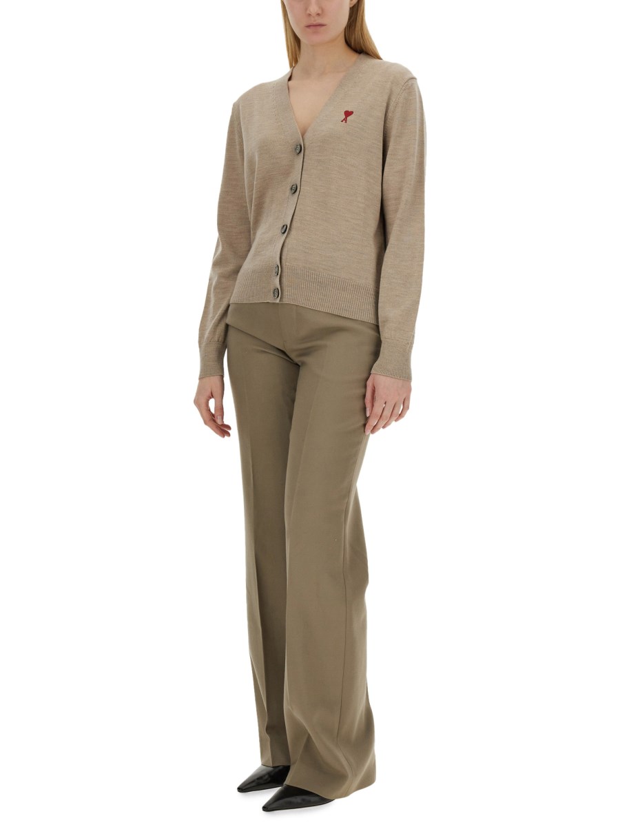 This elegant and versatile piece from Ami Paris is perfect for adding a touch of sophistication to your wardrobe. Crafted from a premium blend of materials, this cardigan offers a luxuriously soft and comfortable feel against the skin. The V-neck design showcases a flattering silhouette that is both feminine and refined.