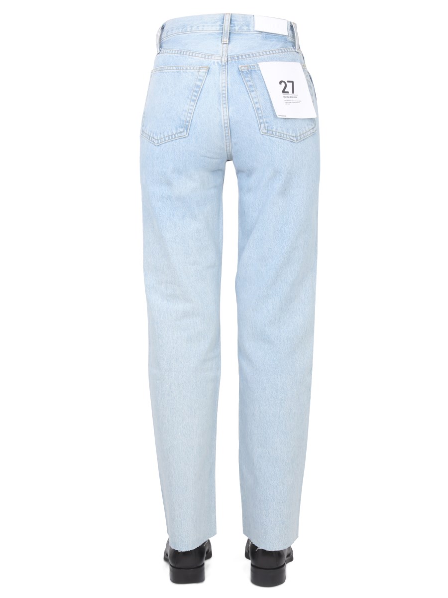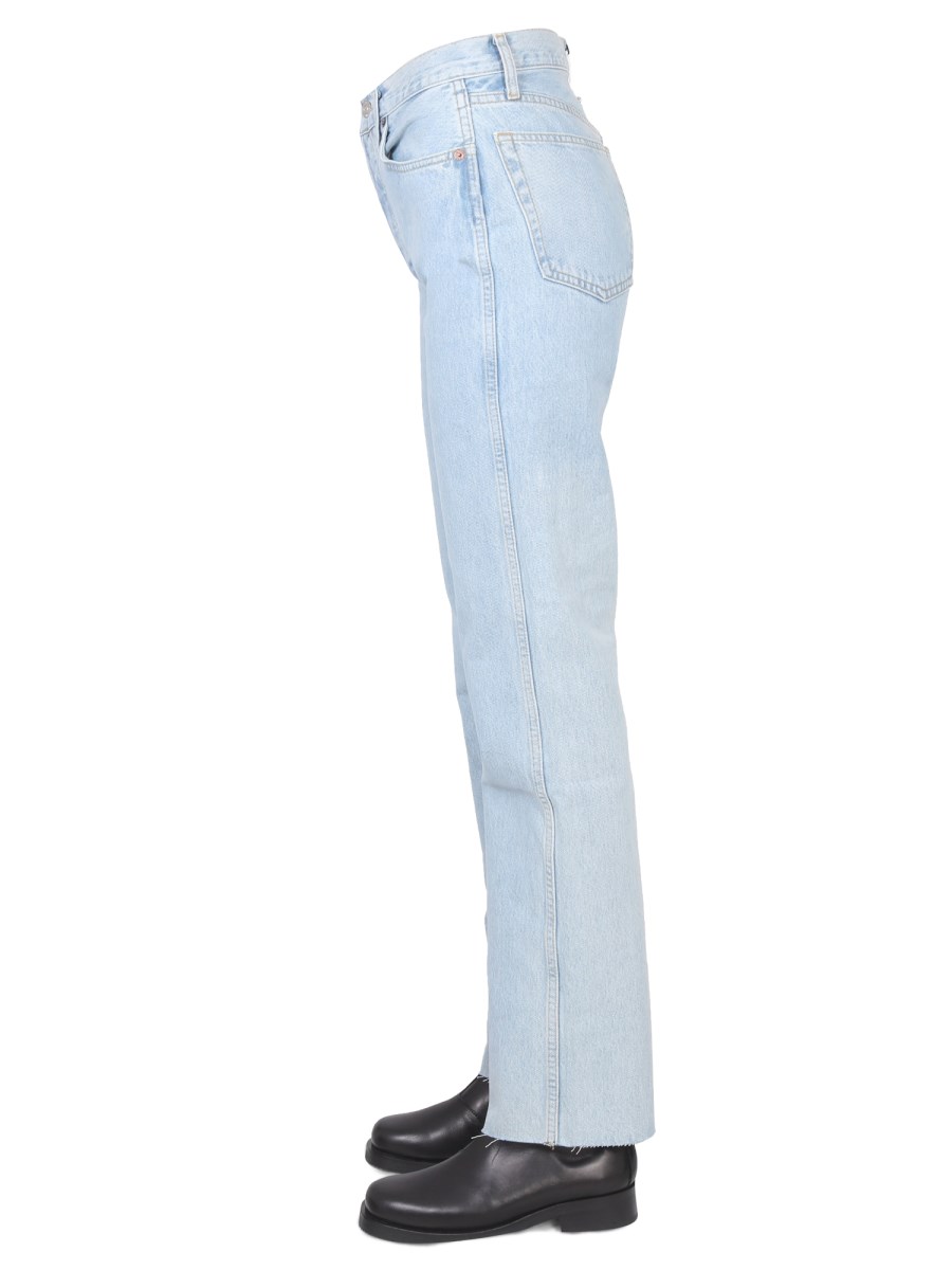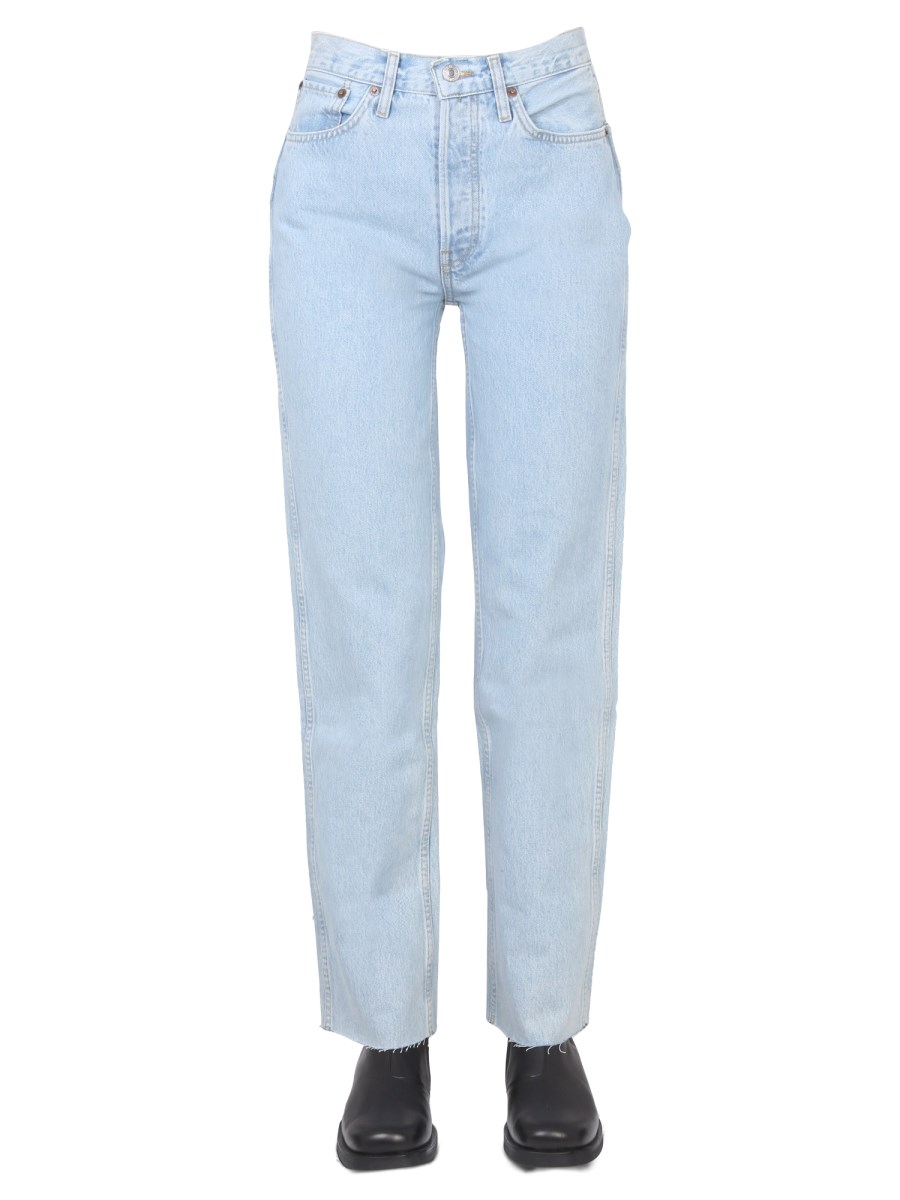 It is the perfect summer jeans from the house of Re/Done that are made of cotton and stretchable denim. It features a high-rise design, front button closure, belt loops at the waist, five pockets, and a raw-cut hem. They are also comfortable and fit well. They are perfect for a variety of casual and formal events, from work to play.