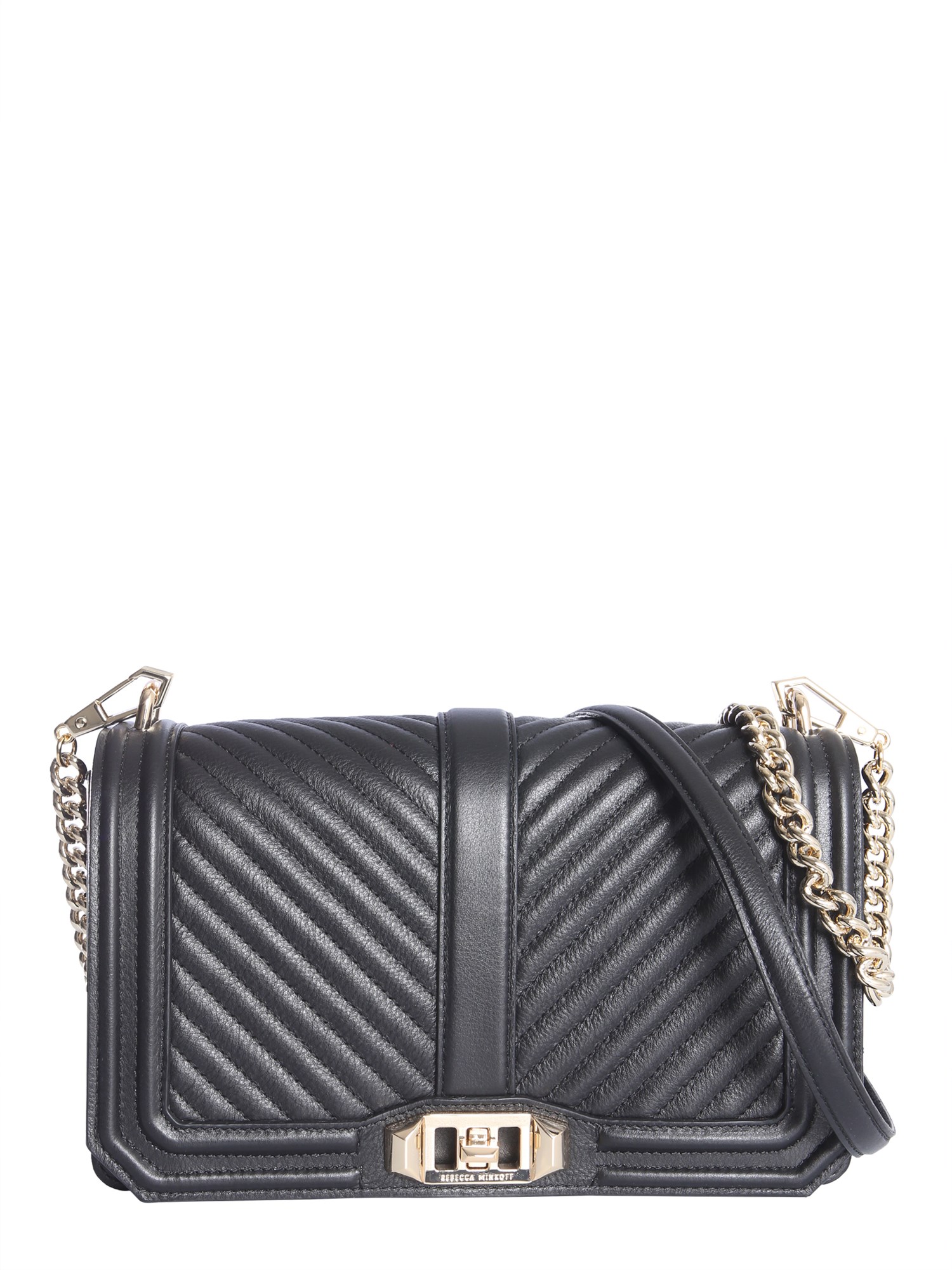 Style and utility are combined together in this love chevron quilted bag presented to you by Rebecca Minkoff. It is made of synthetic leather that lends it a refined finish. Furthermore, the metal detail at the front accentuates its design. It also comes with a long chain strap that makes it convenient to carry.