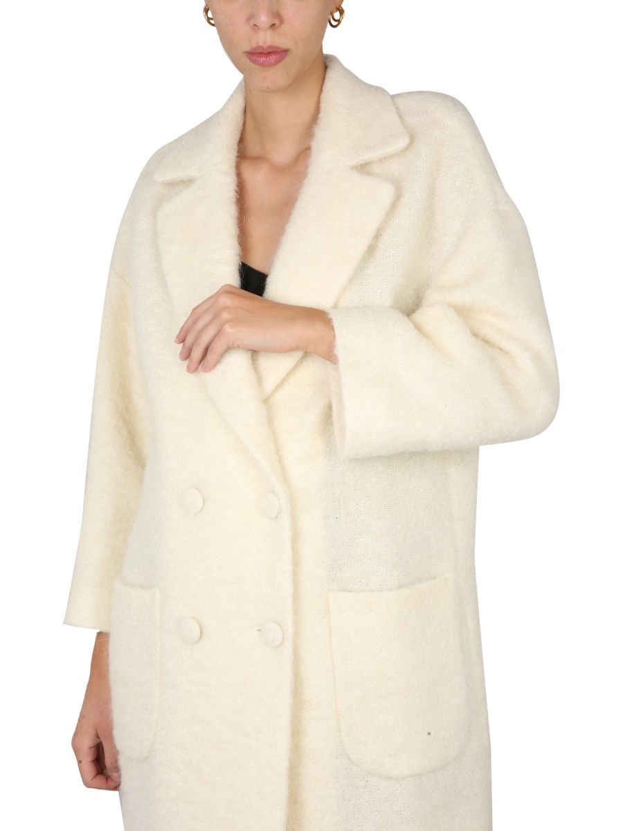 - DOUBLE-BREASTED CLOSURE WITH FABRIC-COVERED BUTTONS