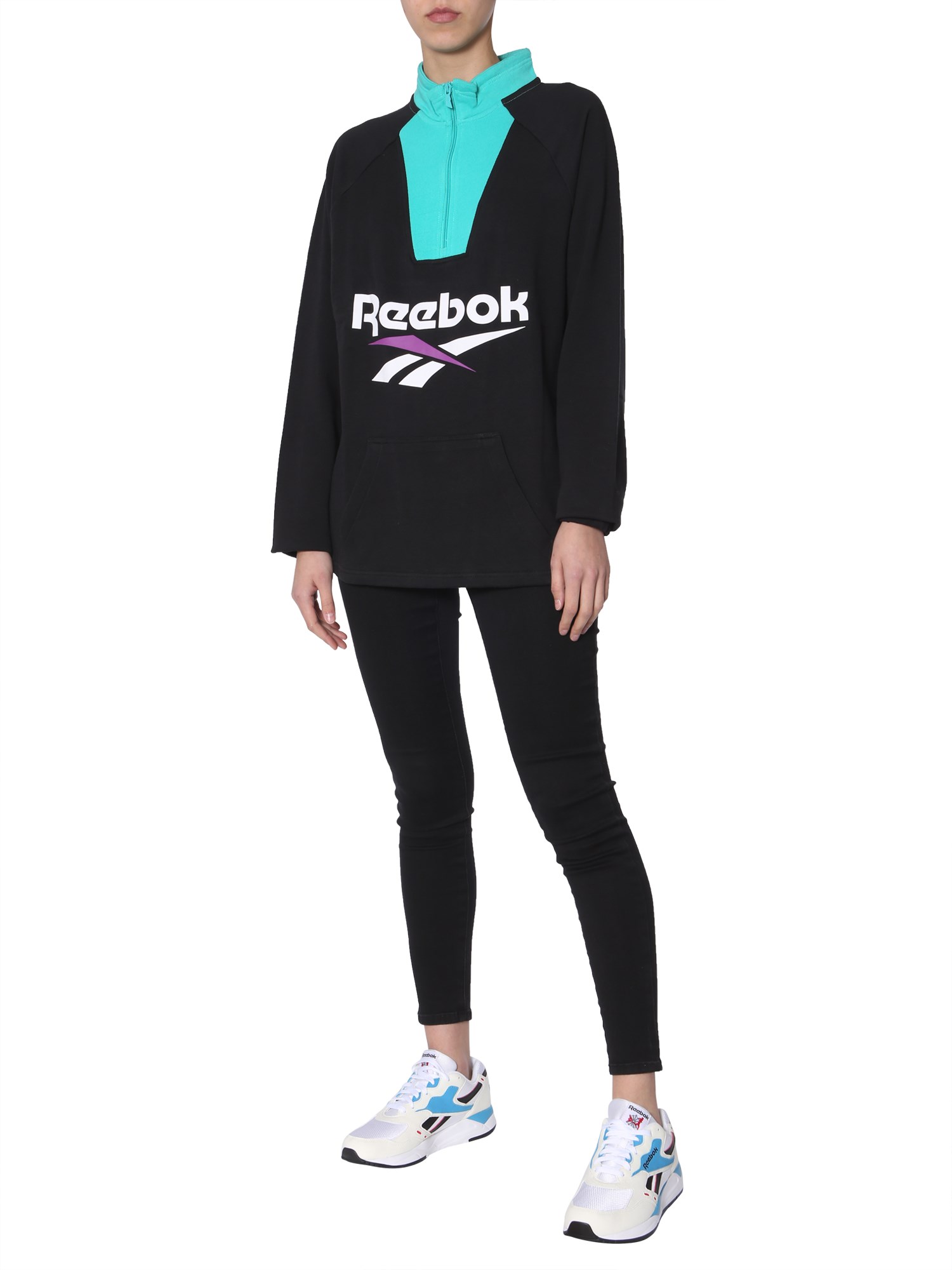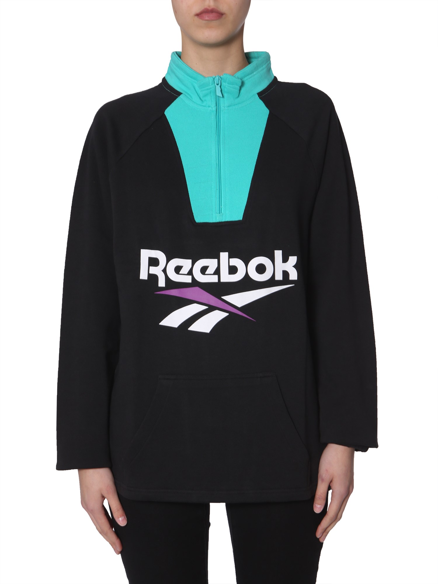 High neck sweater by Reebok Classics is a comfortable winter wear, crafted in pure cotton. The embroidered logo in contrast colour accents the sweater for a classic appeal. Its regular fit feels comfortable even when worn as a layer. Full sleeves, ribbed crew neck, and elastic cuffs complete the design.