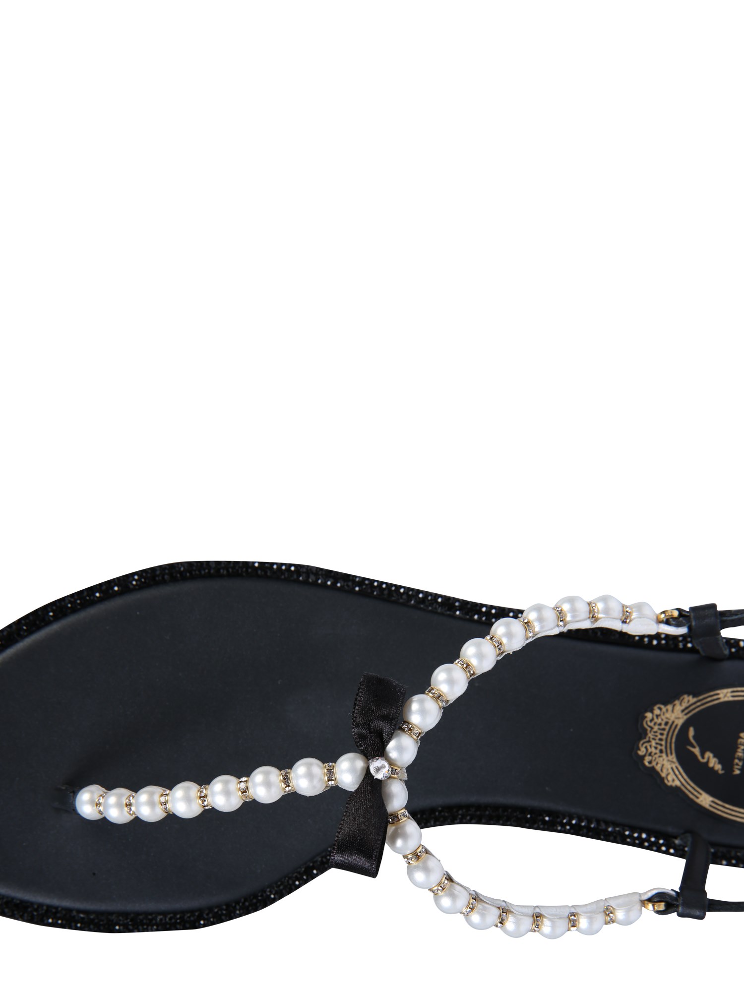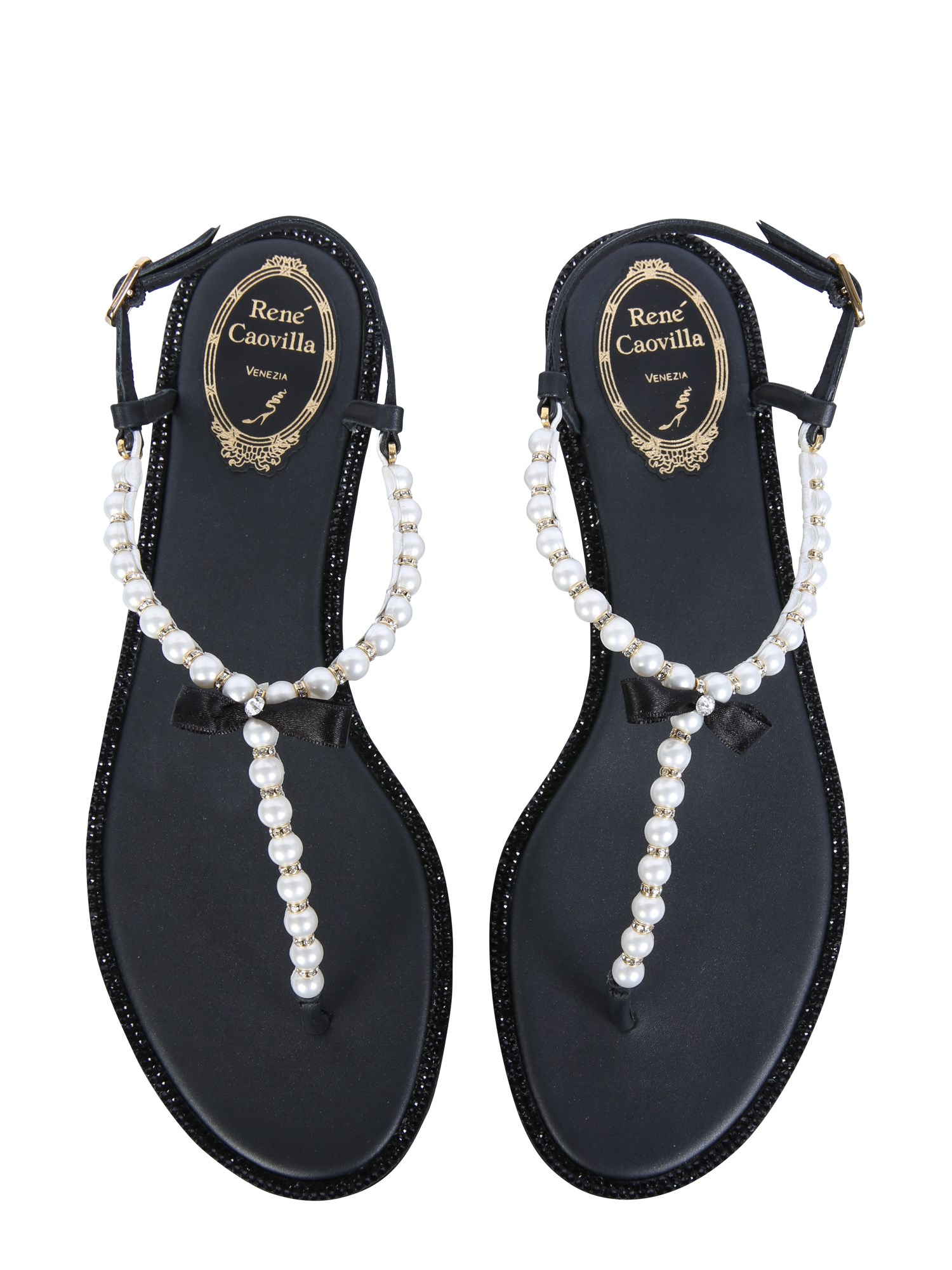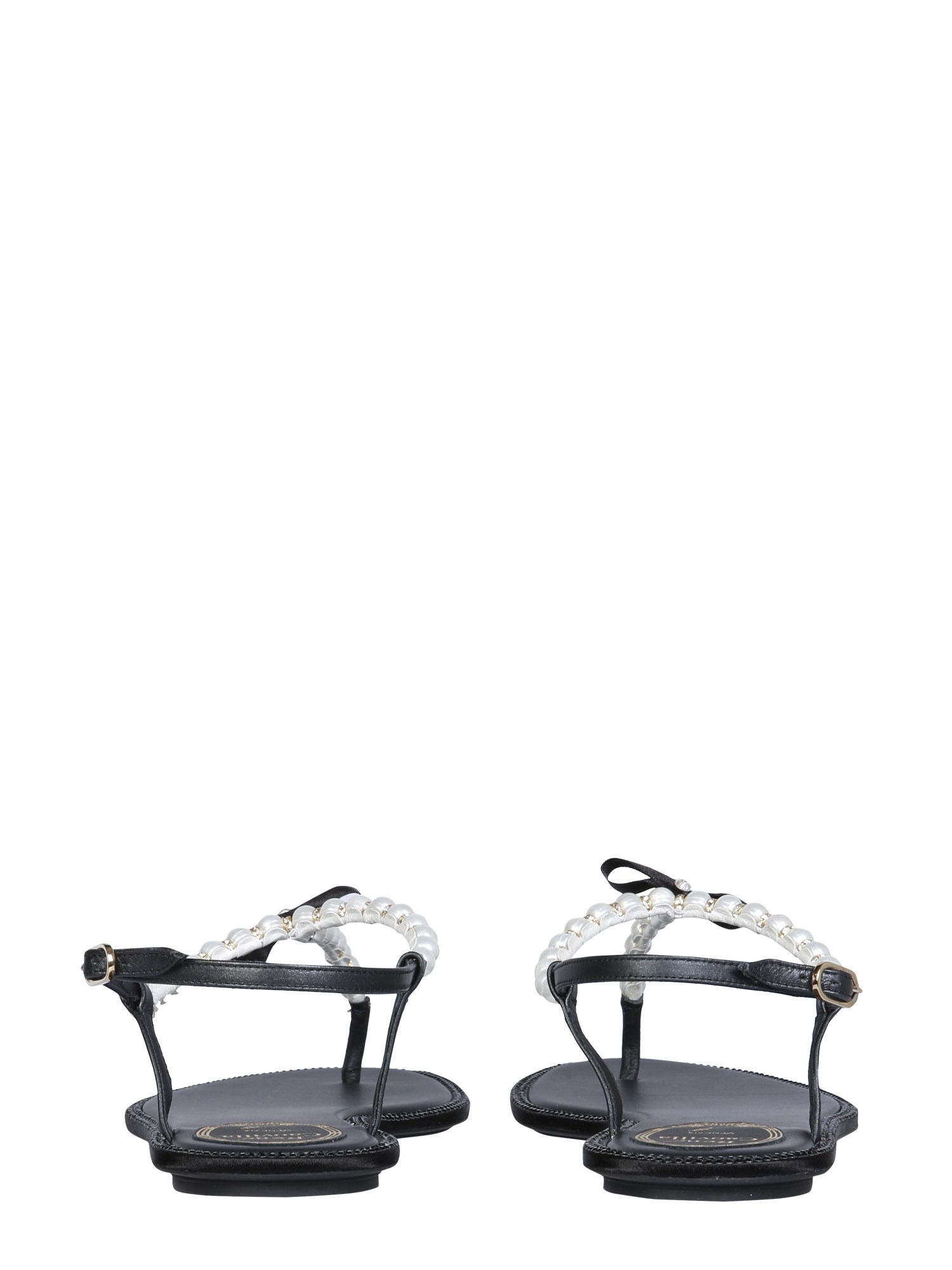 Dress up and look fabulous wearing the Amalia Leather Sandals with Pearl Rhinestones by Rene Caovilla. These sandals are made of 100% leather material. They also have adjustable straps at the ankle with buckles and a bow for a fitted wear. With a rubber sole, these durable sandals pair well with black and/or silver casual outfits or a midi-dress. These sandals are made in Italy.