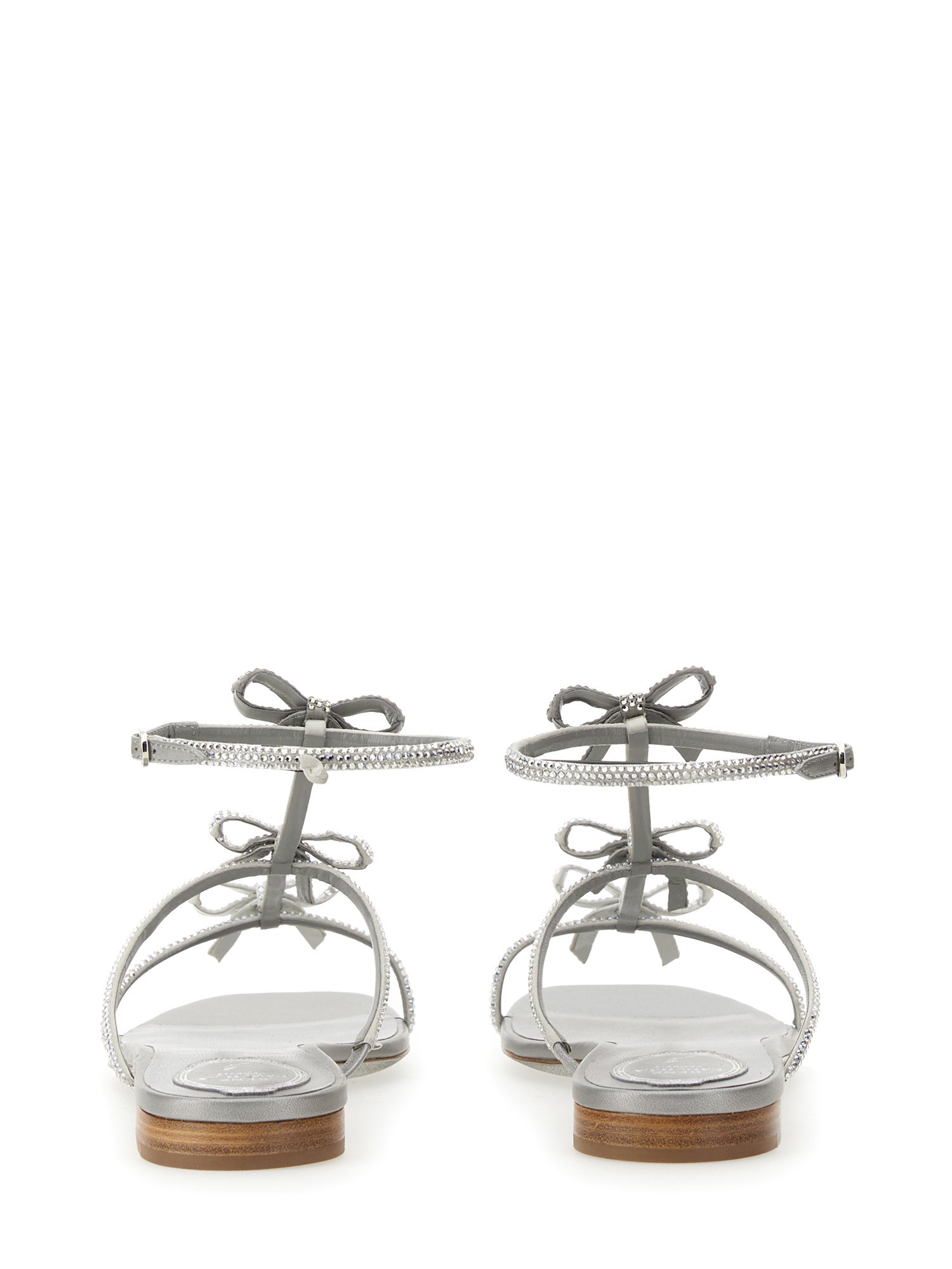 Rene Caovilla presents the latest styles for the season with this versatile and classic shoe. These shoes are a perfect example of how one's shoe choice can affect the rest of their outfit. The buckle closure and rhinestones are perfect for an evening out on the town, but the upper is a classic black satin that makes them appropriate for any occasion.