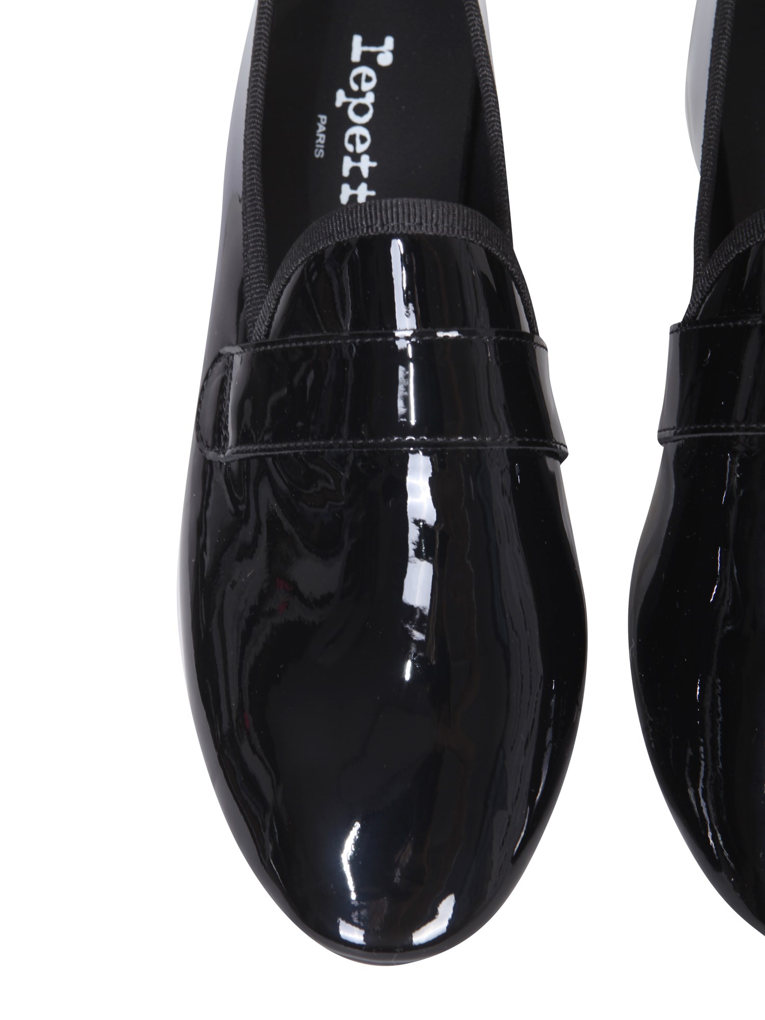 You will be delighted by the details of this traditional pair of leather moccasins from Repetto. The upper is made of the highest quality leather with a grosgrain profile, and the lining is made of raw canvas. The sole is rubber, and the heel is a traditional heel, not a rubber one.
