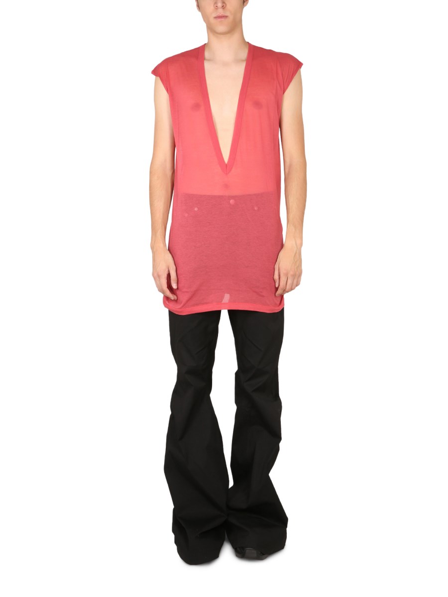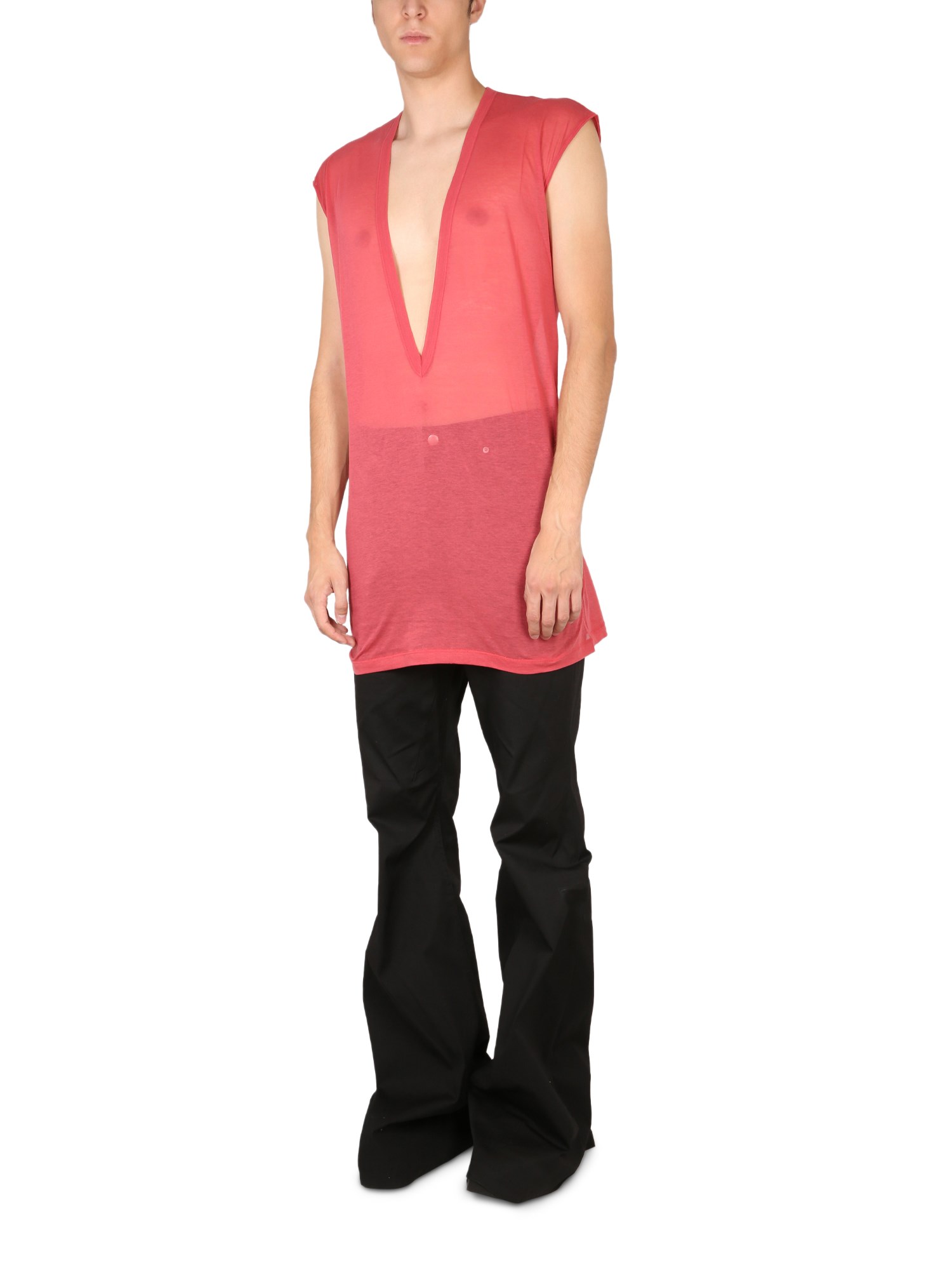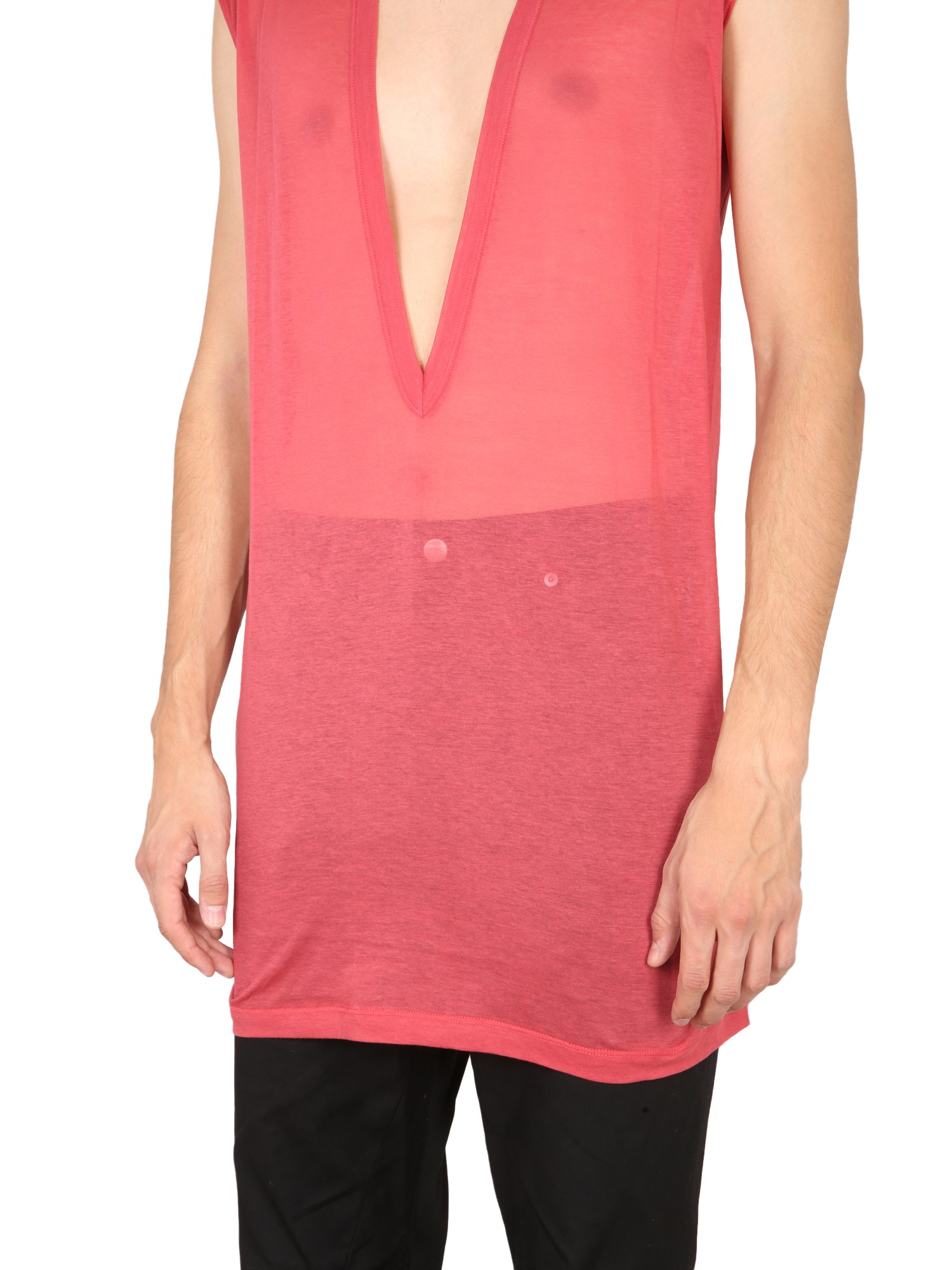 A soft, comfortable cotton tank top from Rick Owens that is perfect for any occasion. It is a lightweight top that can be worn as a layering piece on its own or layered under a jacket or sweater. It is a stylish and comfortable piece that will have you looking great in no time.