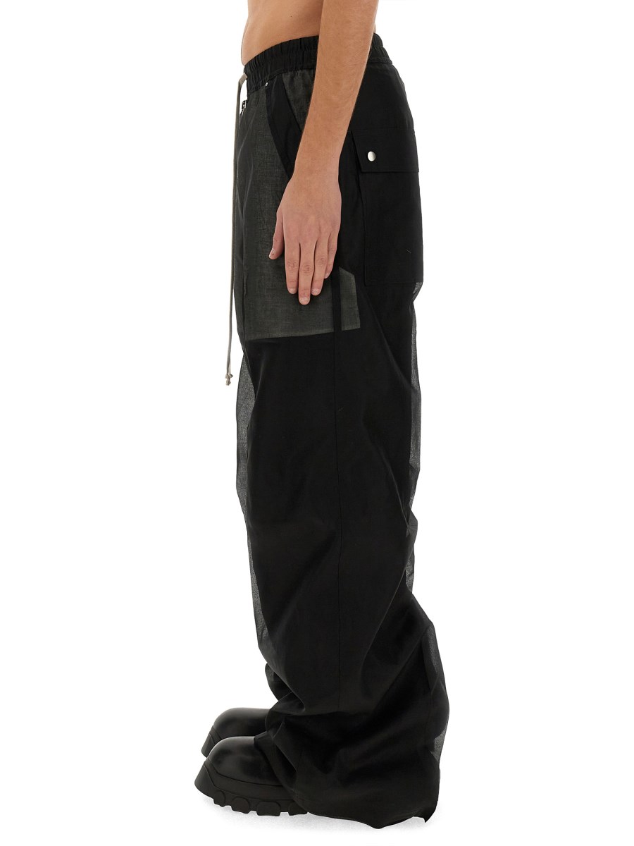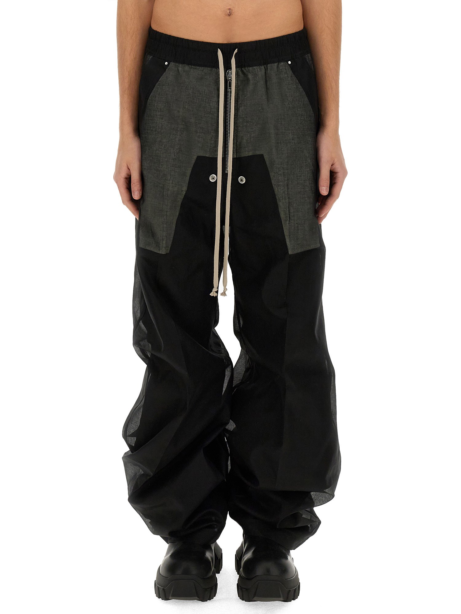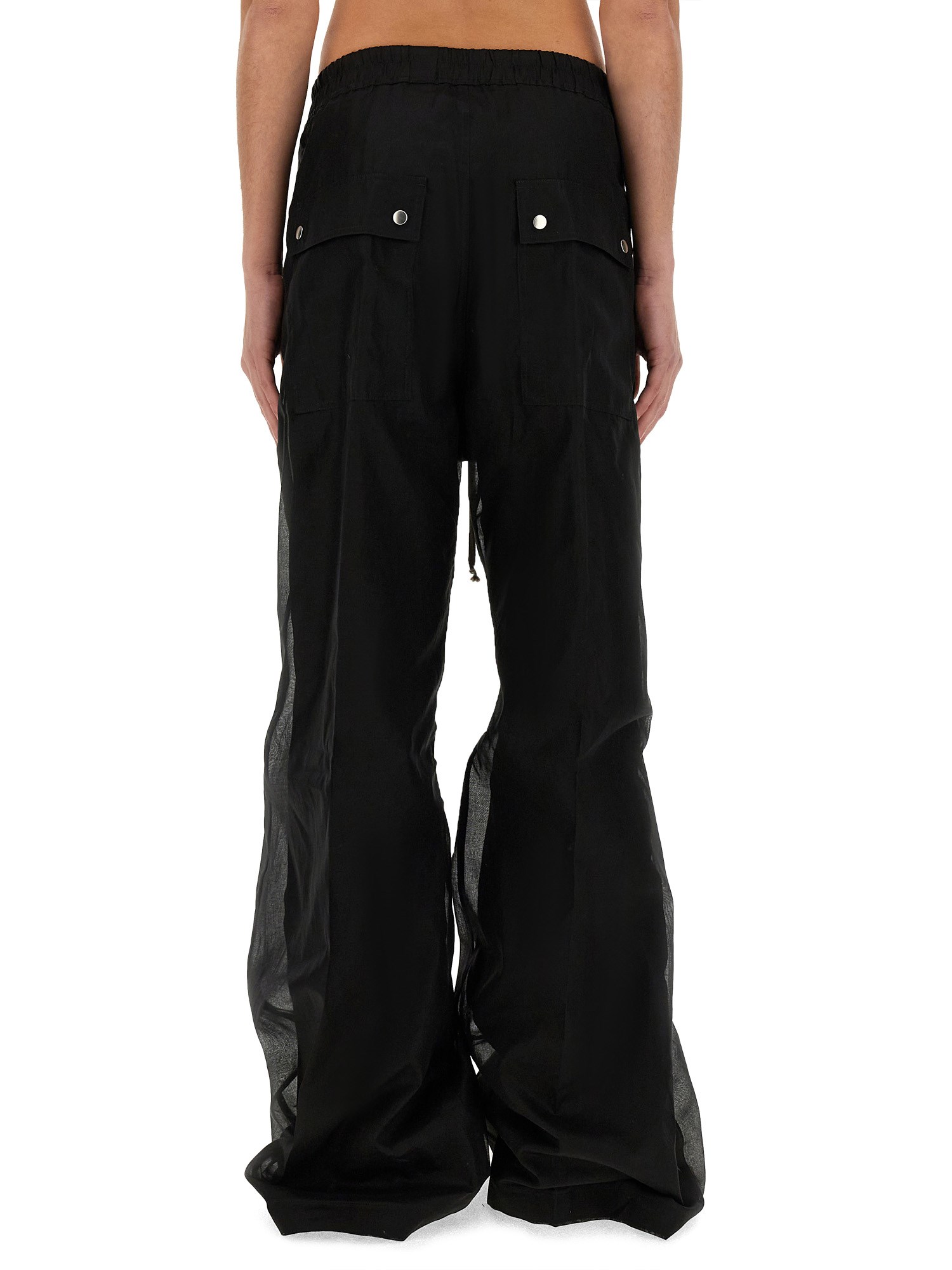 This pair of pants from Rick Owens are an absolute must-have for any fashion-forward individual. Designed with a versatile black colour, these pants effortlessly enhance any outfit, making it ideal for both casual and semi-formal occasions. The drawstring waistband ensures a perfect fit and allows for easy adjustment, providing you with optimal comfort throughout the day.