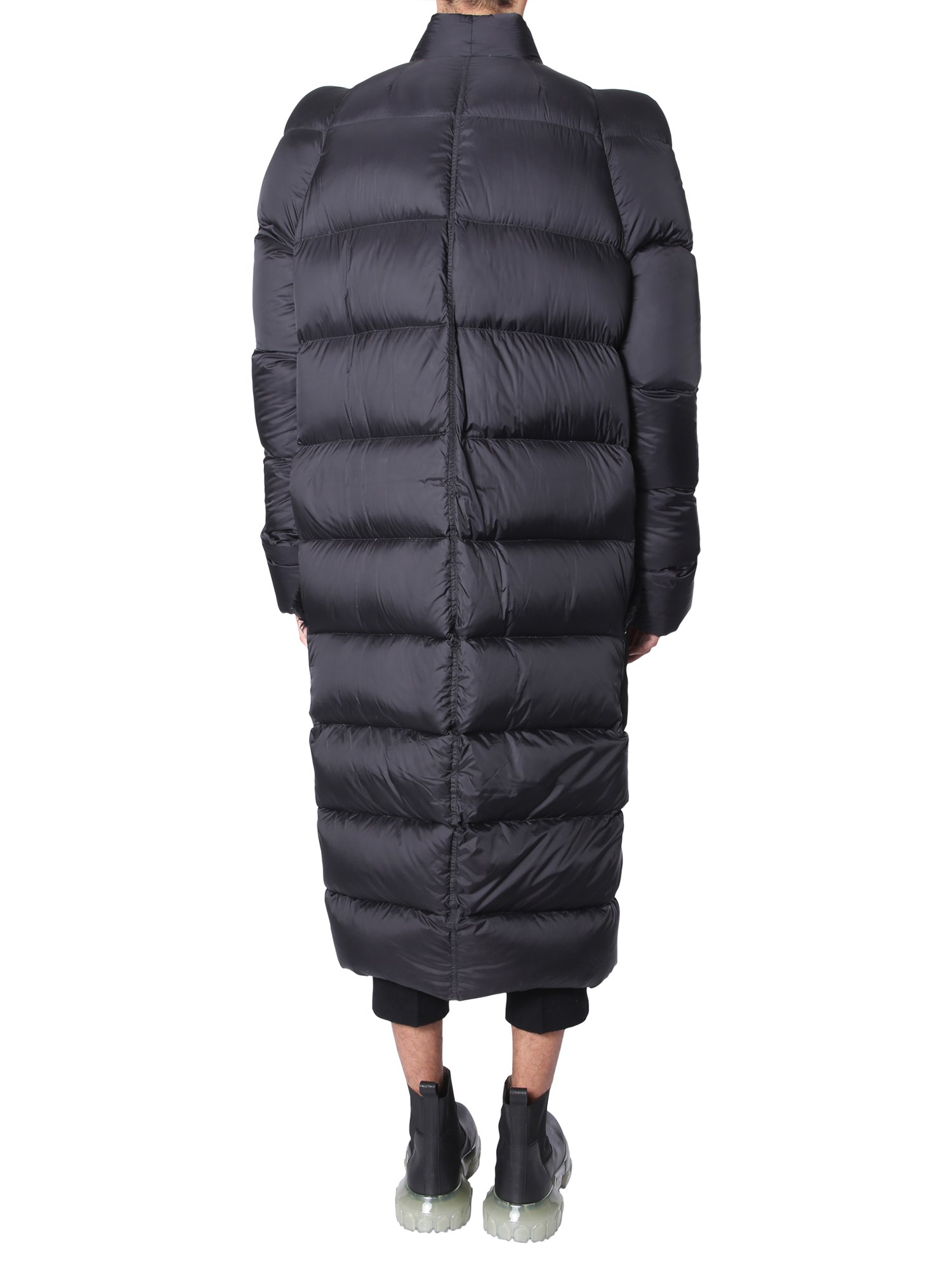 The Rick Owens long down jacket has two side and inner pockets to provide functional and convenient wear. The whole structure of this jacket is made from 100% nylon material and tufted with fine quality padding. Also, the front pressure buttons closure keeps you secure throughout the use.