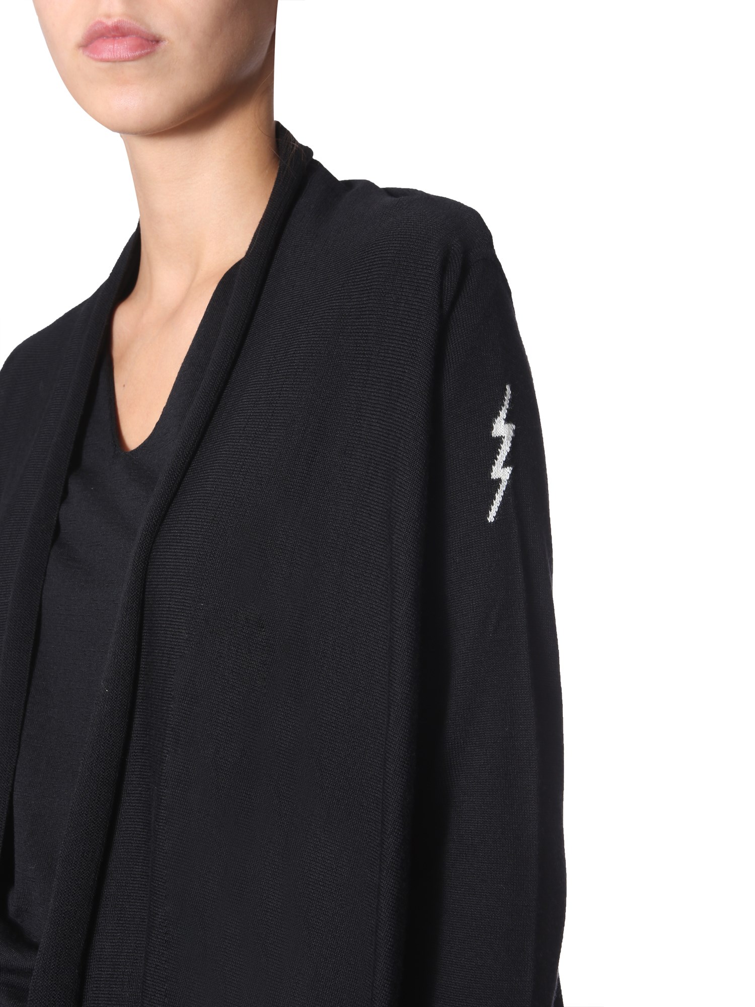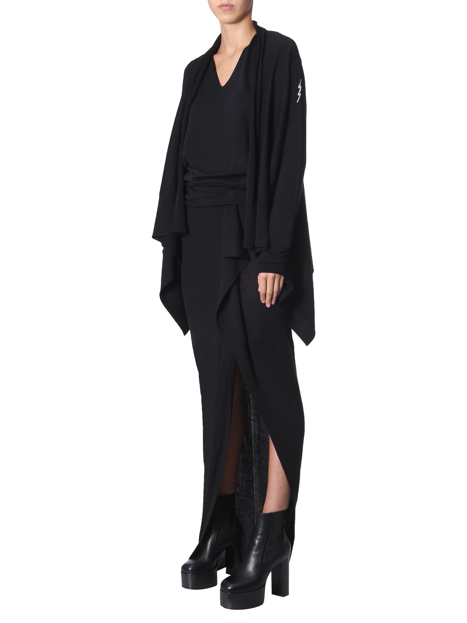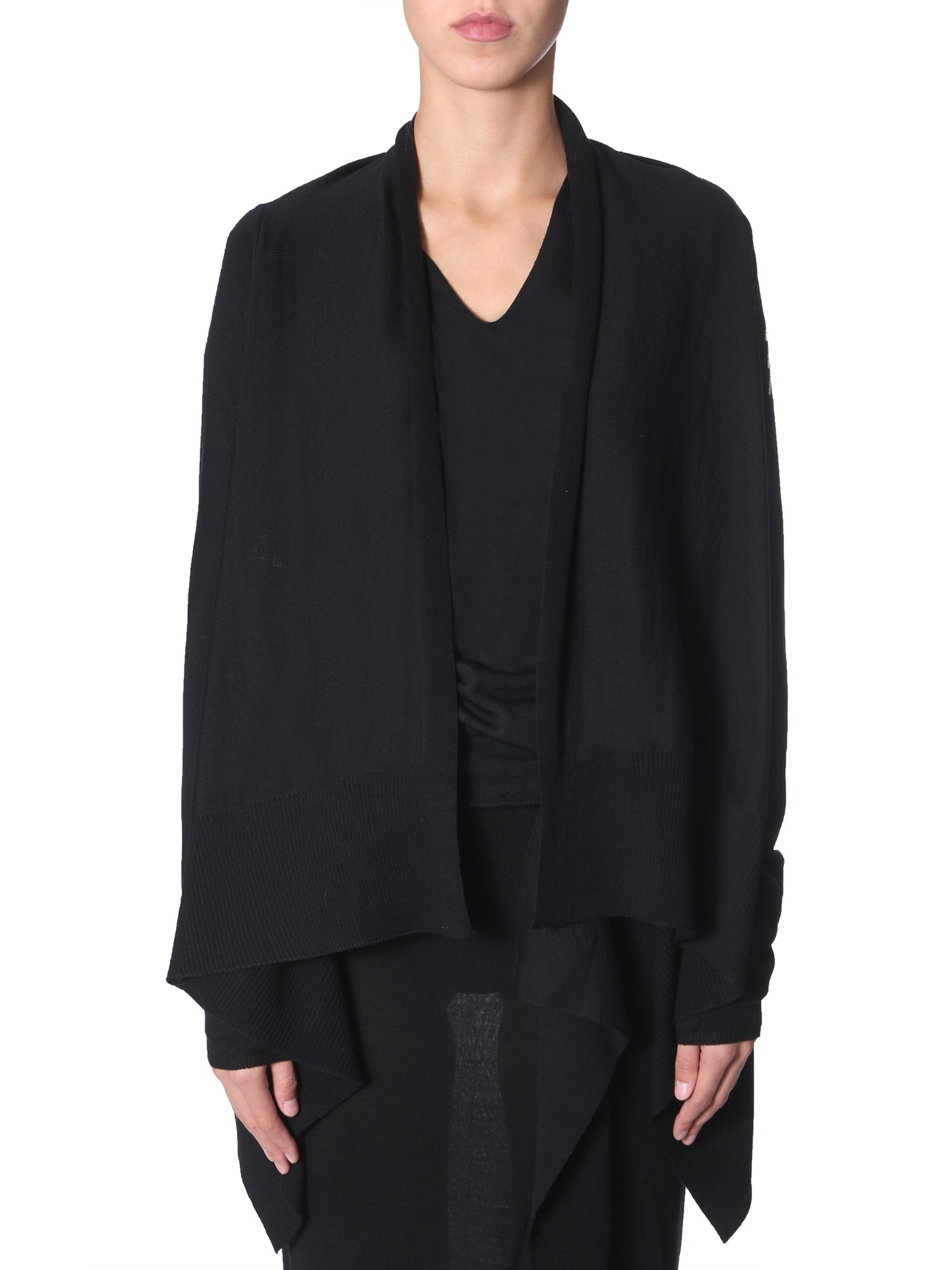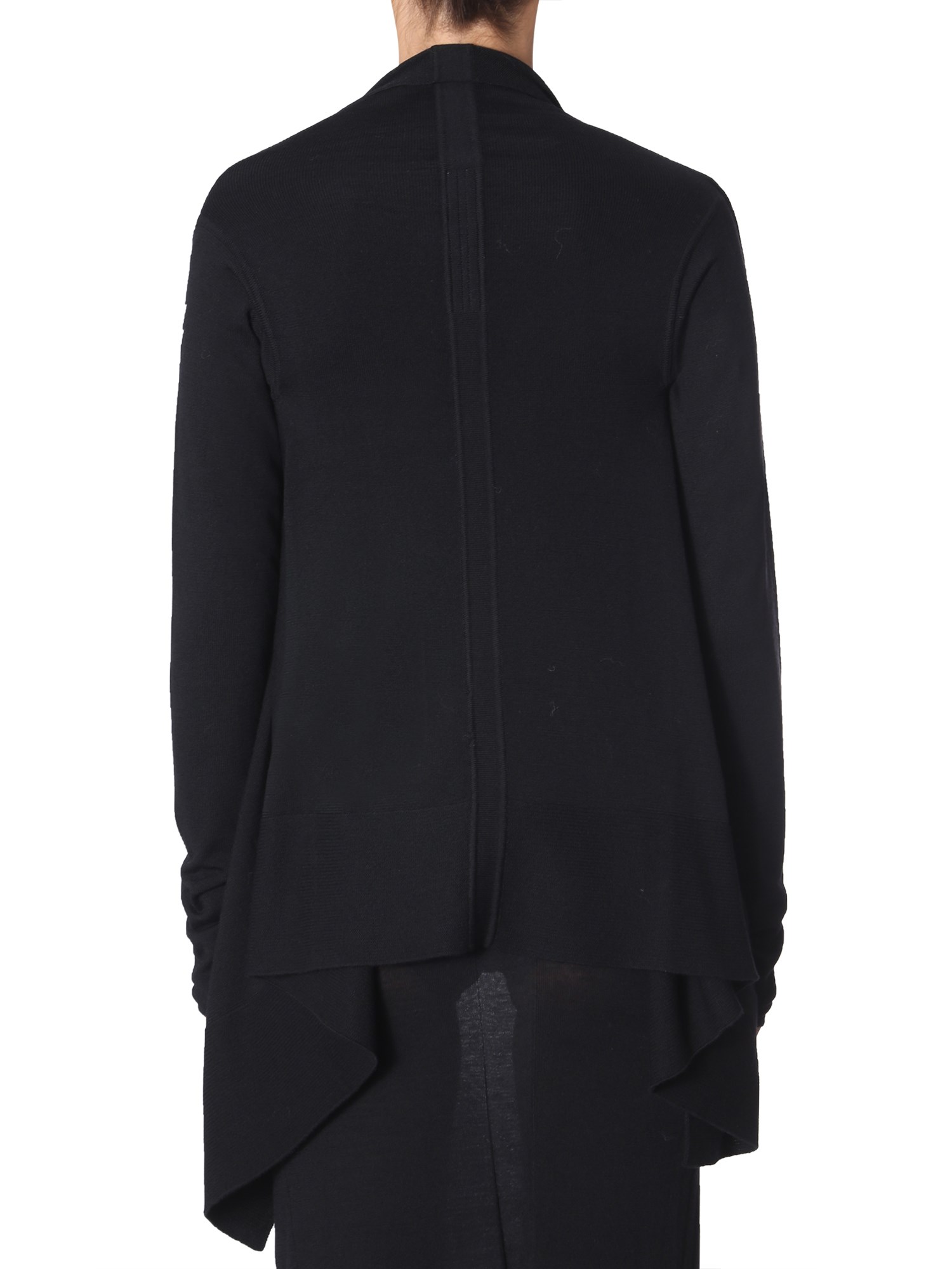 Stylish and insulating, this asymmetrical cardigan from Rick Owens is completely made from virgin wool material. It has a shawled neck with elasticated cuffs, and is open at the front. It has a casual yet fashionable appeal that blends and drapes all your outfits well. Also, it keeps you warm throughout the day.