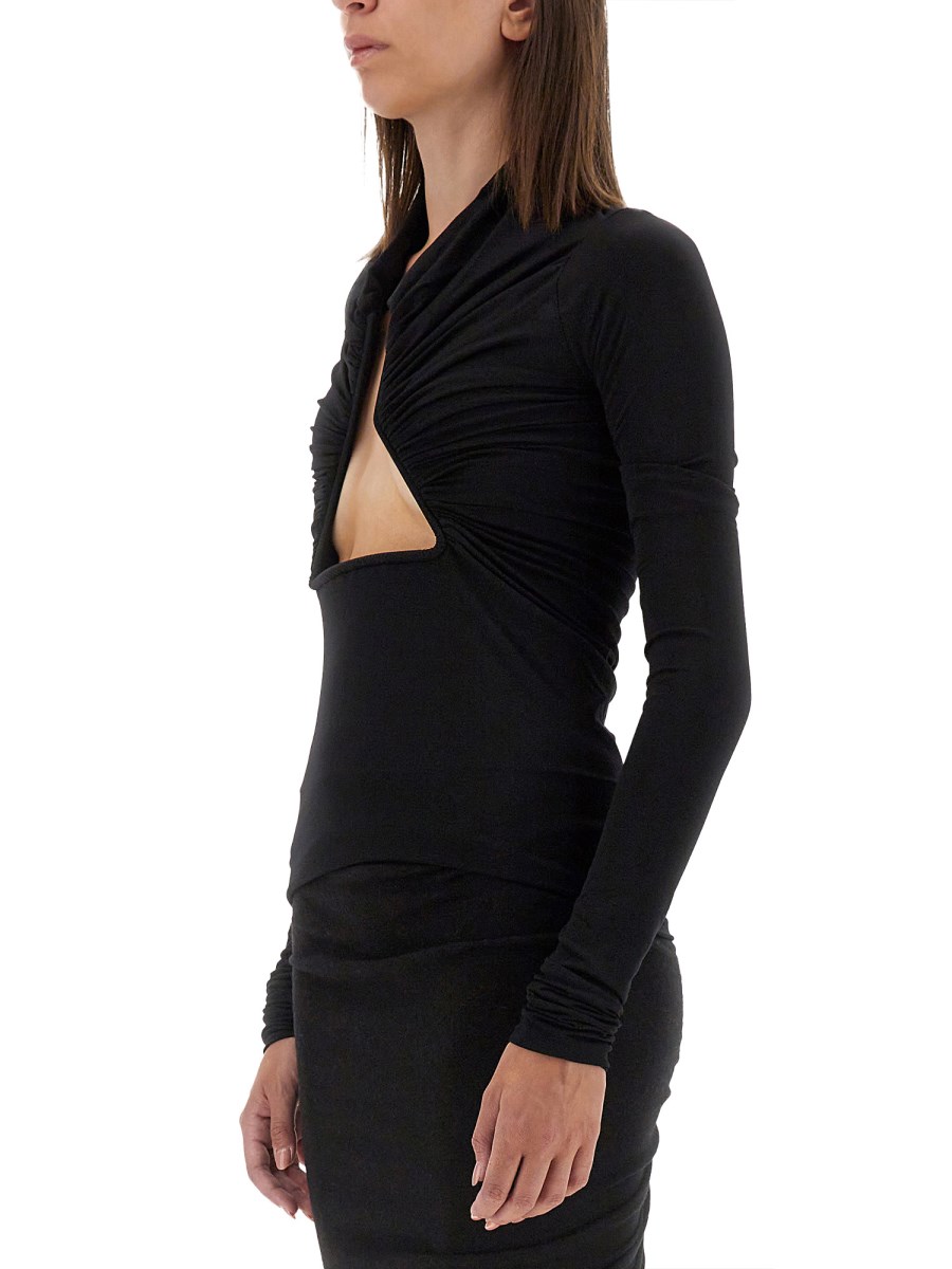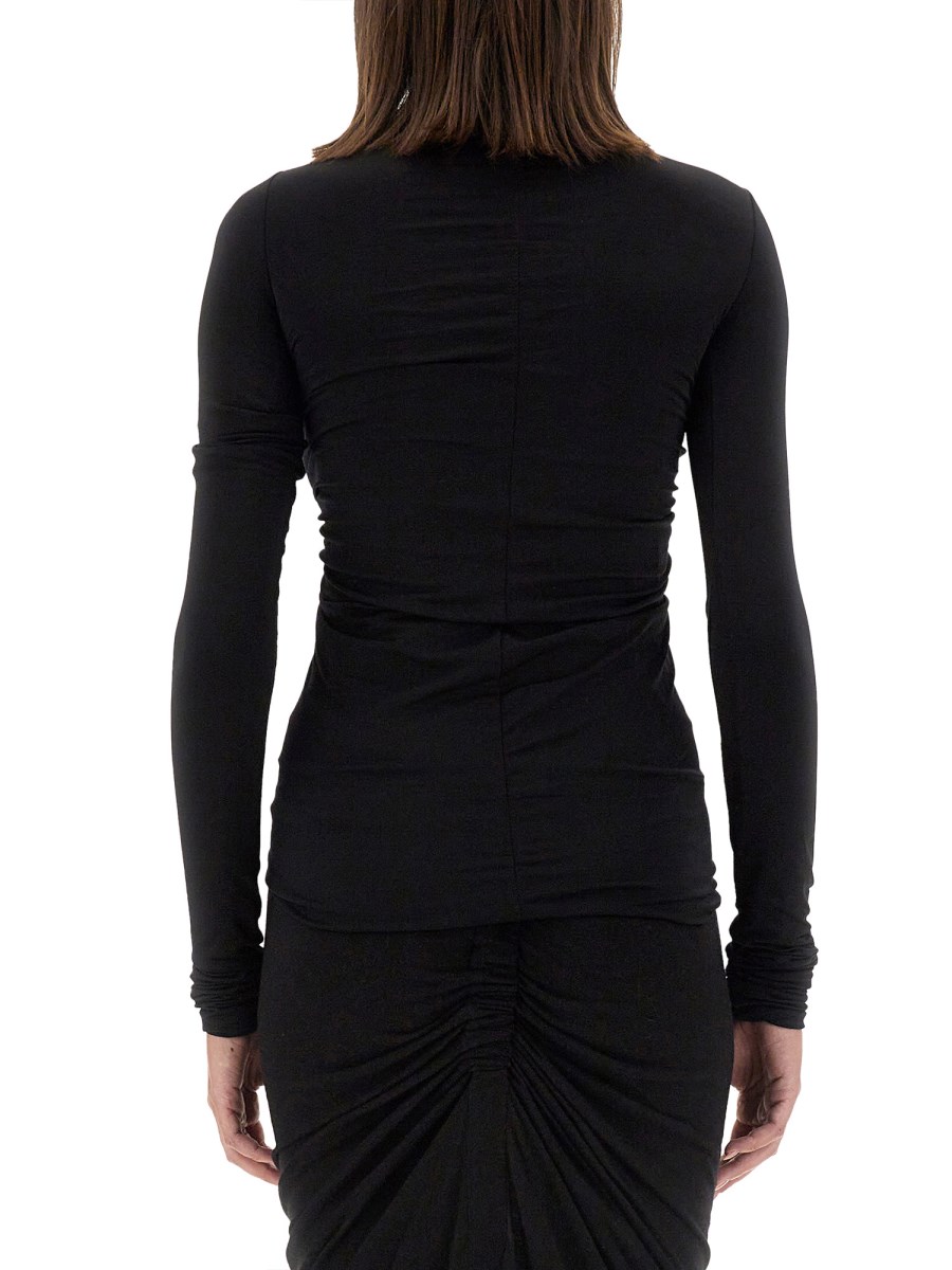 The Rick Owens T-Shirt Prong exemplifies avant-garde fashion with its distinctive design and high-quality materials. Crafted for both comfort and style, this T-shirt features a unique silhouette that sets it apart from conventional apparel. The innovative cut and attention to detail reflect Rick Owens' signature aesthetic, making it a statement piece for any wardrobe. Ideal for those who appreciate modern design, this T-shirt seamlessly blends casual wear with high fashion.