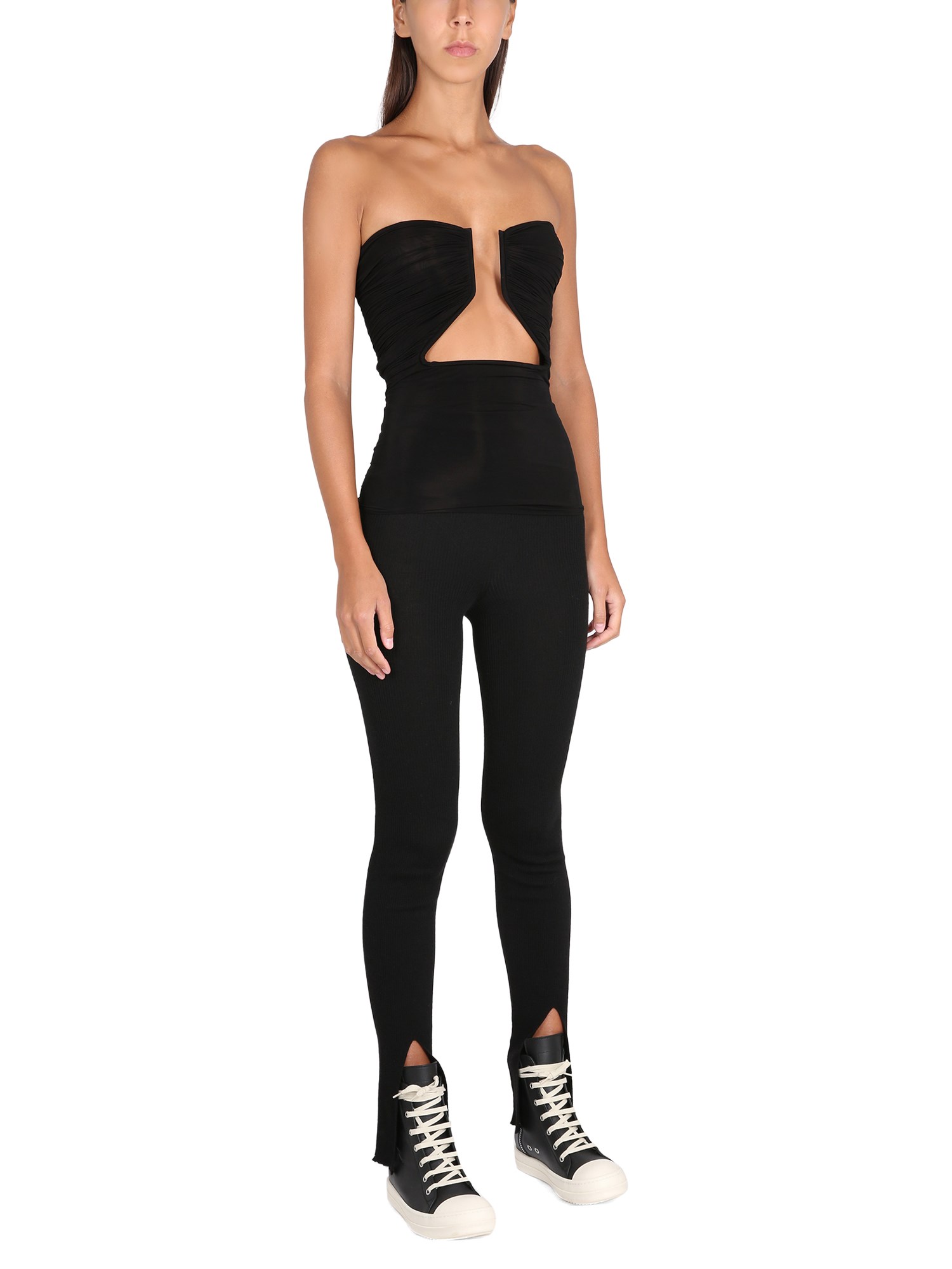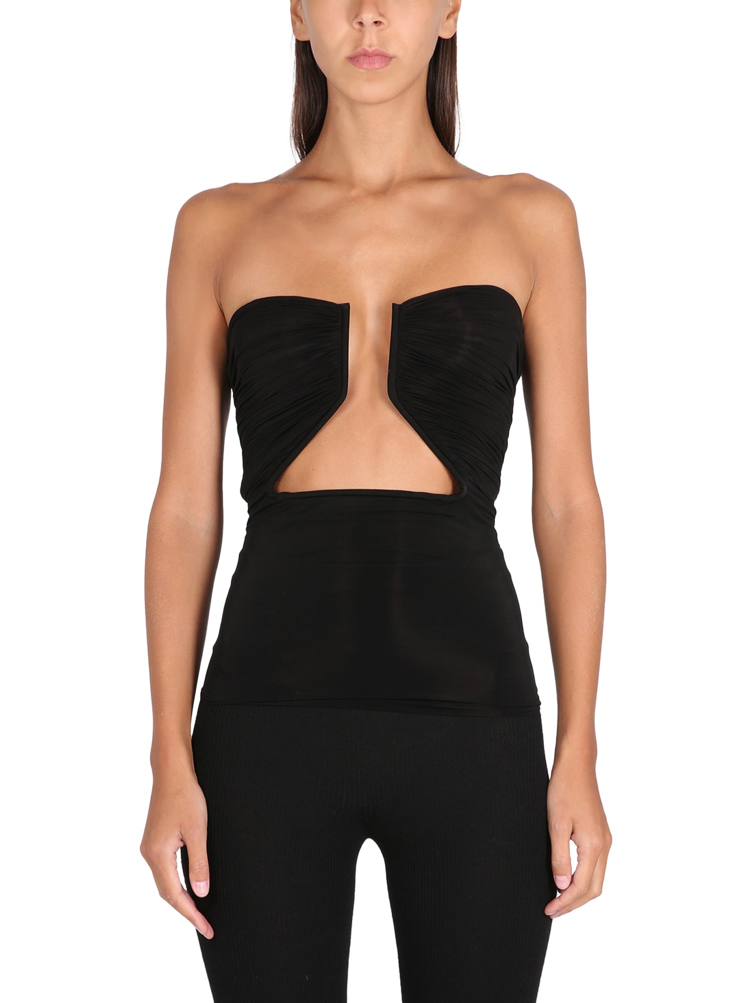 The Cut Out Top Prong In Cupro from Rick Owens is a perfect basic that you can wear with anything. It has a soft, stretchy feel and a cropped, straight silhouette that is great for layering over a bra or tank top. It also comes in a great colour range, so you can find your favourite.