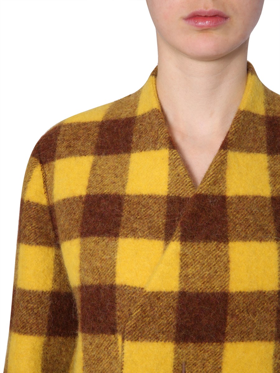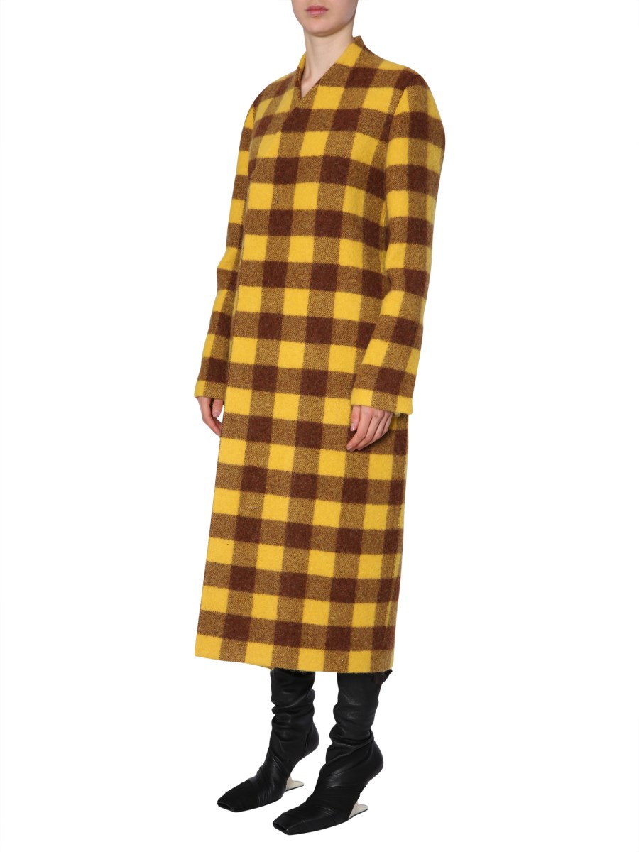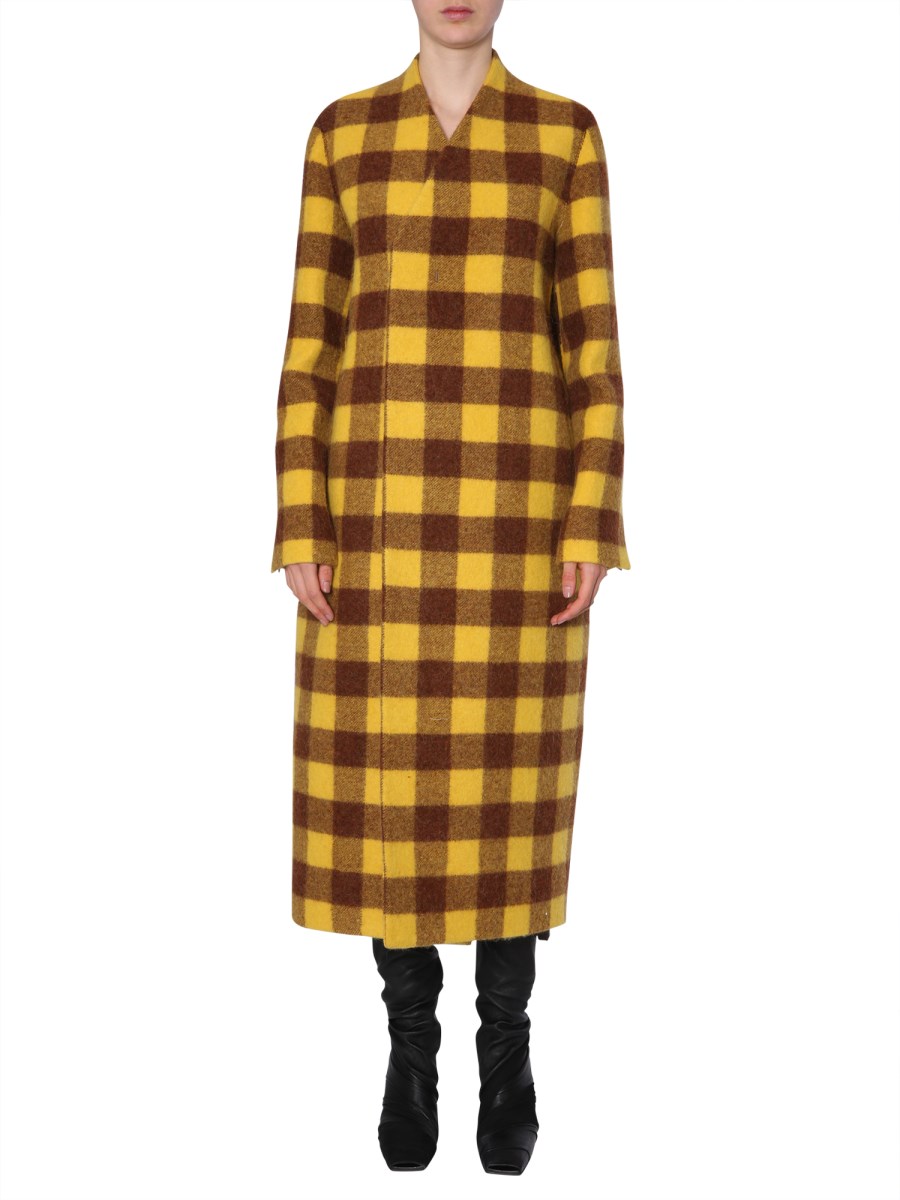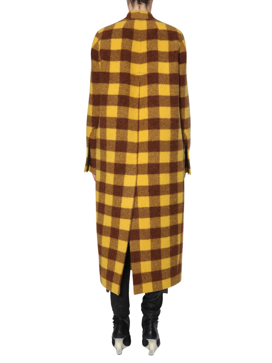 Printed in a stylish dual-coloured check pattern, this long coat is a must-have autumn/winter dress this year. The coat has a straight fit and double-breasted closure with hidden buttons. Fashioned in alpaca and wool, it offers great cold weather comfort. If you believe that style comes at an expense of comfort, this long coat might just prove you completely wrong.