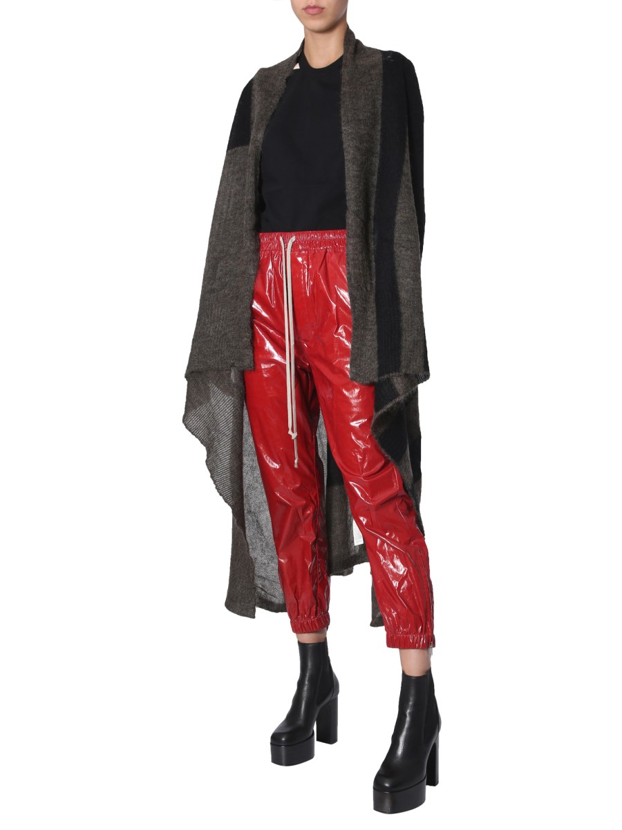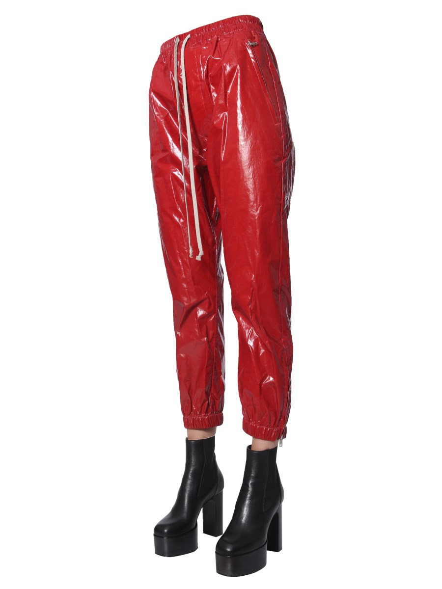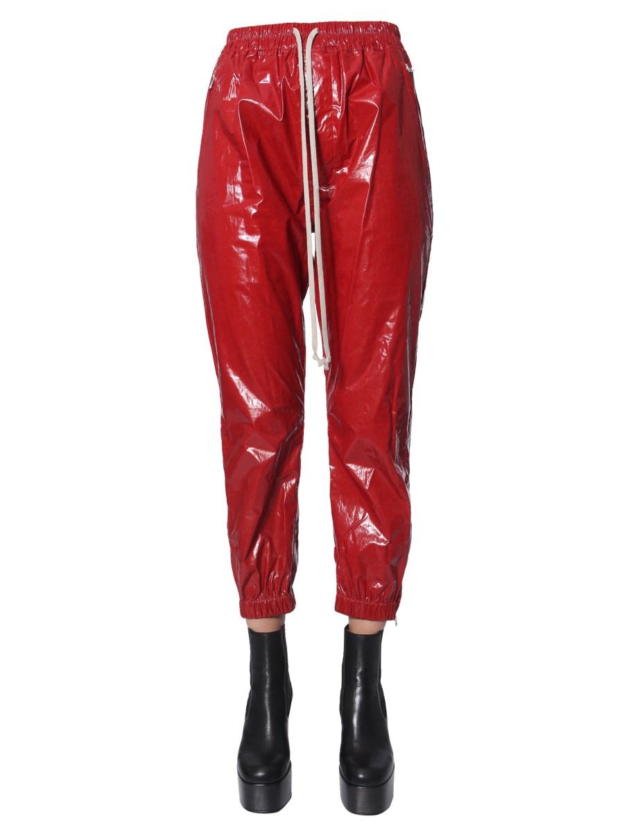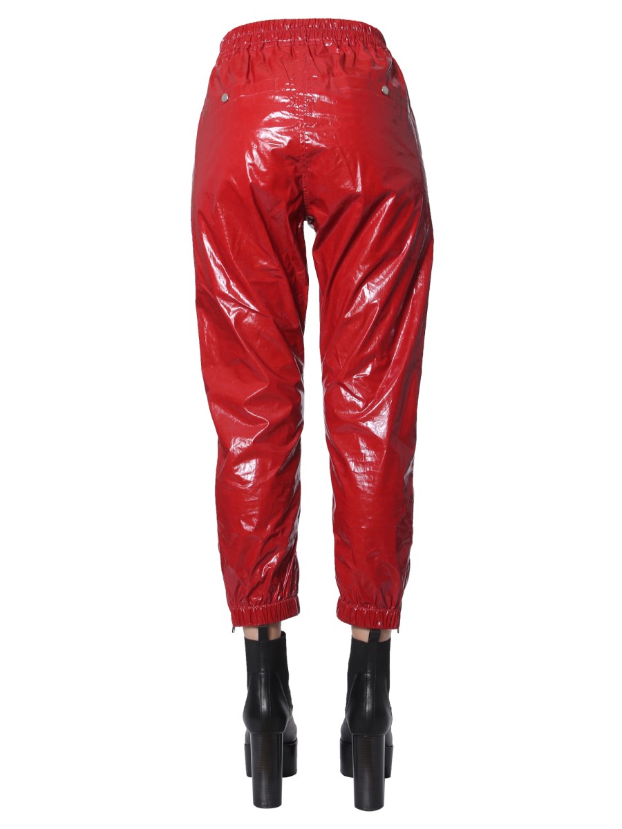 Done with the regular, boring pants? Try these elastic pants from Rick Owens. They come with a shiny exterior that is further complemented by the elasticated hemline. The drawstring closure with an elastic band will help you to get a customised fit. You can pair them with a black sweatshirt and sneakers while getting ready for an outing with friends.