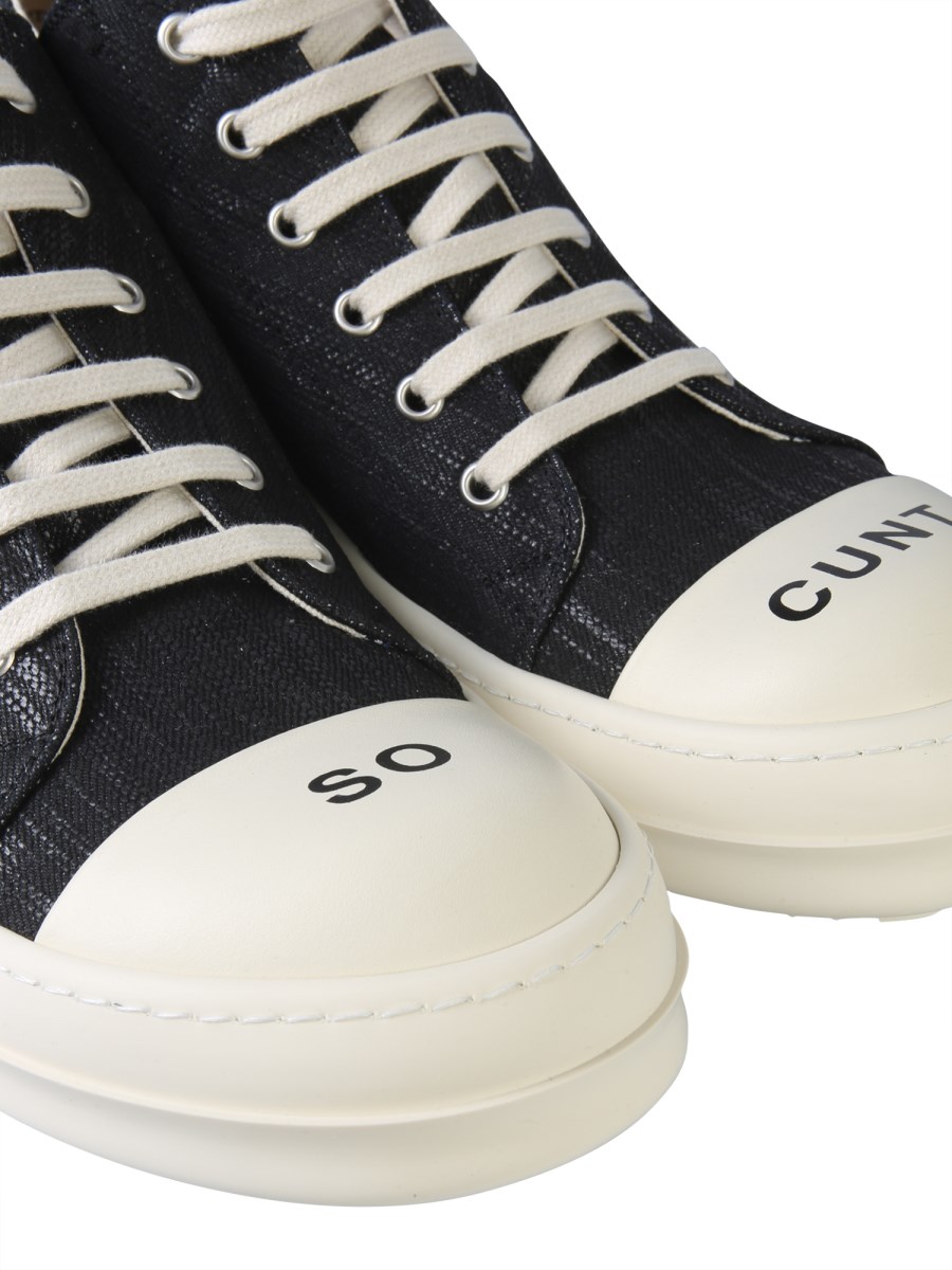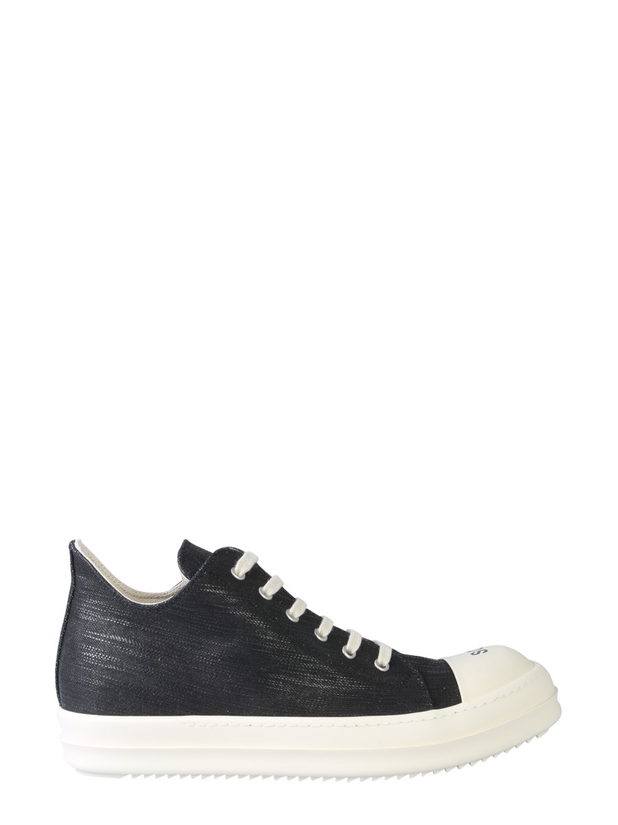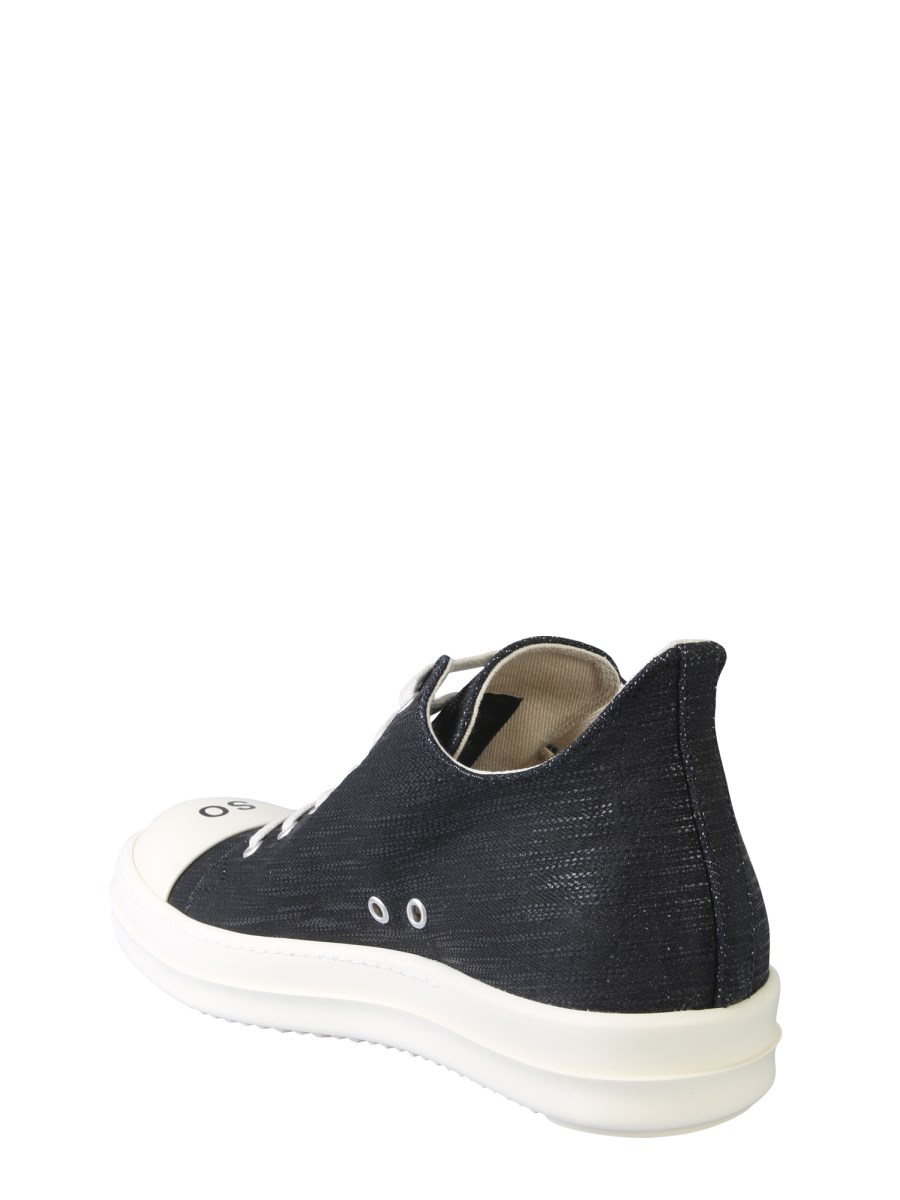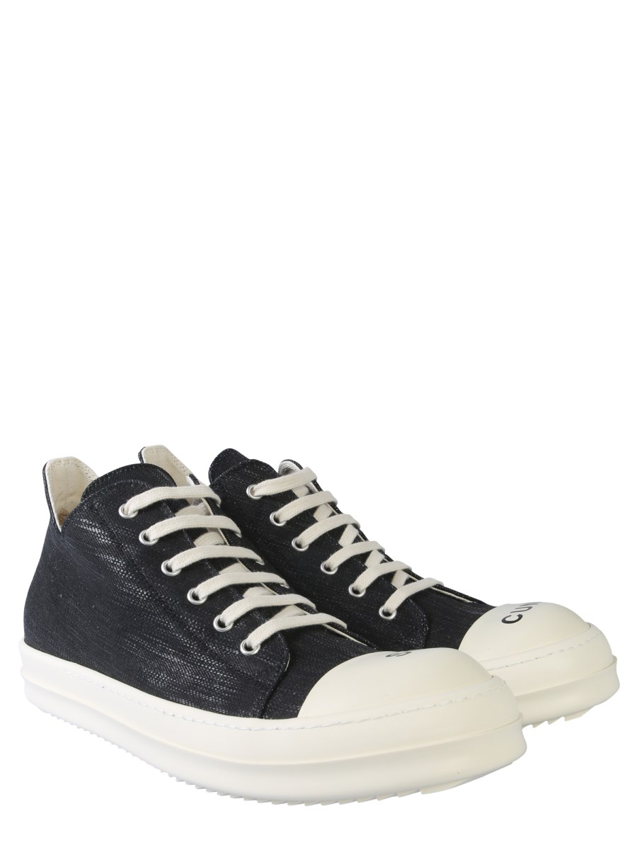Feel cool and look casual with these low sneakers from Rick Owens Drkshdw. These canvas sneakers are made of 100% coated cotton fabric that gives maximum breathability. The shoes have a front lace-up closure. They have canvas lining and insole that easily absorbs excess moisture and keeps your feet dry.