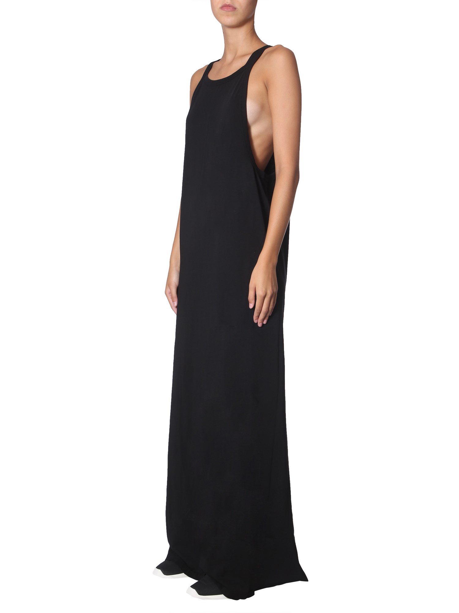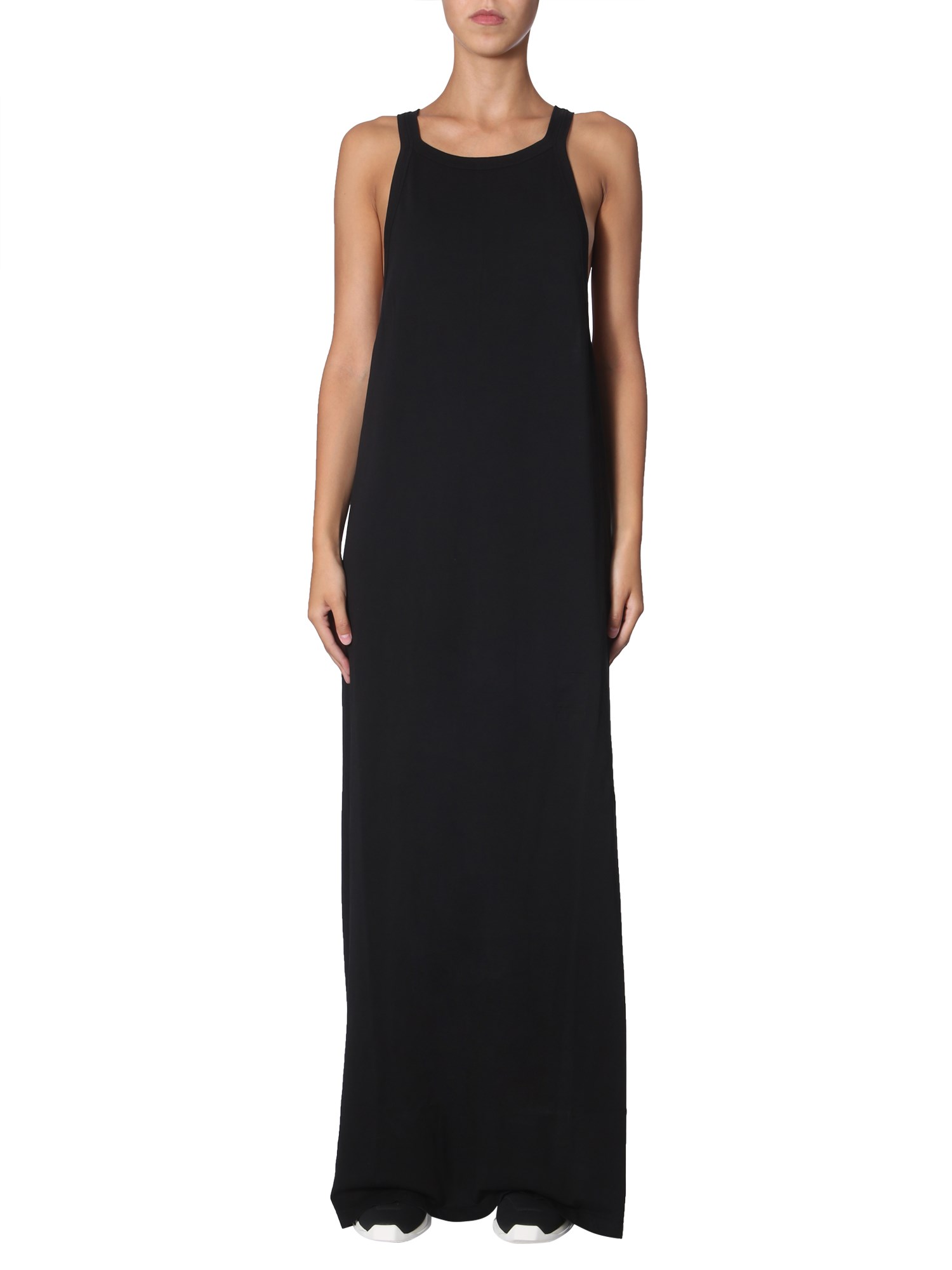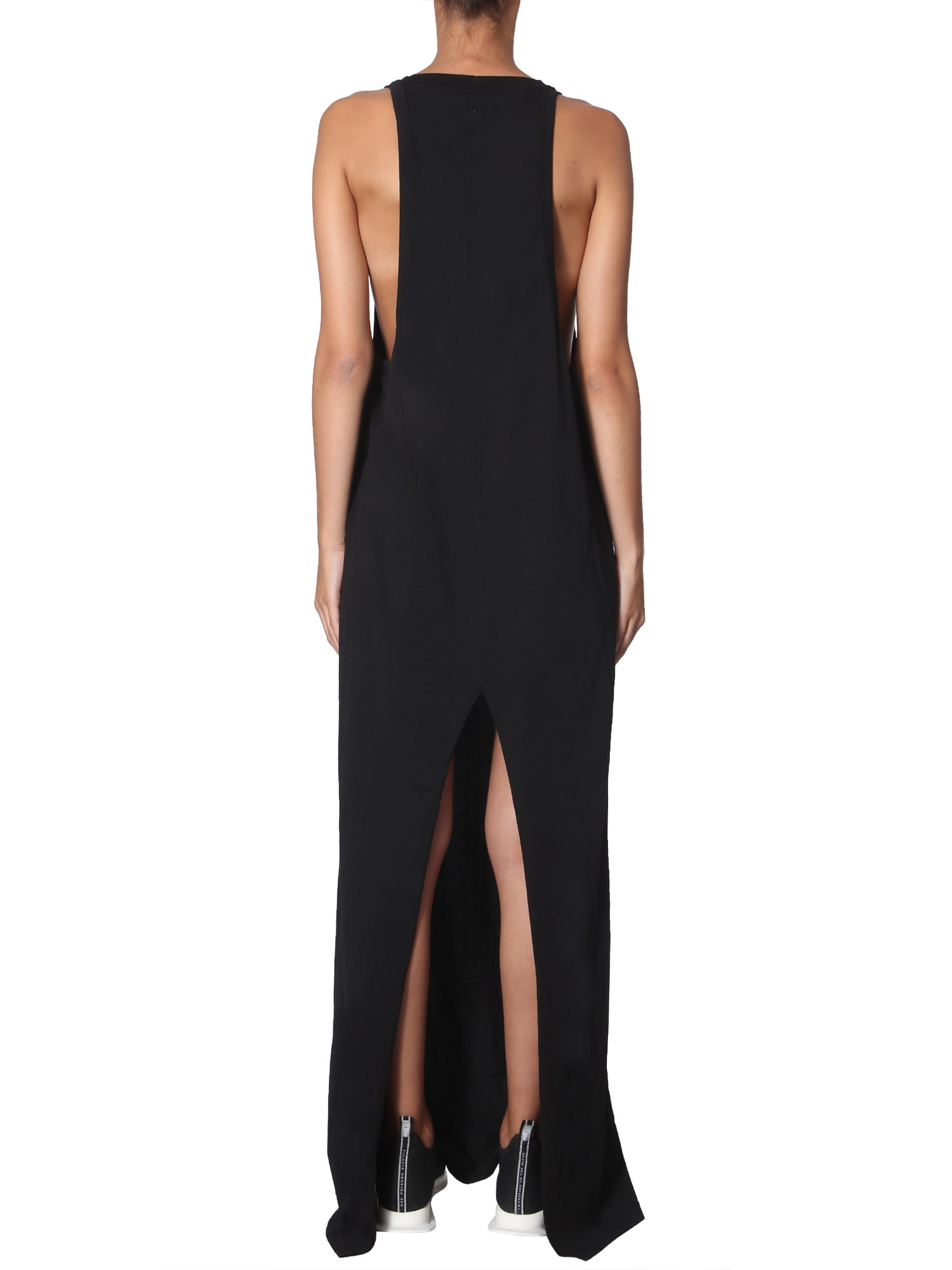 Stylish and attractive, this long dress from Rick Owens Drkshdw will give a fine upgrade to your summer wardrobe. It is made of fine quality cotton for a smooth and soft surface. The unique and stylish American neckline combines with the wide back slit to make it visually appealing.