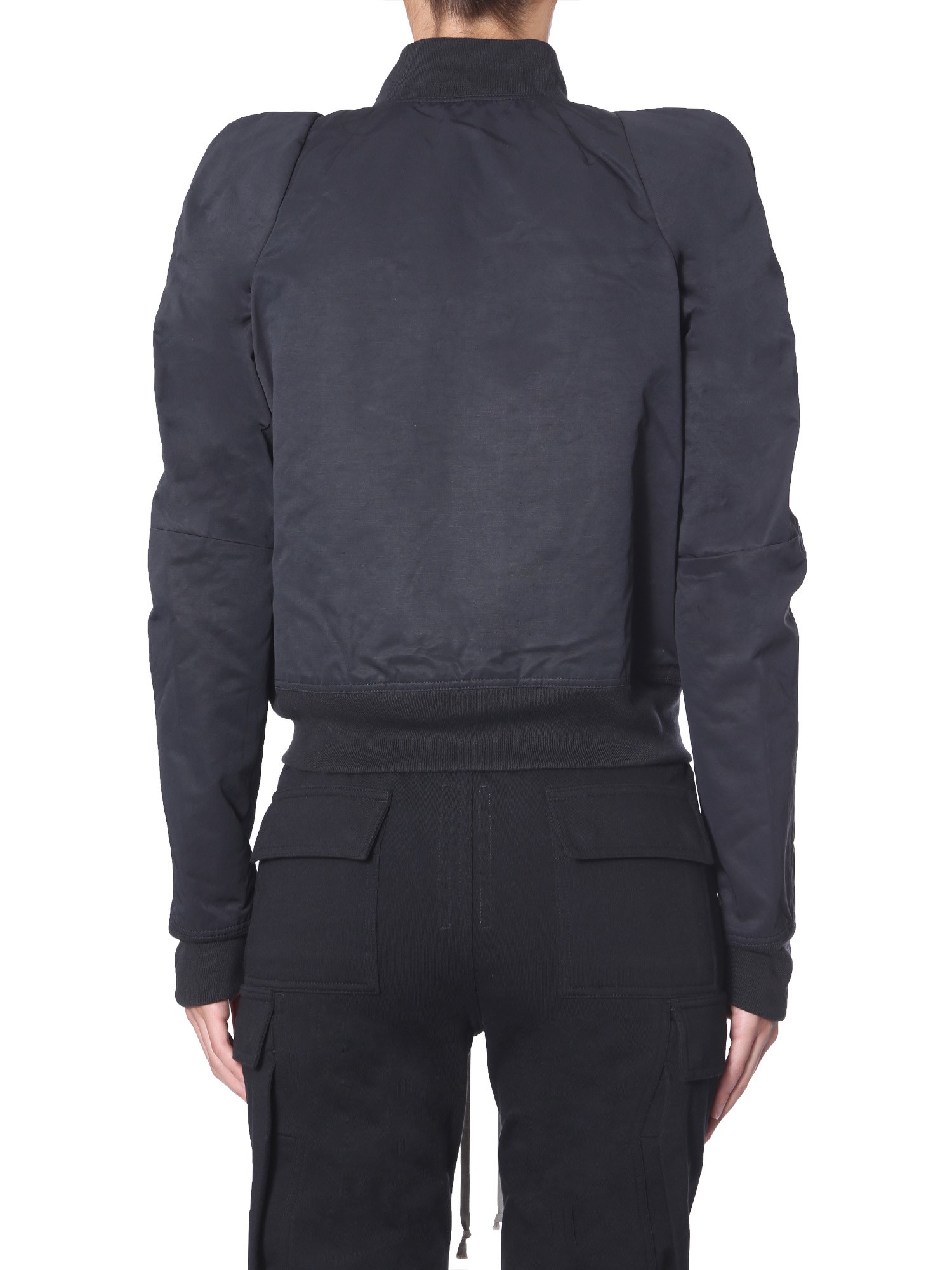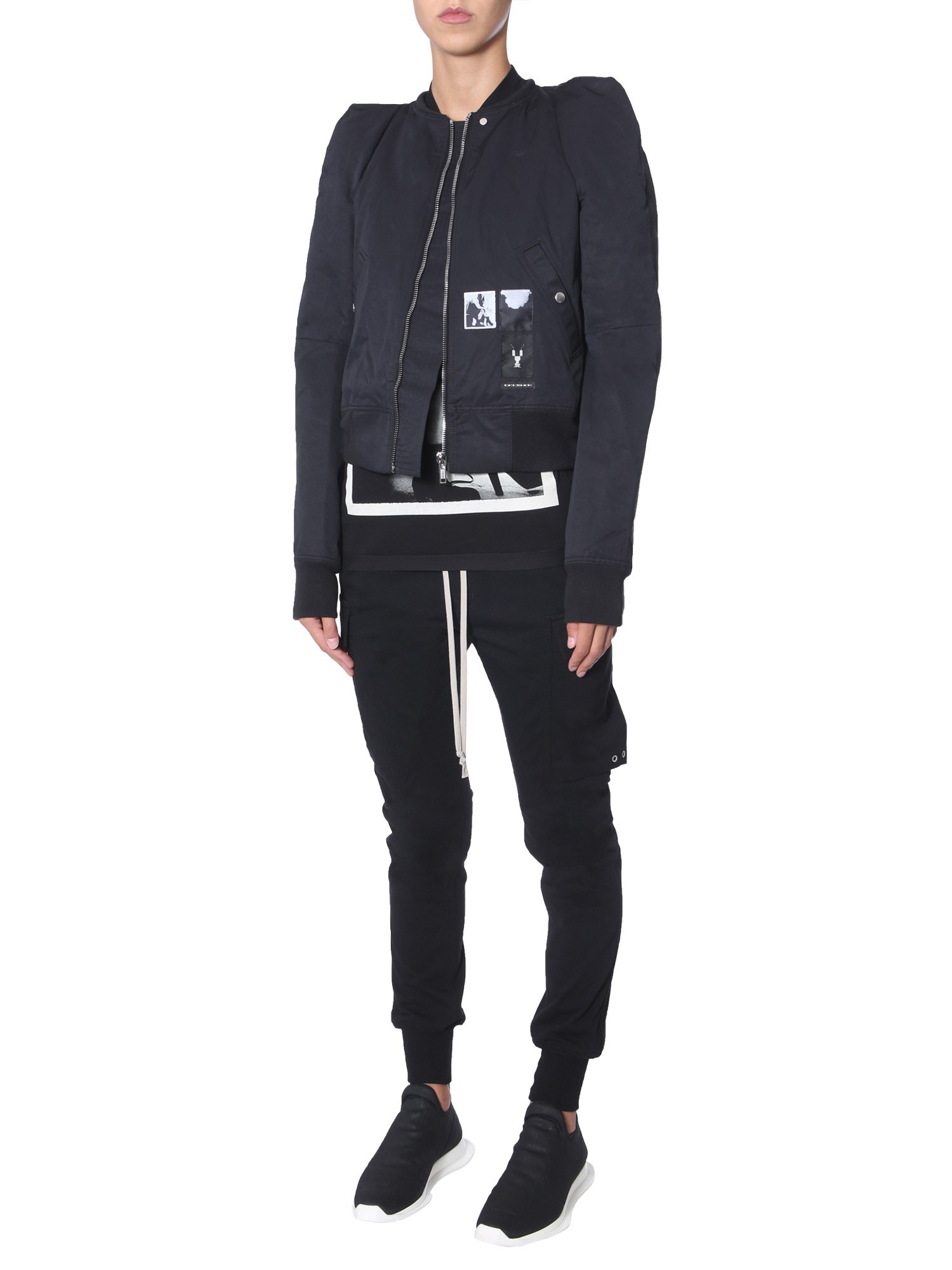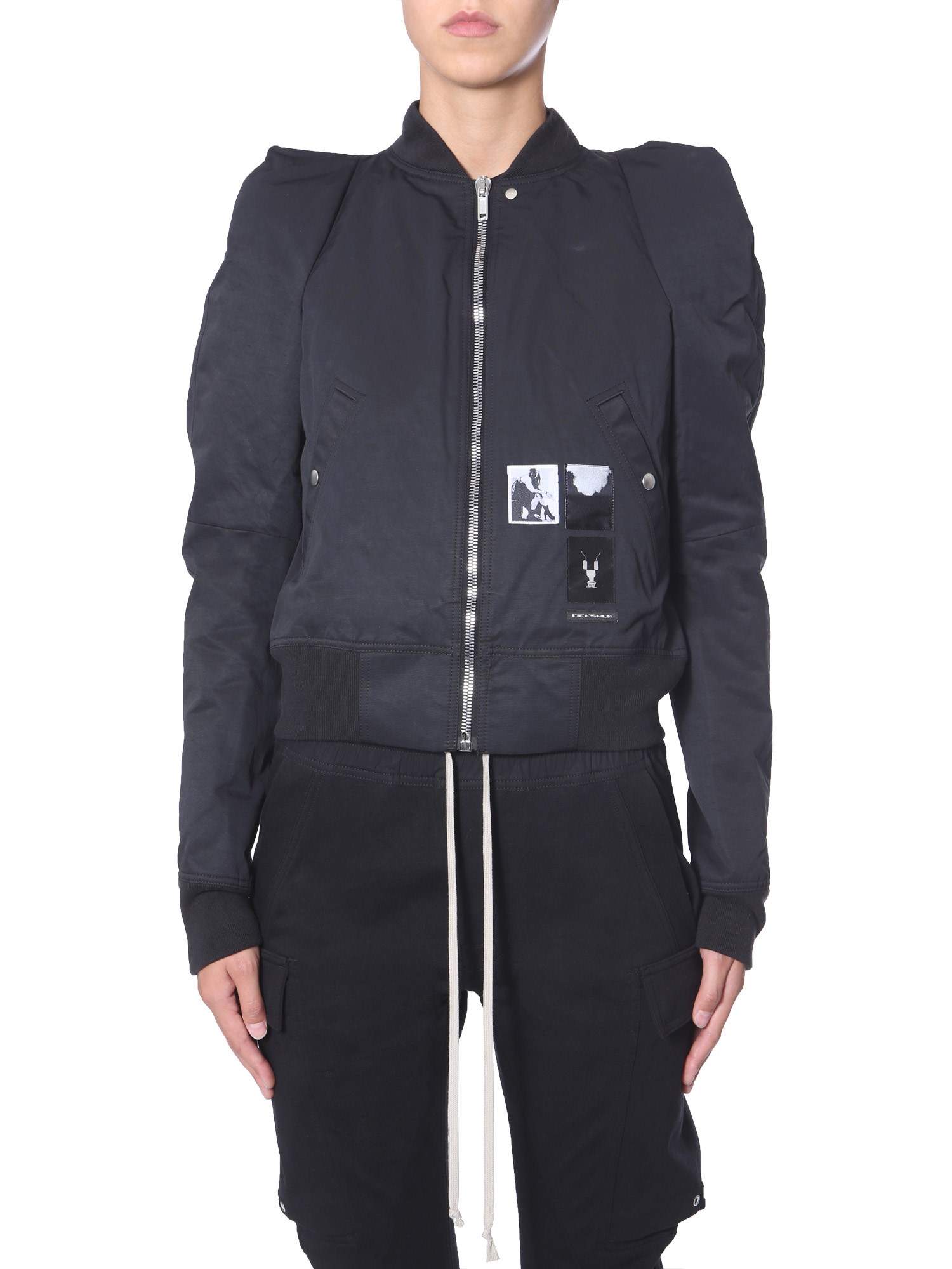 The Flight bomber from Rick Owens Drkshwd is cropped which gives you a great fit and defines your waistline. The bomber jacket is made with a blend of cotton and polyamide for moisture-resistance and insulation. It has a logo patch on the pocket to create a style statement. The two inner and two side pockets are included for functionality.