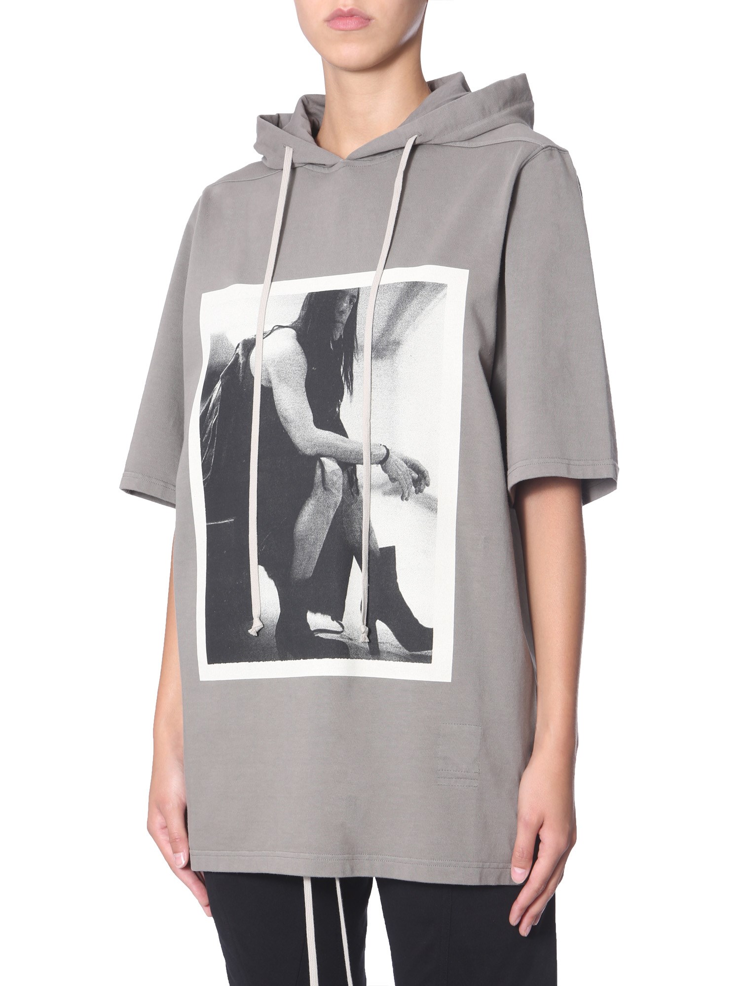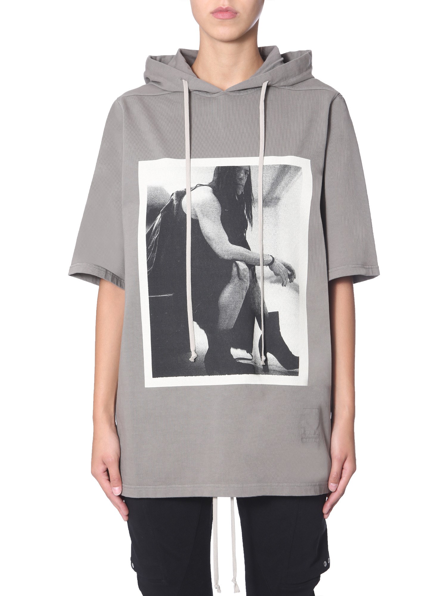 The Jumbo sweatshirt from Rick Owens Drkshwd is the perfect addition to your winter wardrobe. This stylish, oversized sweatshirt has a printed front and made of 100% cotton with brushed inner for comfort and warmth. It has short sleeves that make the winter wear ideal to layer up with a full sleeves T-shirt.