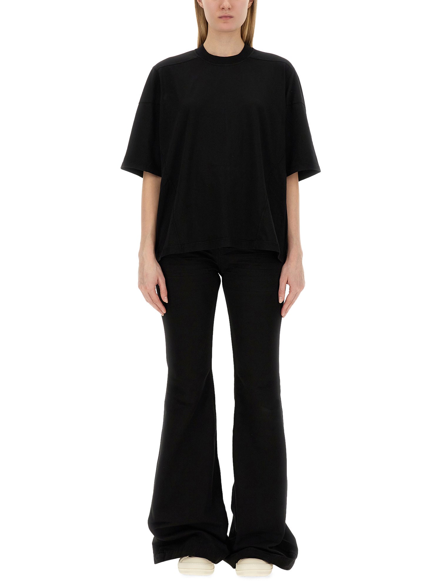 Elevate your casual wardrobe with the Walrus T-shirt from Rick Owens DRKSHDW. This black cotton T-shirt features a crew neck, short sleeves, and a relaxed fit for a comfortable yet stylish look. The signature walrus graphic print on the front adds a unique and edgy touch to this versatile piece. Perfect for pairing with jeans or layering under a jacket, this T-shirt is a must-have for fans of the brand's avant-garde aesthetic.