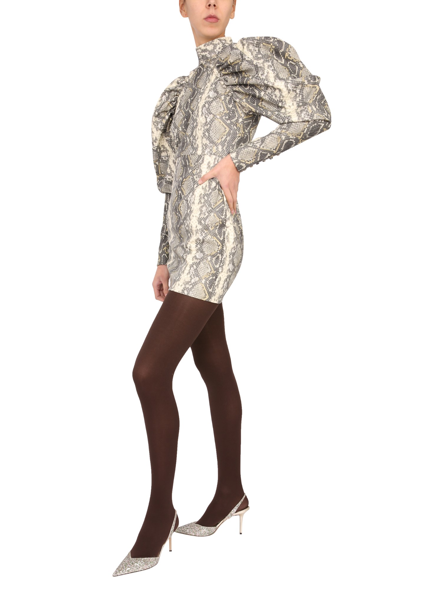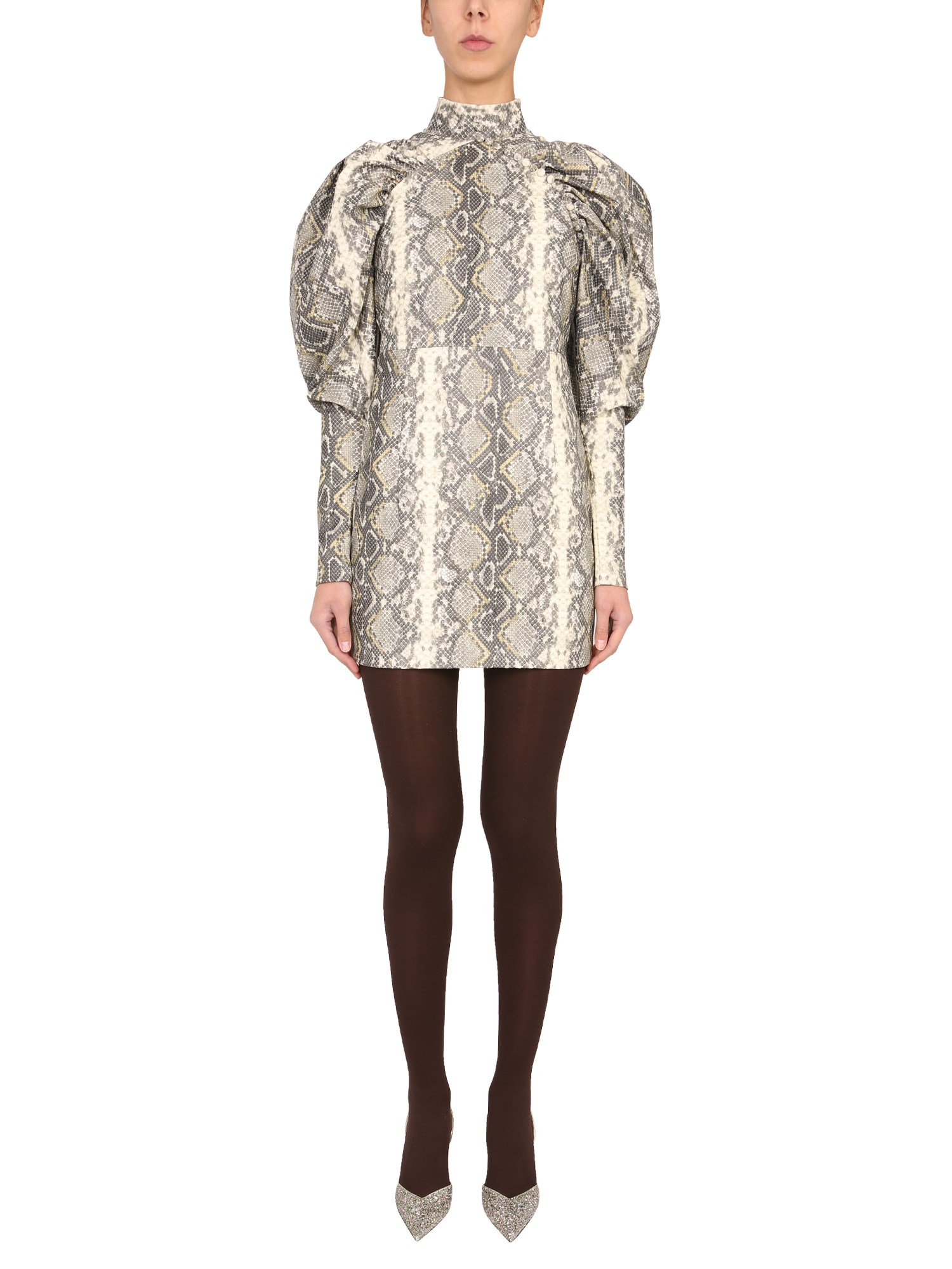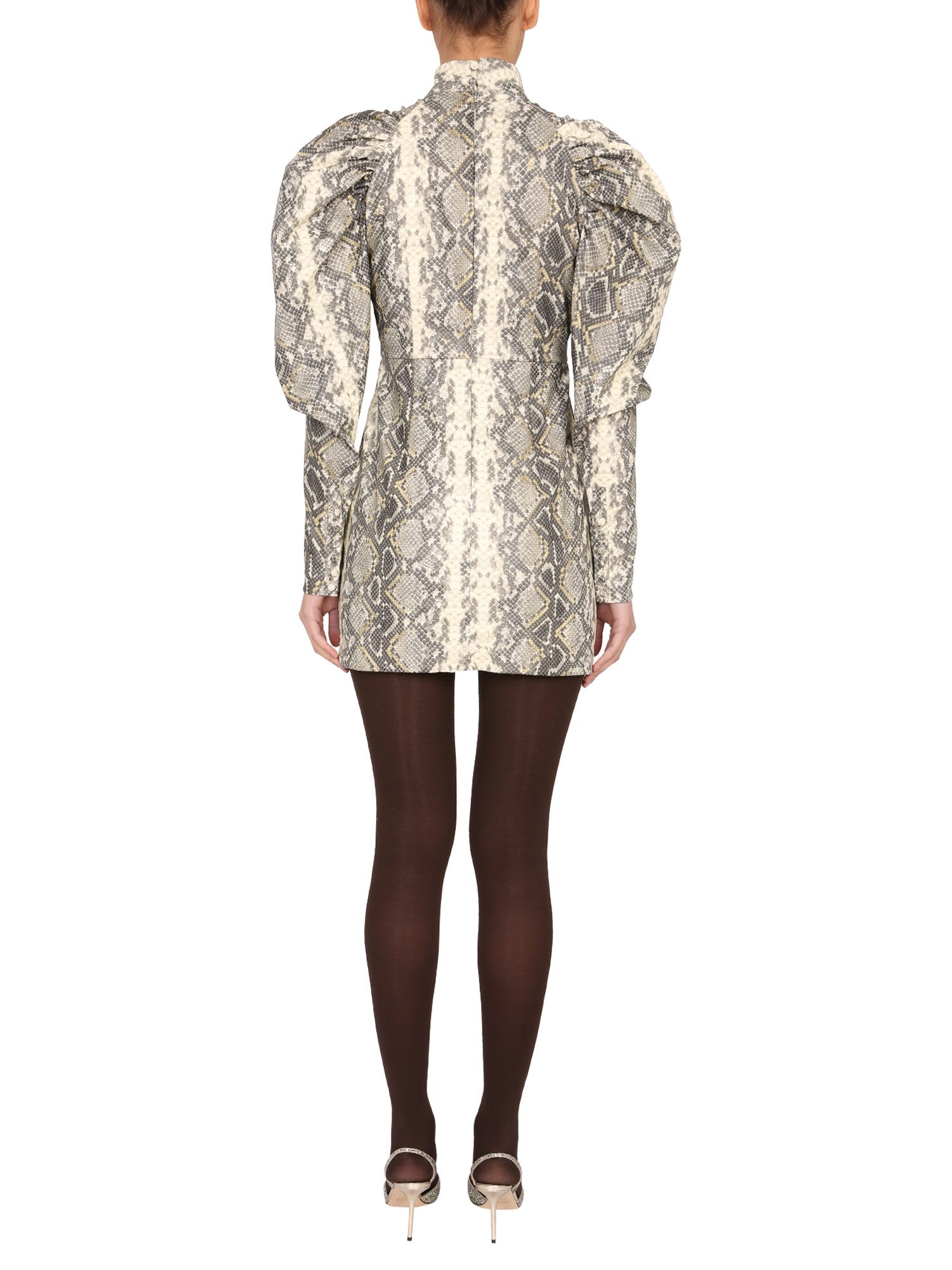 Introducing this Kim Dress by ROTATE Birger Christensen. This multi-coloured dress has a python print with voluminous shoulders. It has a lined inner and back lined buttons closure. The dress has a zip on the backside and fits your body perfectly flaunting your perfect figure. Adorn this short length dress with your favourite accessory and let the world adore you.