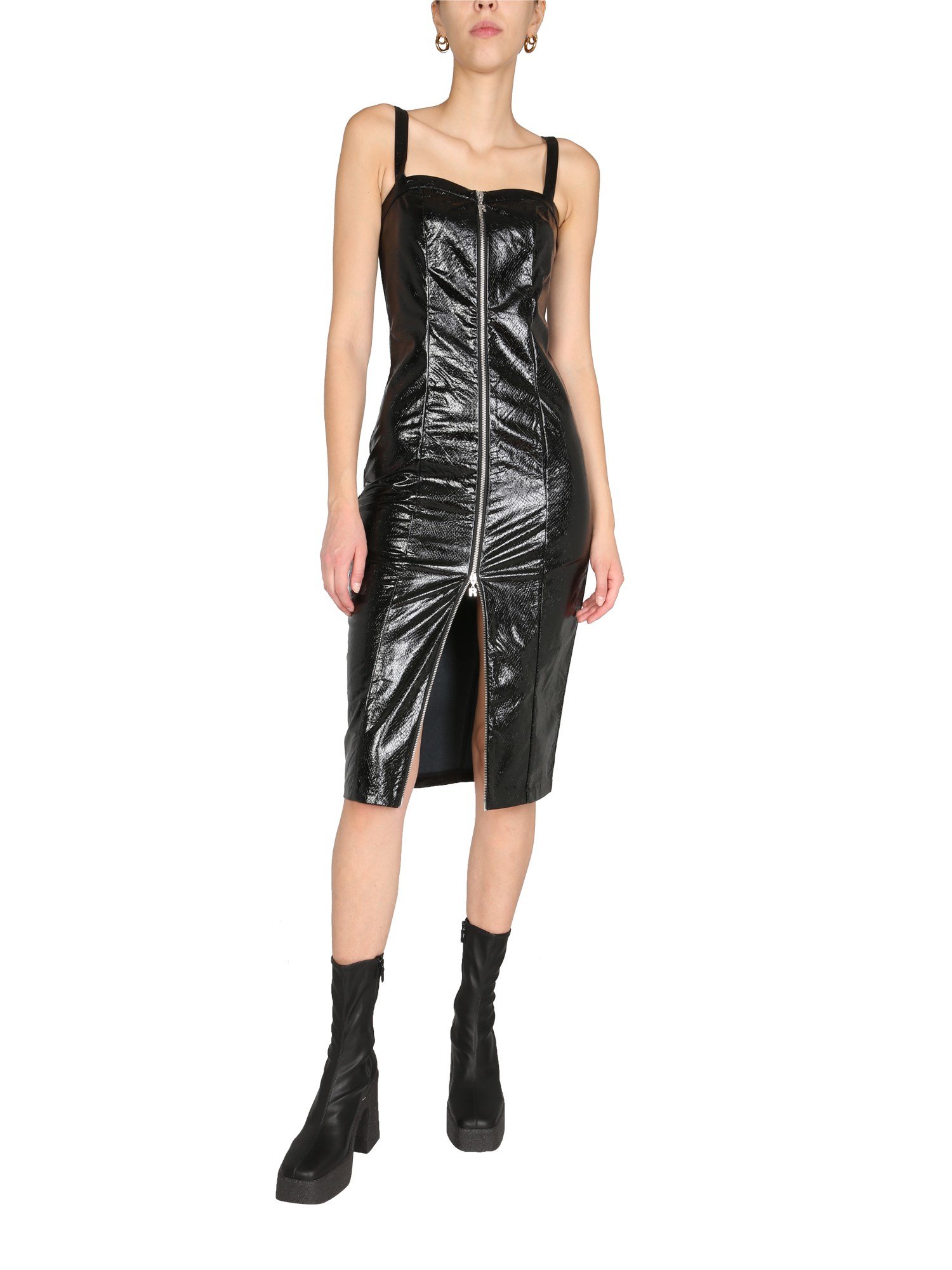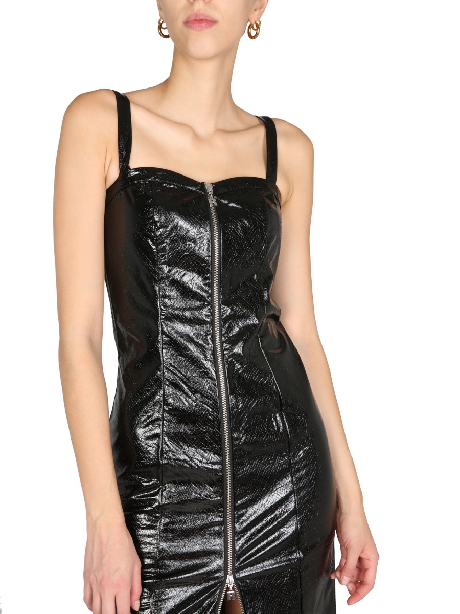 - HEART NECK- FRONT ZIP CLOSURE- LOGO CURSOR- 100% POLYURETHANE- MODEL IS 180 CM TALL AND WEARS SIZE 36 DK