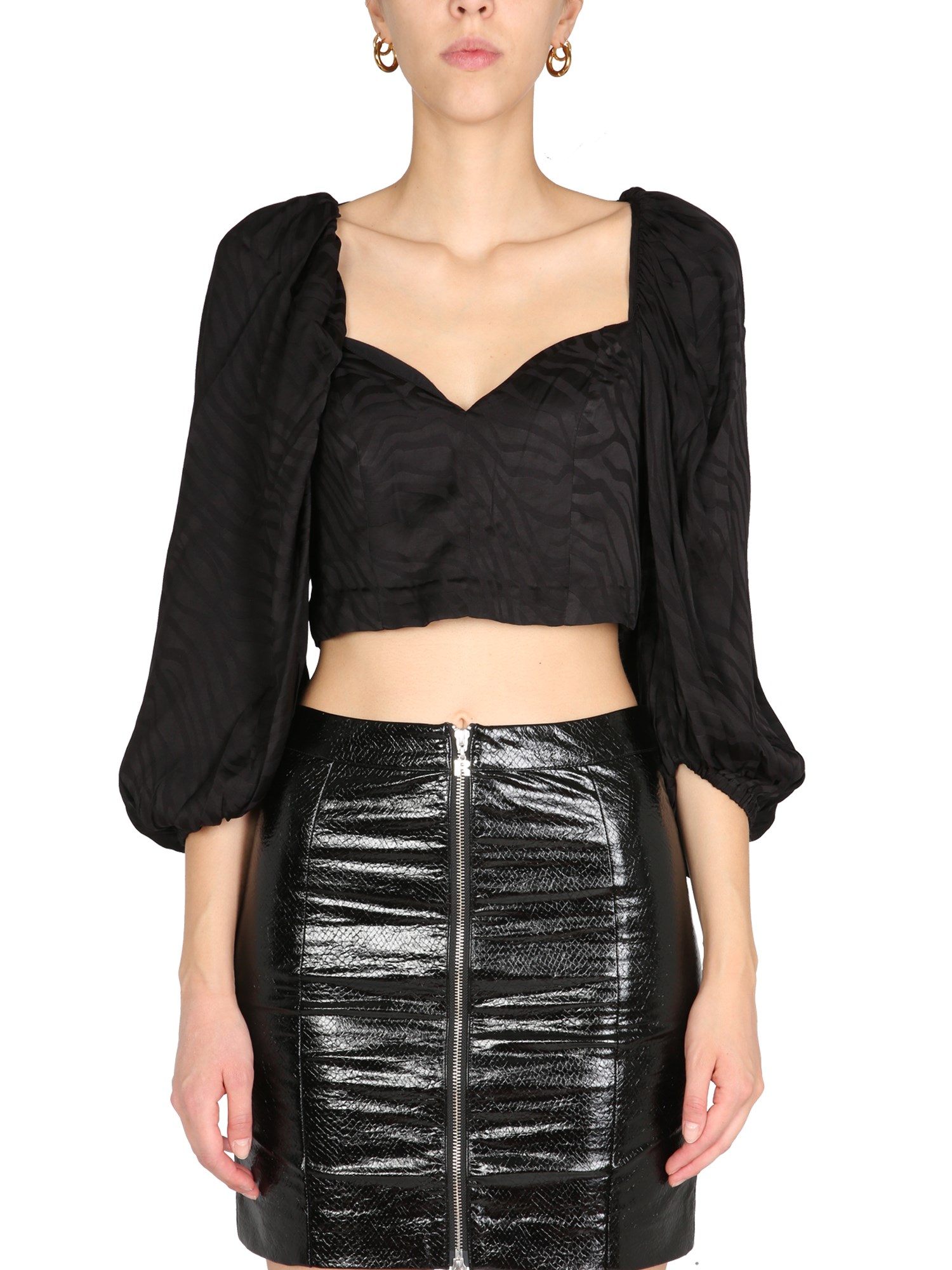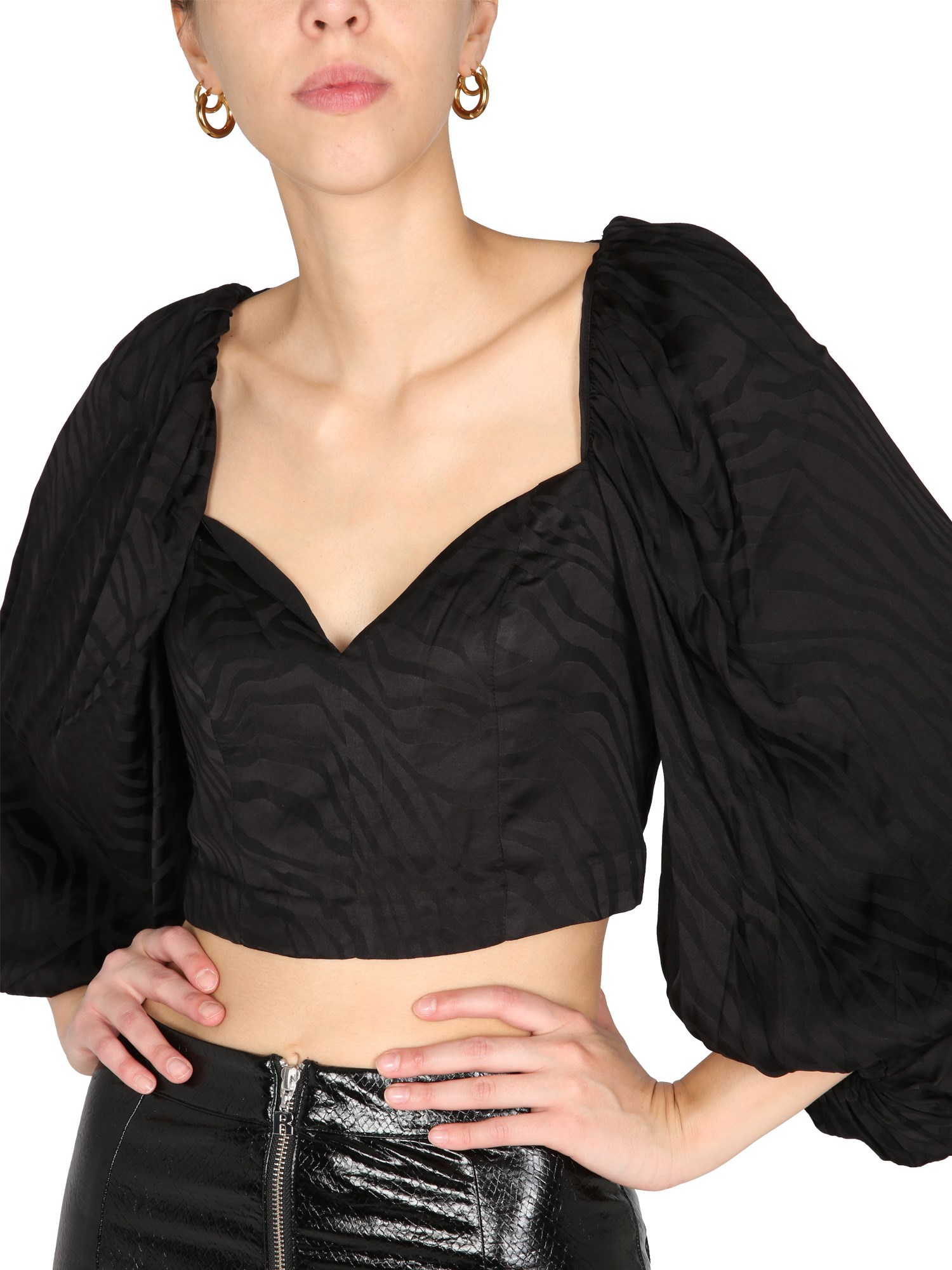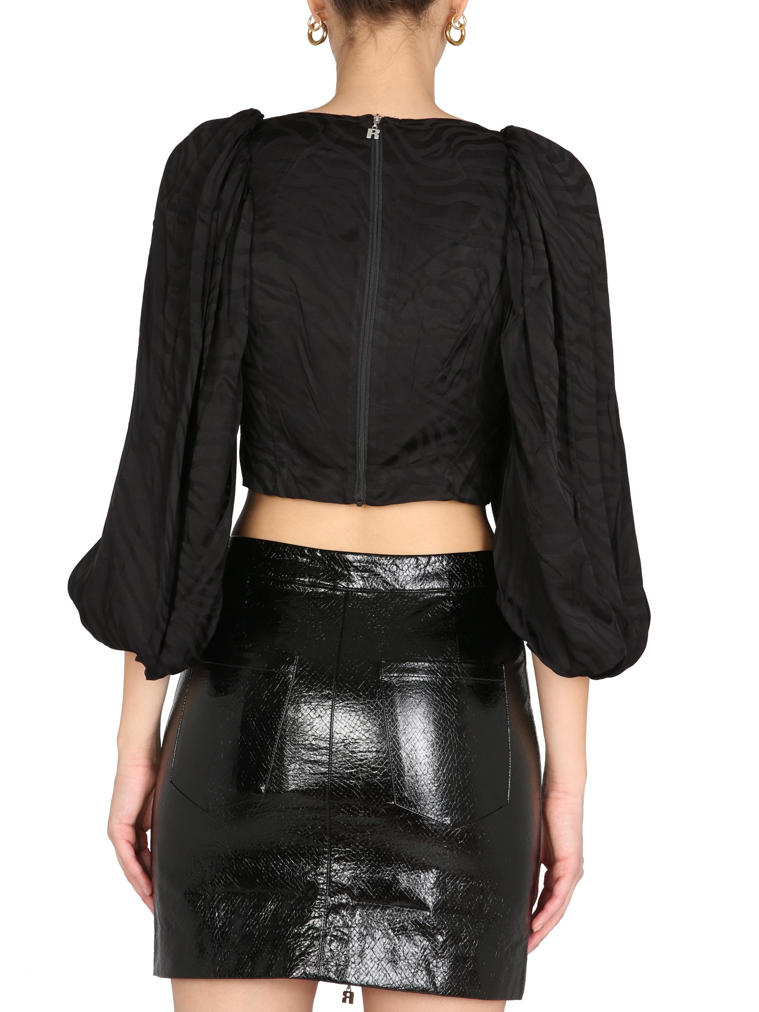 - BACK ZIP CLOSURE - PUFF SLEEVES- CROPPED- 100% VISCOSE- MODEL IS 180 CM TALL AND WEARS SIZE 36 DK