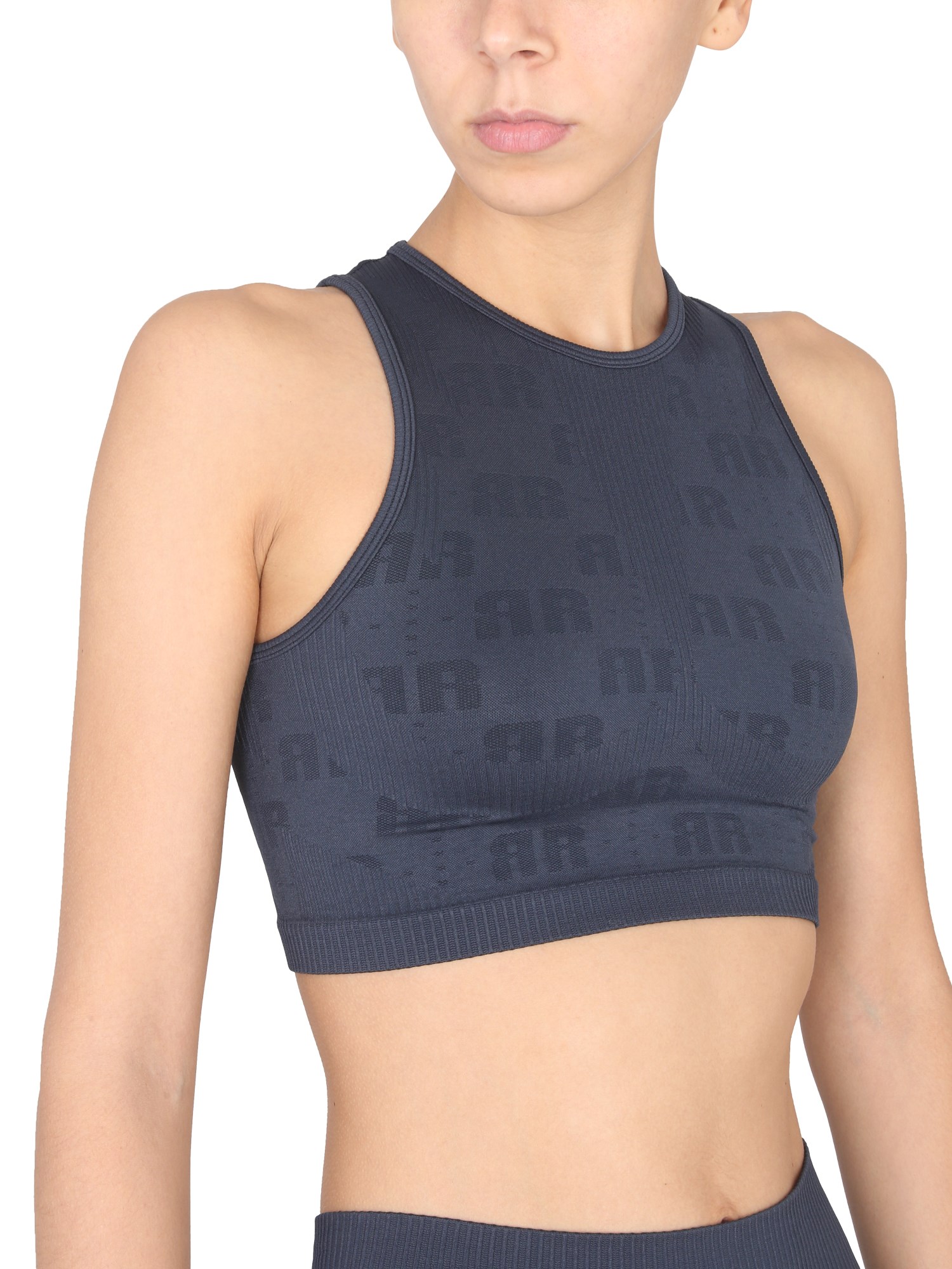 The Seamless Sleeveless Crop Top has a cool, sporty look. It has a round neck and a cropped waist. The fabric has signature R logos all over. Pair it with the matching Seamless High Waist Leggings.
