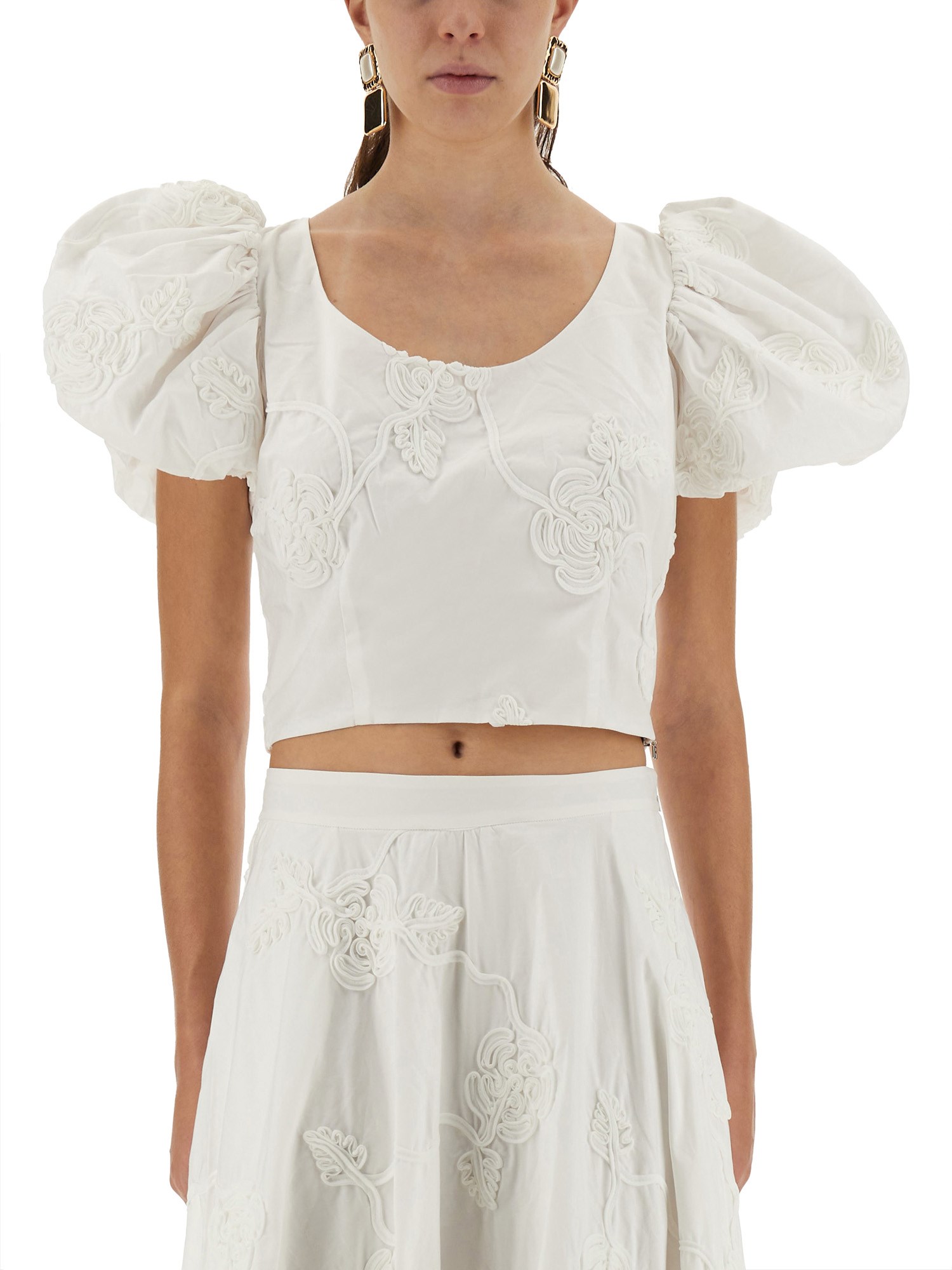 COTTON TOP WITH PUFF SLEEVES AND 3D PATTERN