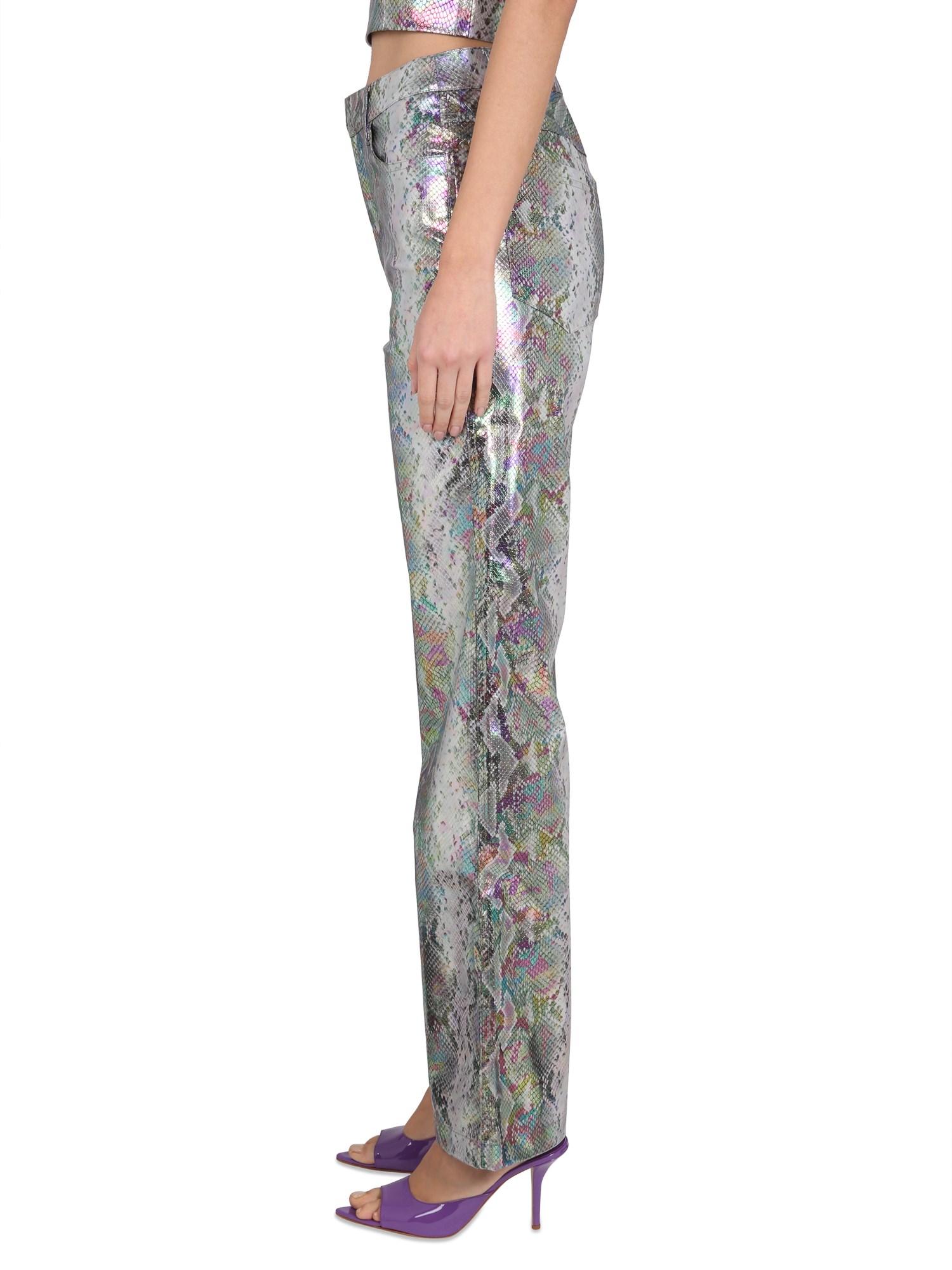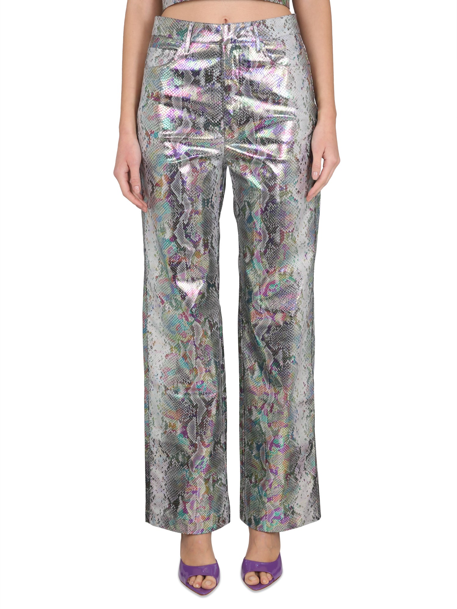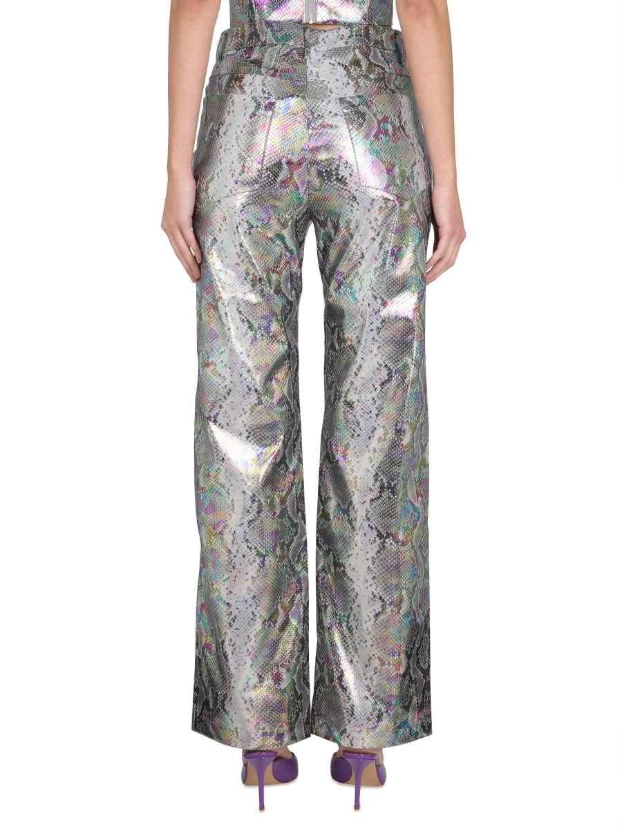 SNAKE PU STRAIGHT PANTS SILVER HOLOGRAPHIC
