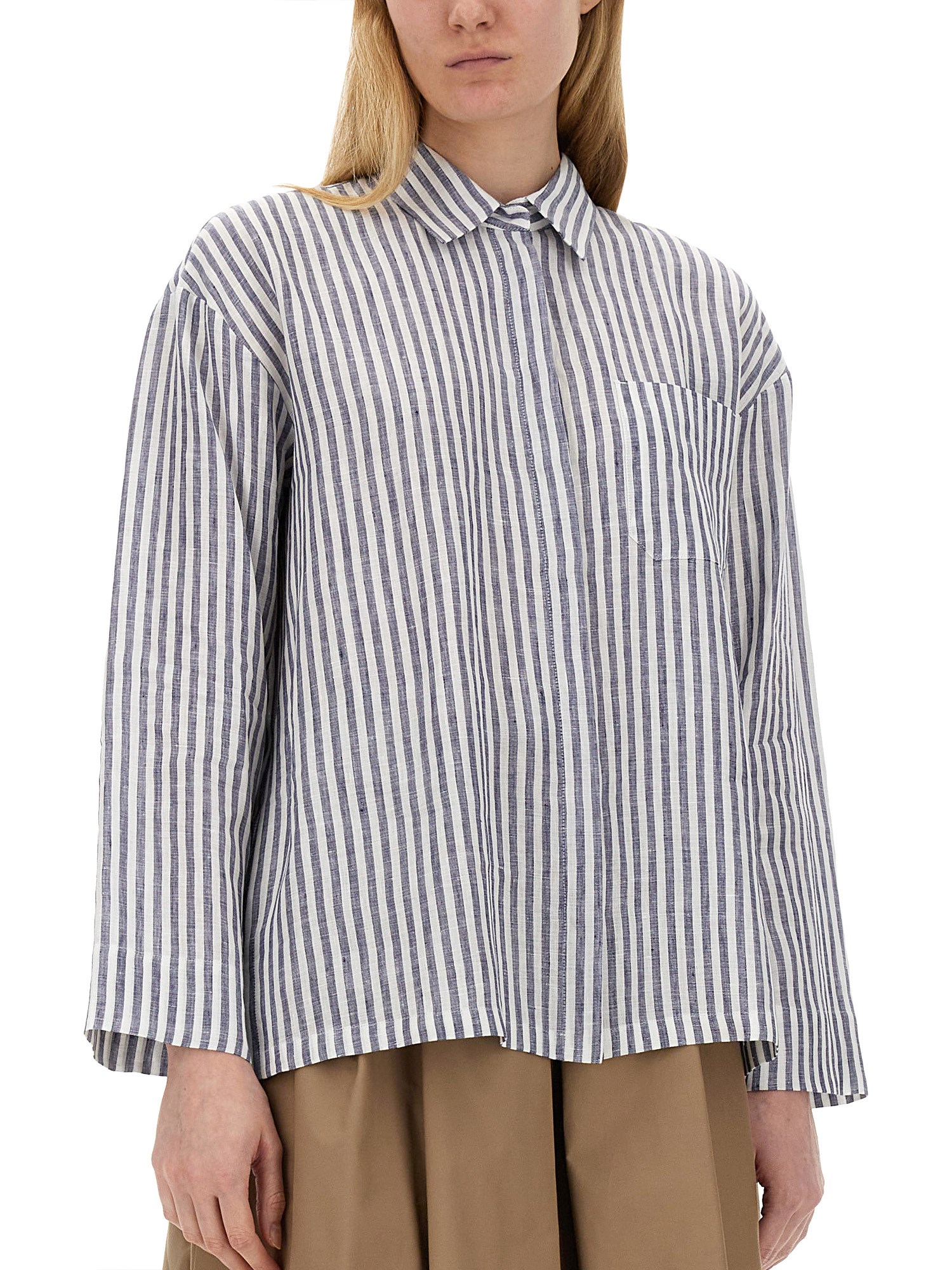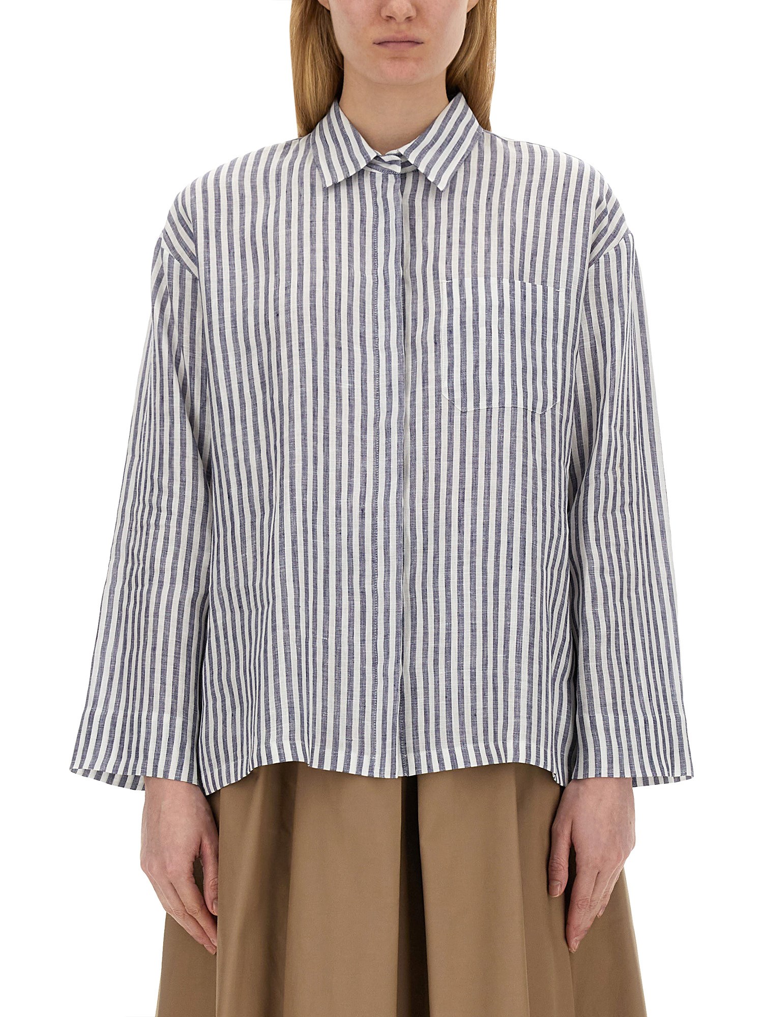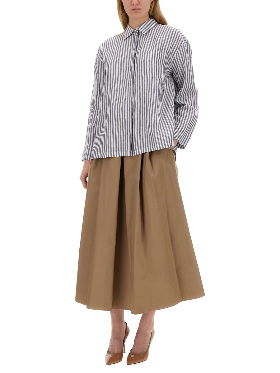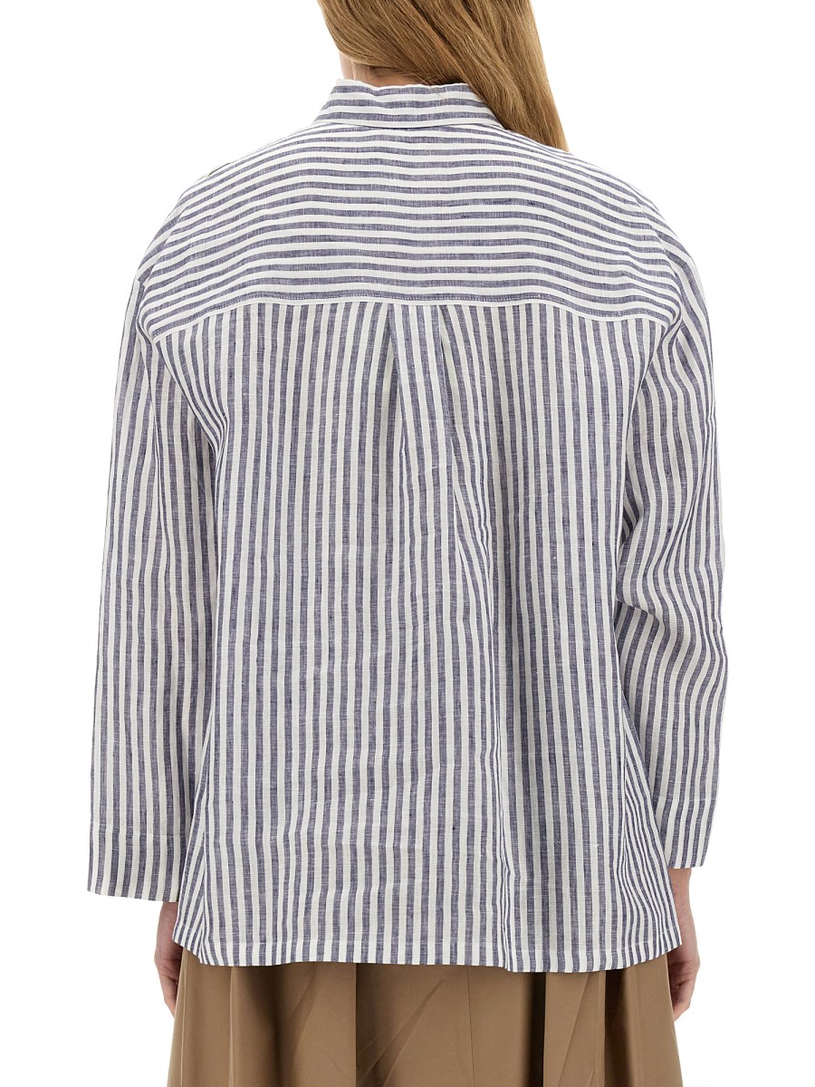 Stay stylish and comfortable this summer with our drawstring waistband navy blue cotton bermuda shorts from Max Mara. Pair them with our multicolour flaxlinen striped shirt for a chic and effortless look that will take you from day to night with ease.