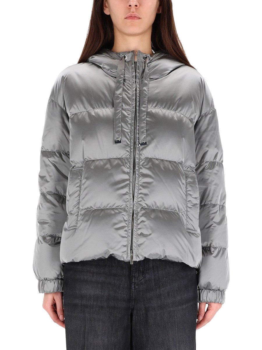 DRIP-PROOF TECHNICAL SATIN DOWN JACKET WITH HOOD