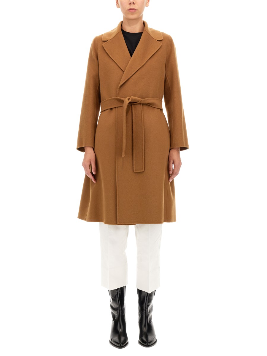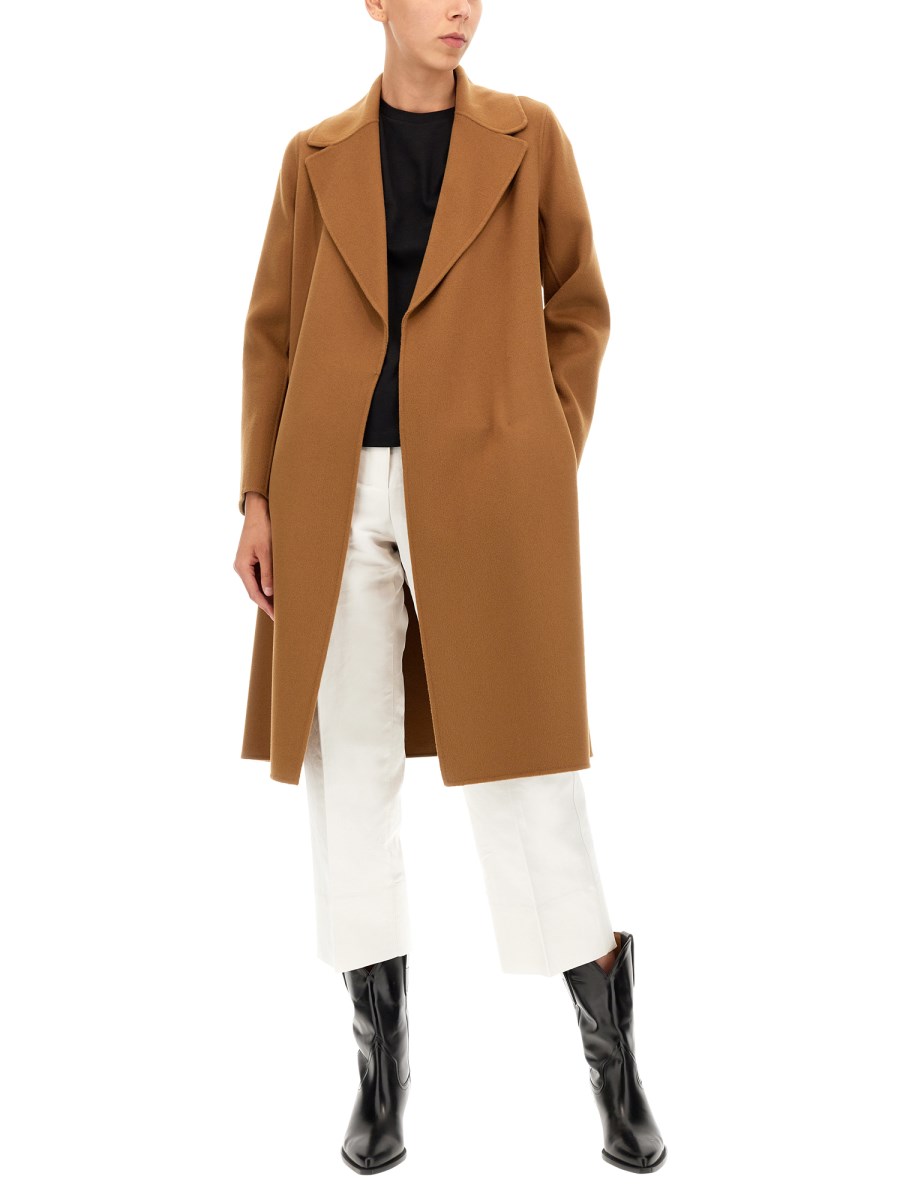 - PEAKED LAPELS- WAIST BELT- TWO SIDE POCKETS- ONE SIDE SLIT- 100% VIRGIN WOOL- THE MODEL IS 180 CM TALL AND WEARS SIZE 38 FR
