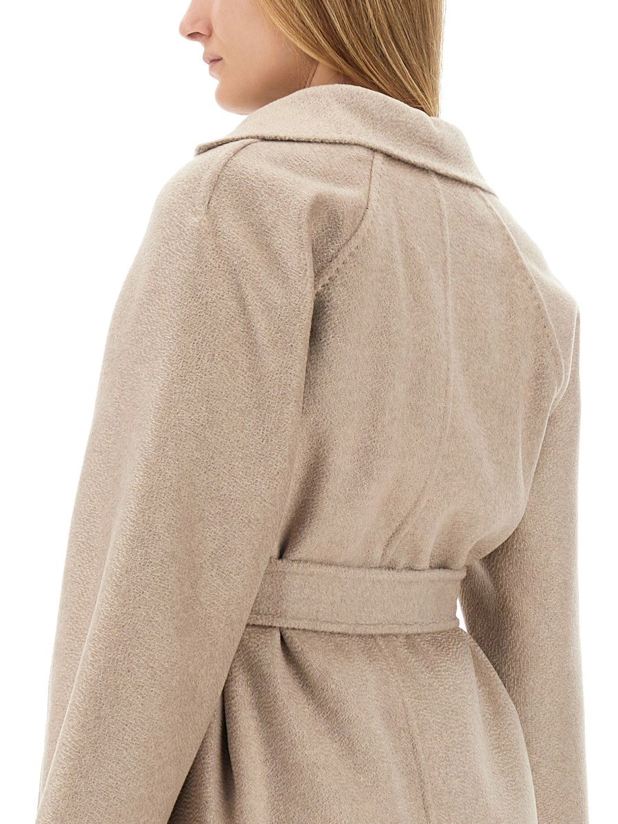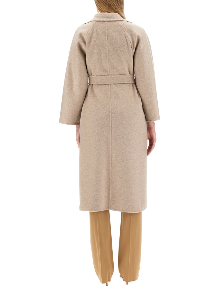 This cashmere coat from Max Mara is perfect for the cold winter months. With an open front and a self-tie belt, the stylish coat has a touch of stretch for comfort and is a great choice for those looking for a more casual option. It features an oversized collar, long sleeves, and a straight hemline.