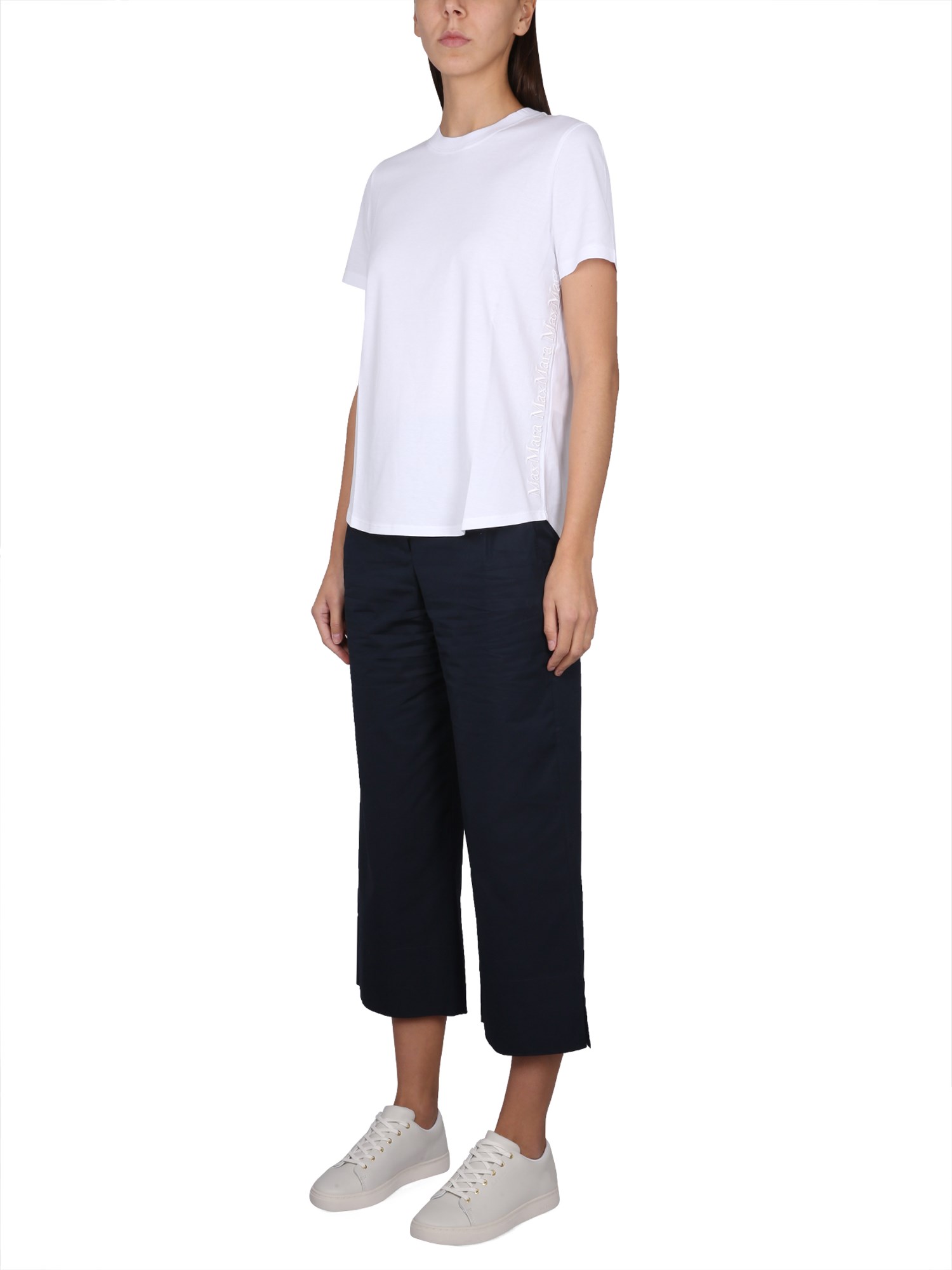The wide leg cotton black pants by S Max Mara, is a casual pair of pants that can be worn in any situation. The black colour goes with almost anything. The pants have a wide leg design, which makes them comfortable and easy to wear. These pants are made from cotton, so they are soft and comfortable. The wide leg design makes them versatile for any body type.