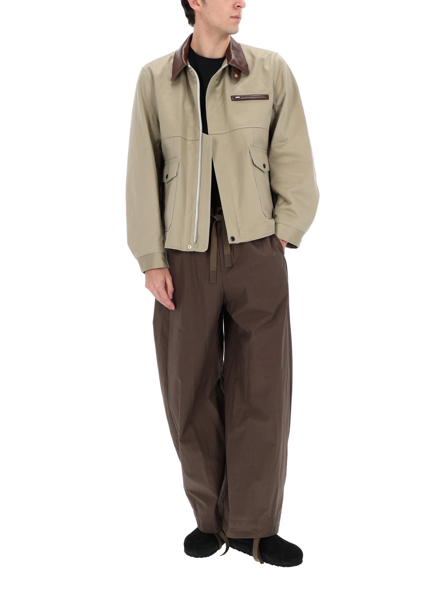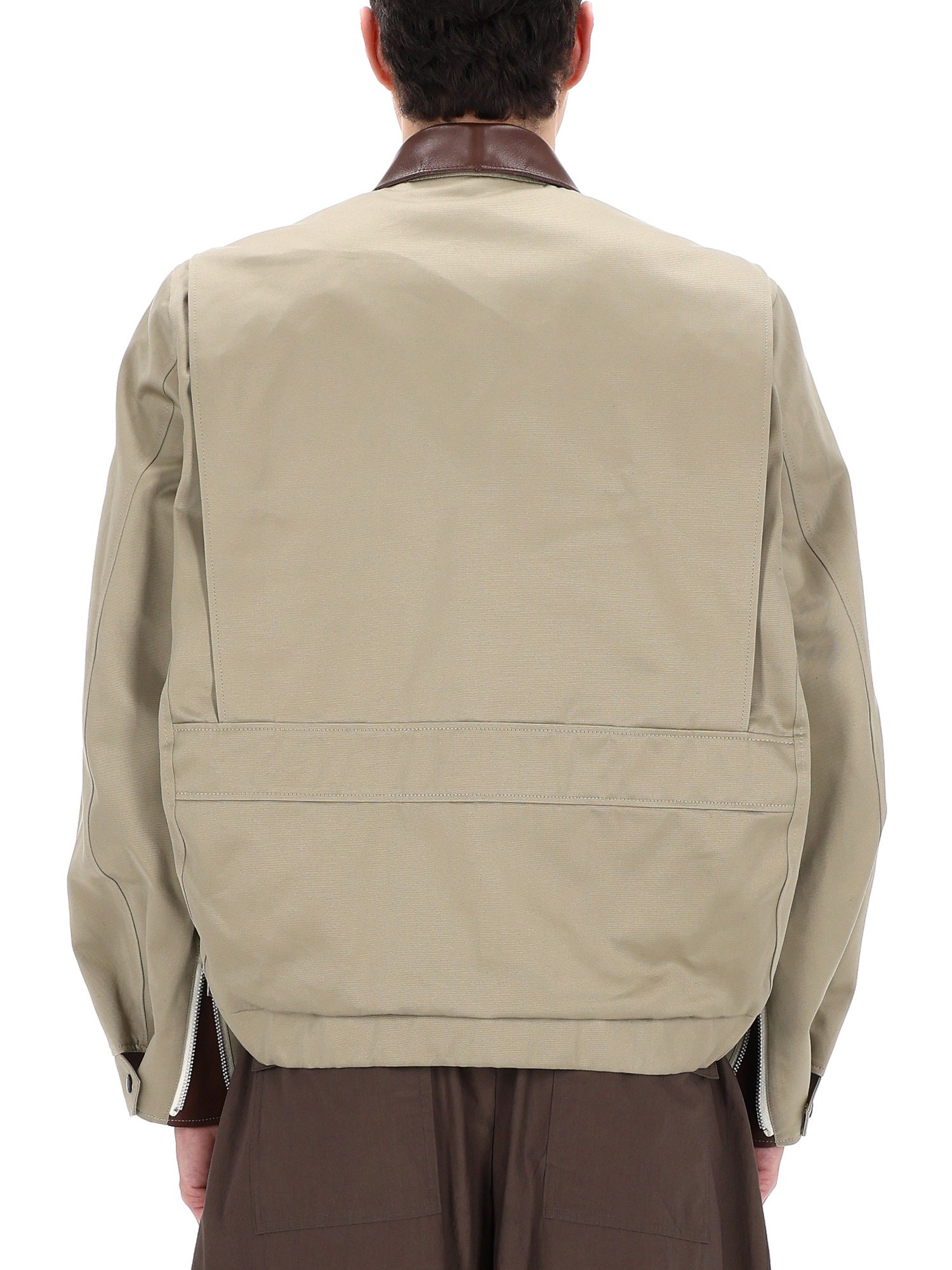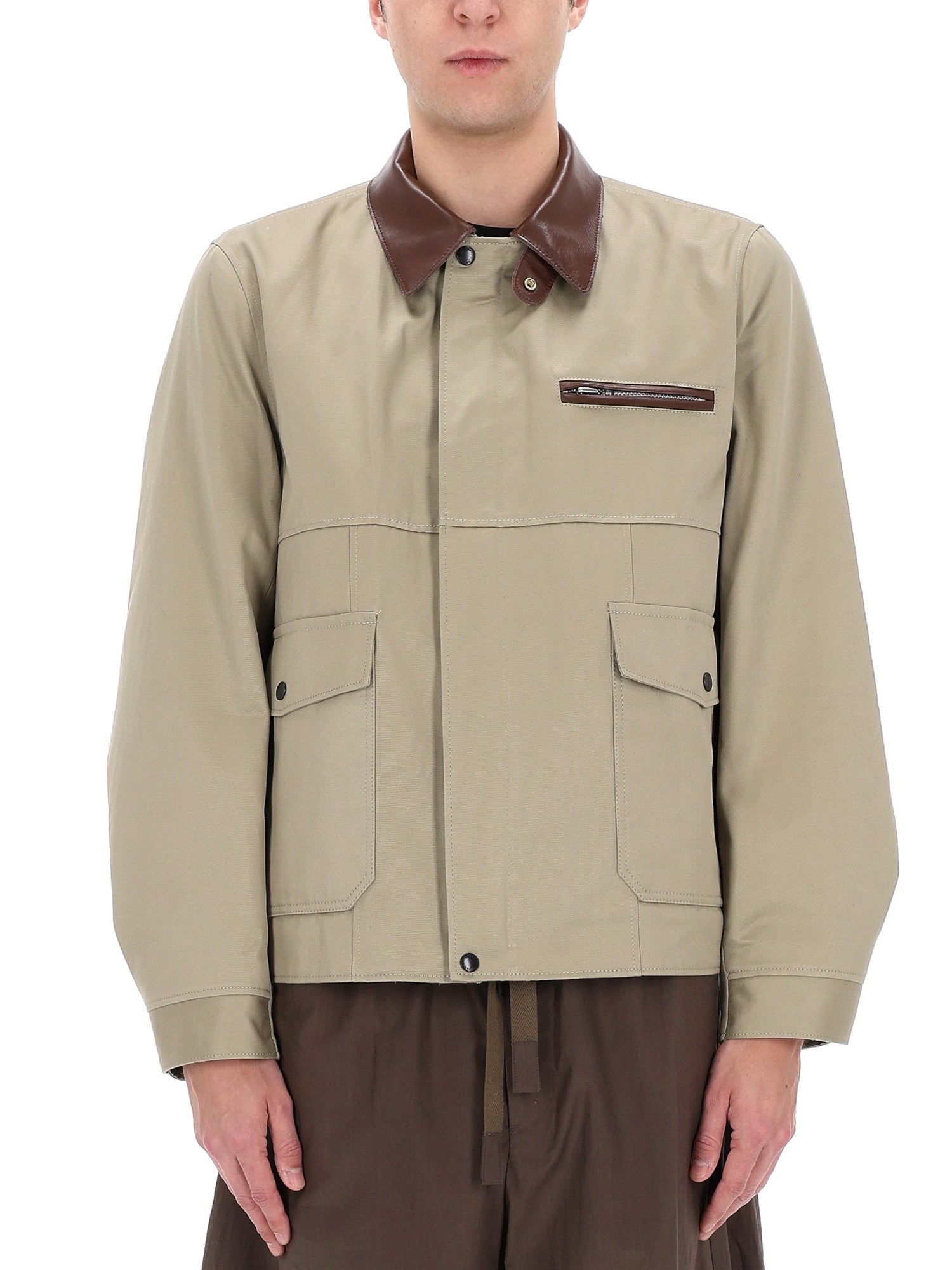 COTTON JACKET WITH LEATHER COLLAR