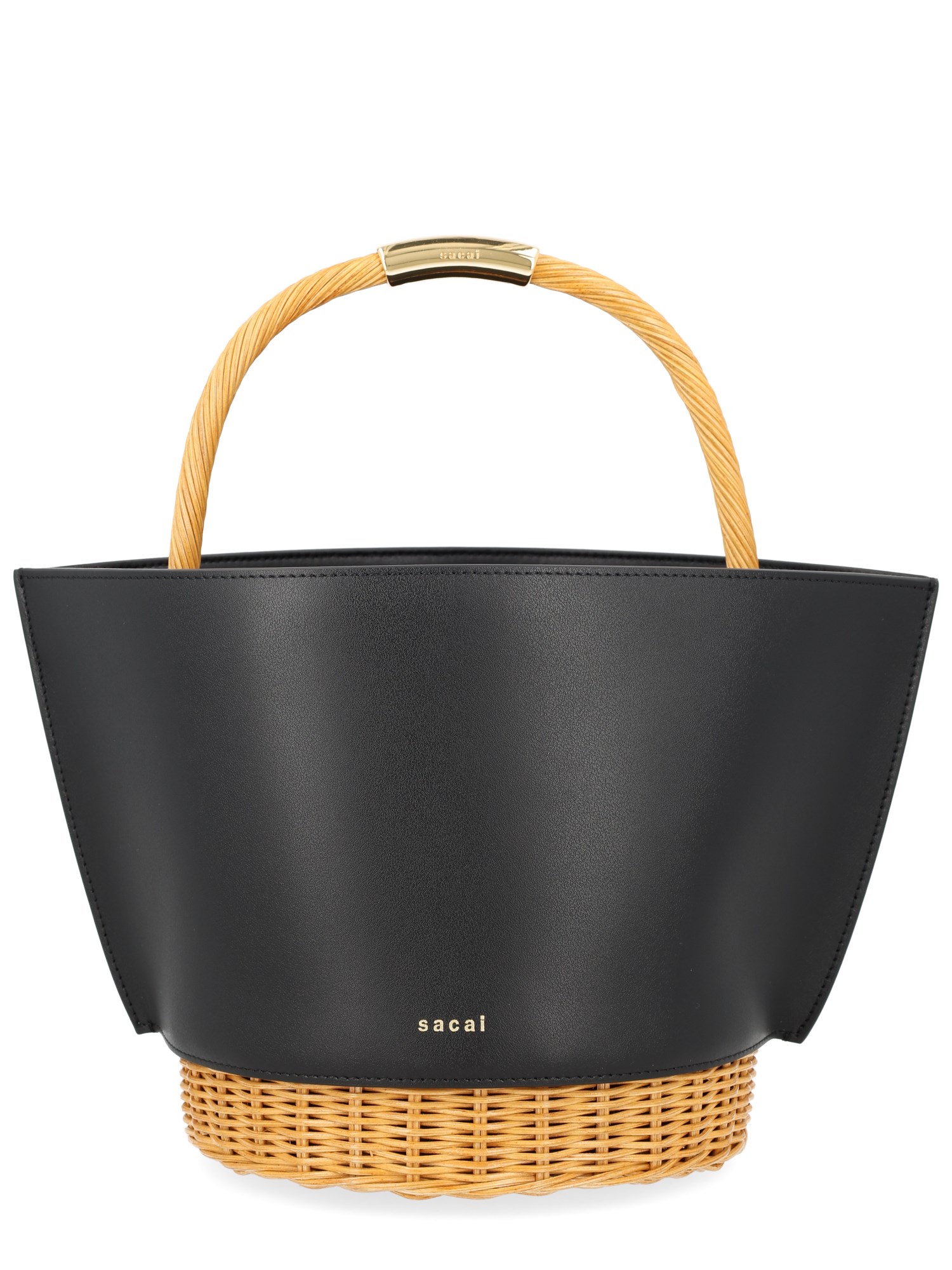LEATHER X RATTAN BUCKET BAG