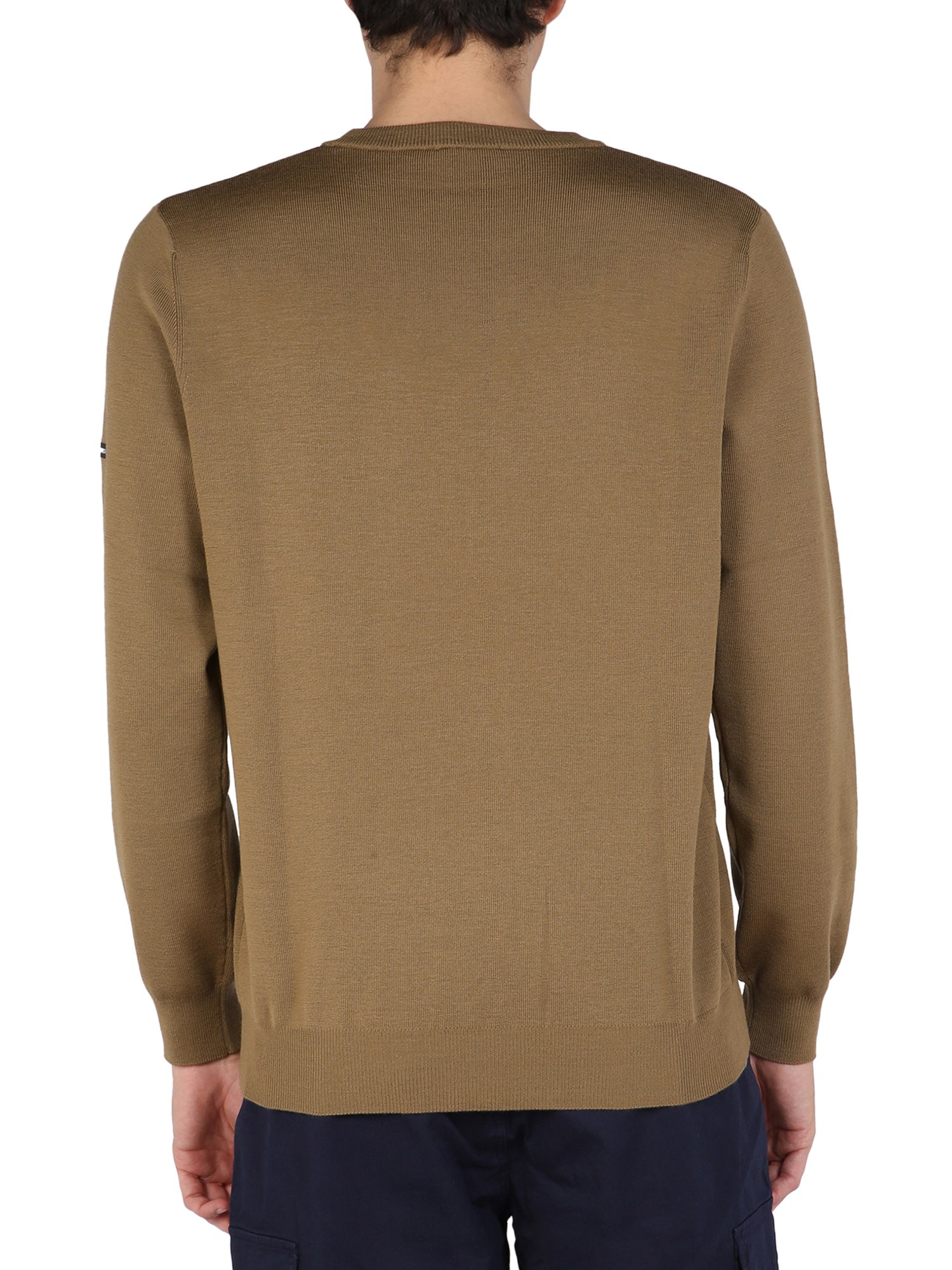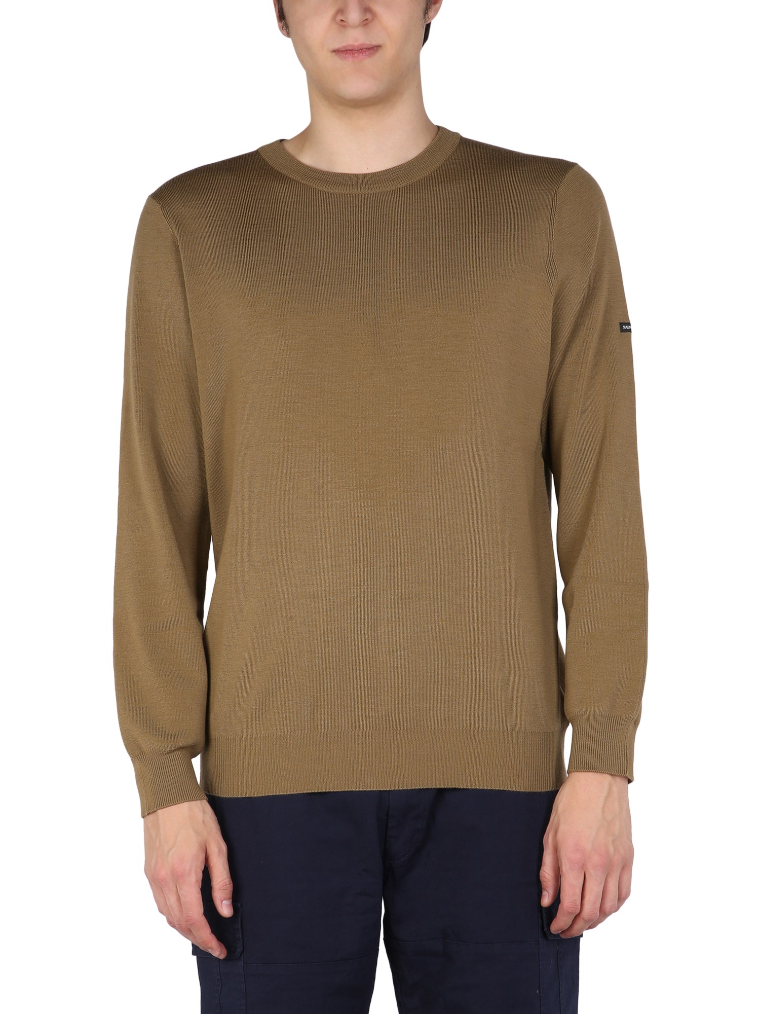 - ROUND NECK- RIBBED COLLAR, CUFFS AND BOTTOM- 100% MERINO WOOL- MODEL IS 190 CM TALL AND WEARS SIZE L