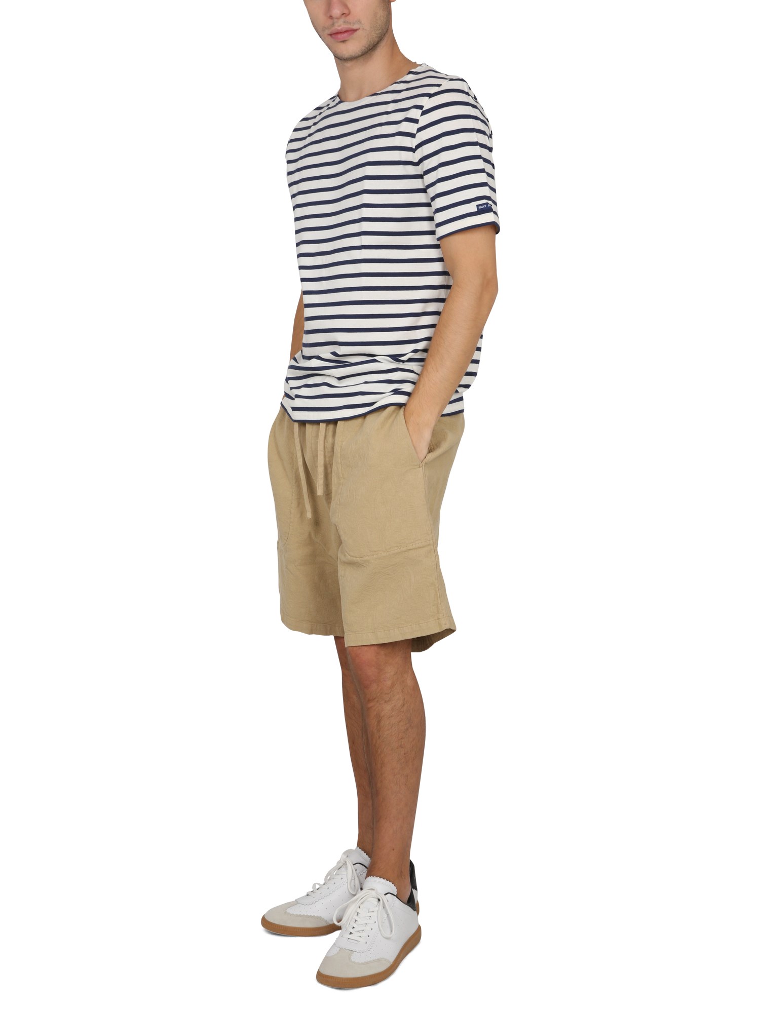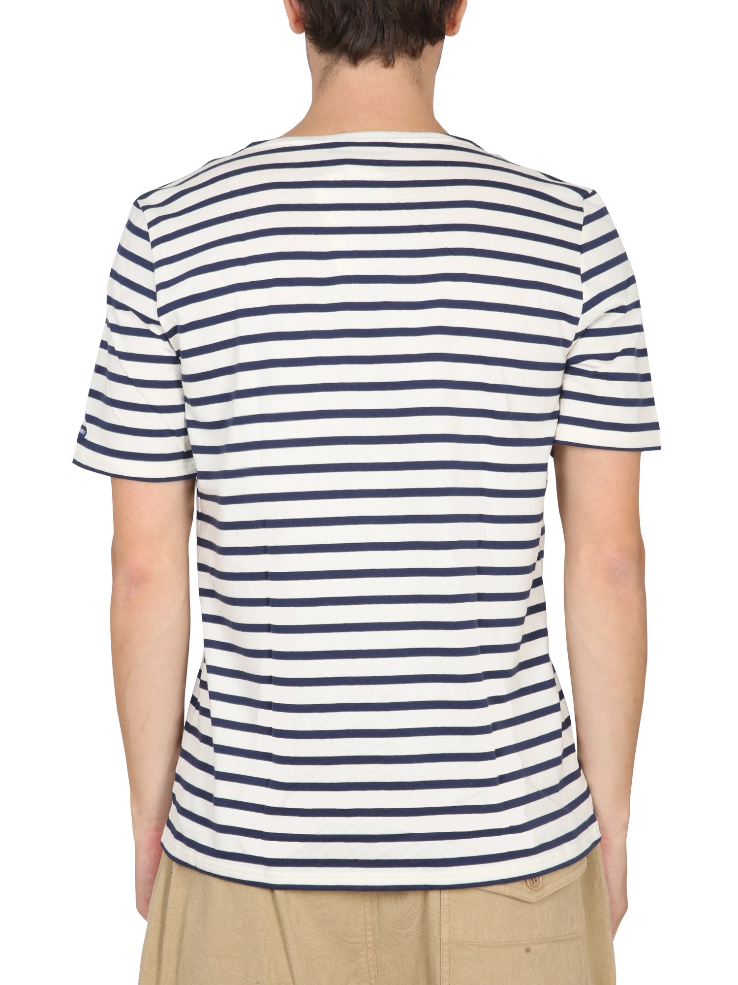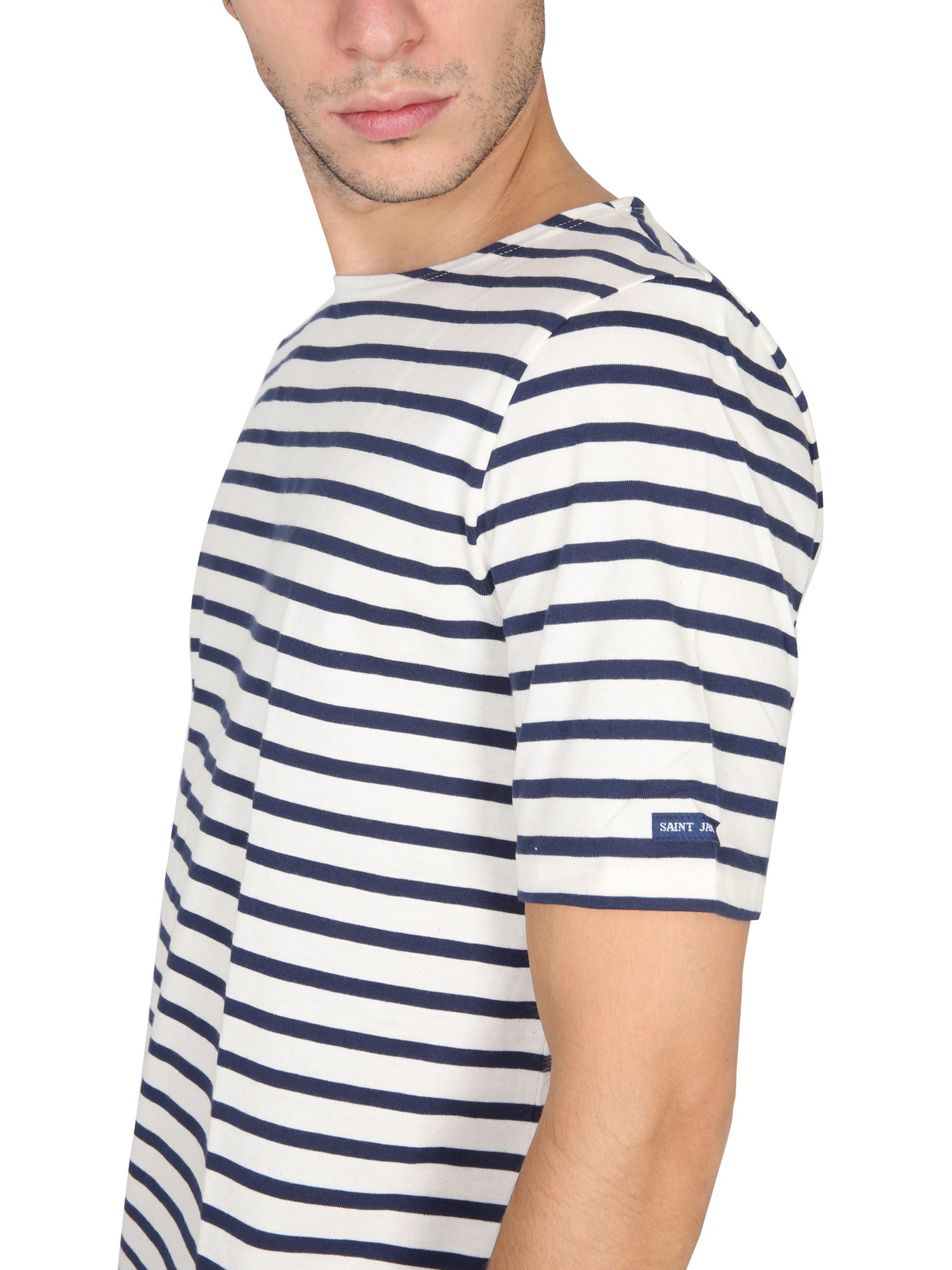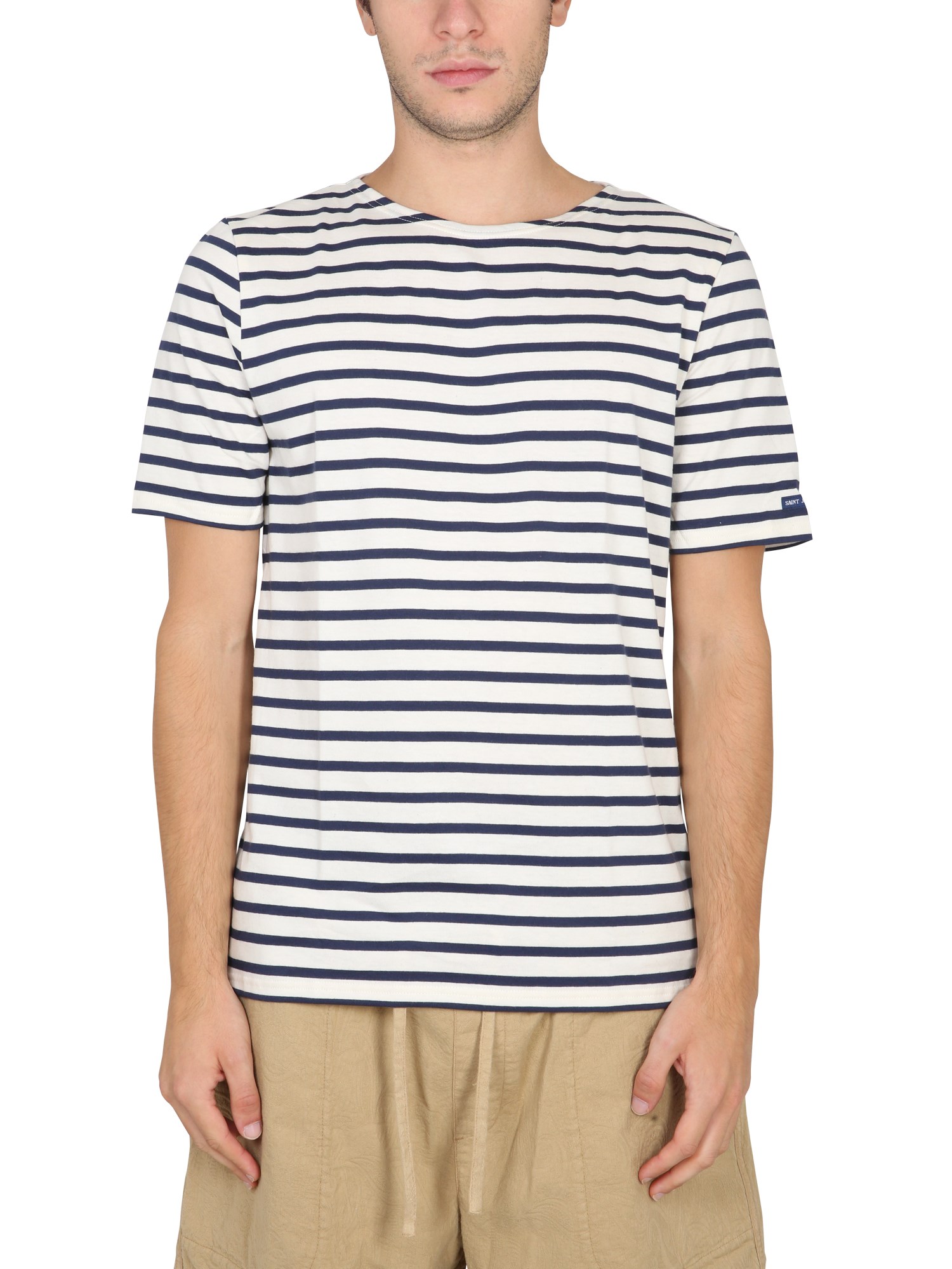 The striped cotton T-shirt from Saint James is an excellent piece for layering. With a round neckline and short sleeves, this is a casual top that will pair well with jeans and a jacket. With its round shoulder, short sleeve, and regular fit, this cotton T-shirt is sure to be a staple in your wardrobe.