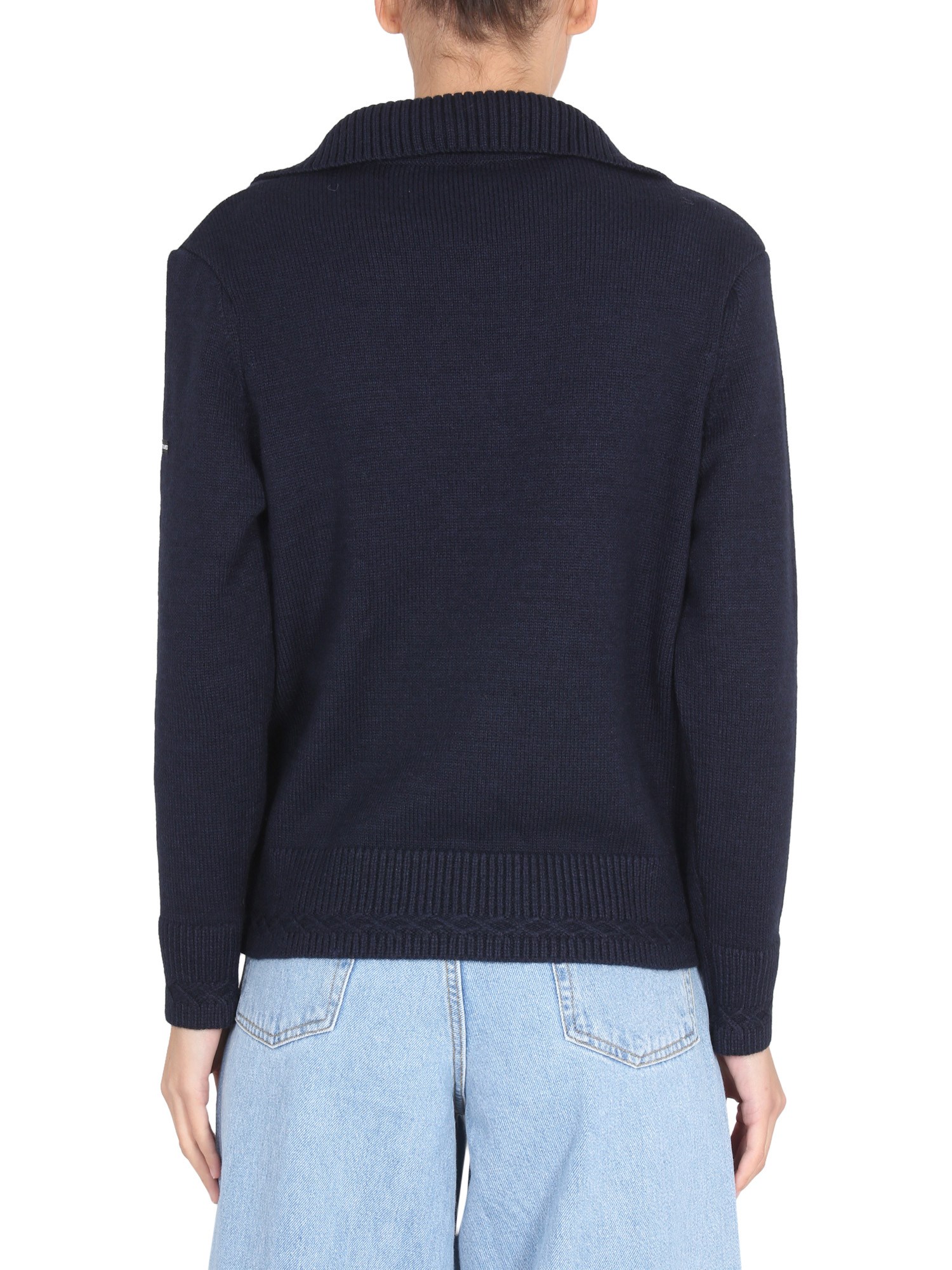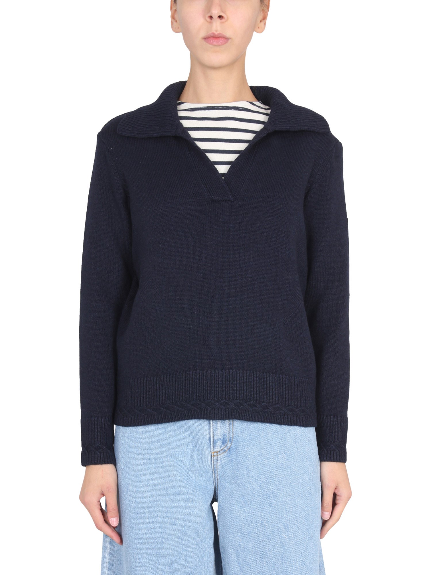 The wool V-neck full sleeve sweater from Saint James is a product that is made of a high-quality wool that has been carefully hand-knit. It has a V-neck and a full sleeve, which is designed to fit snugly and keep the wearer warm. The sweater is made of a wool material that is perfect for those chilly nights.