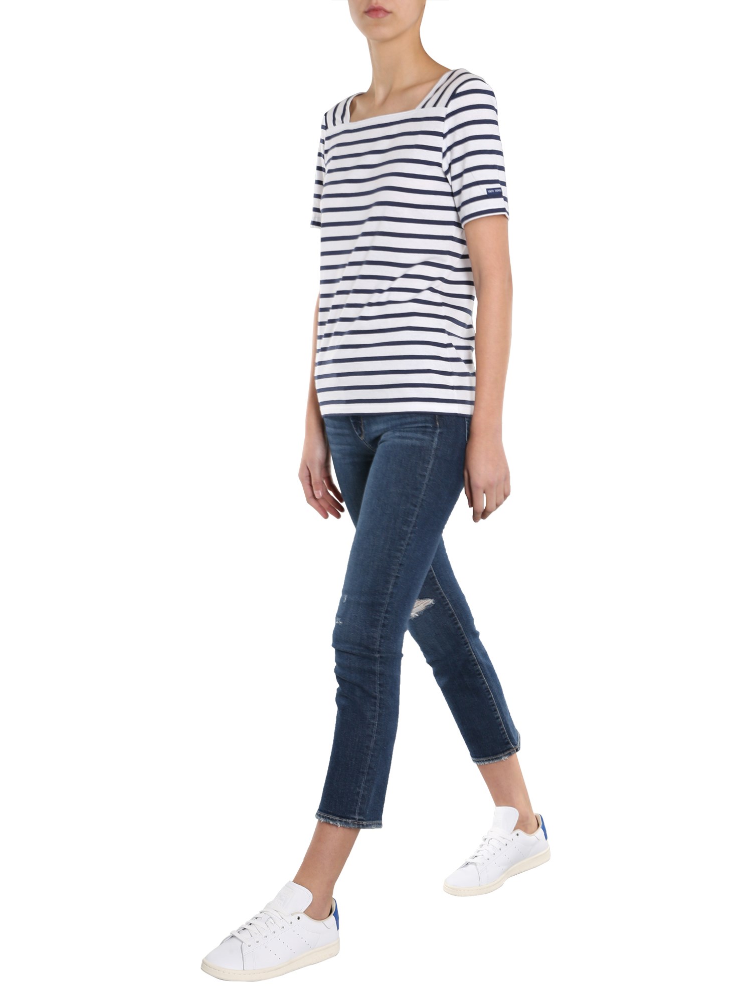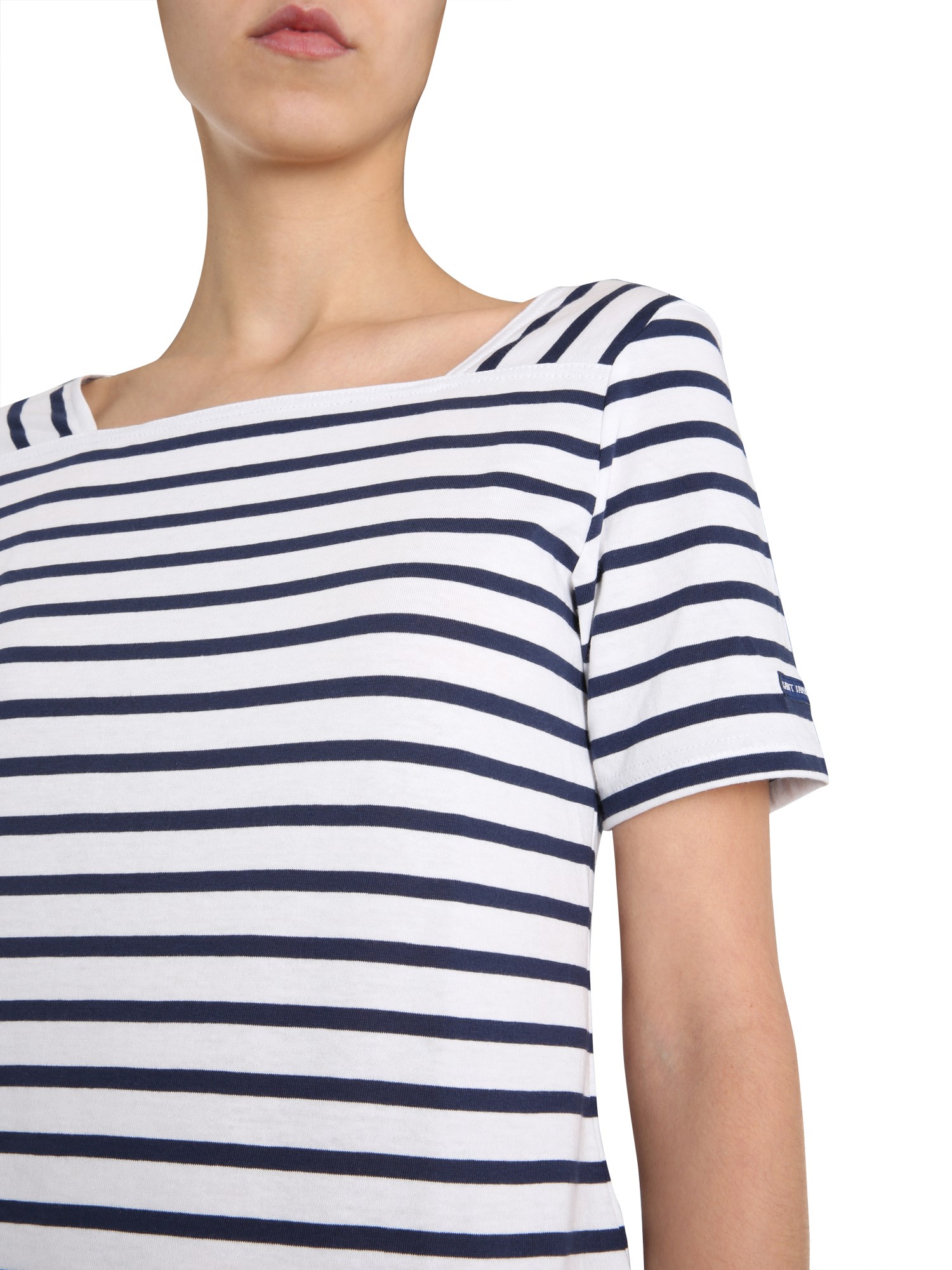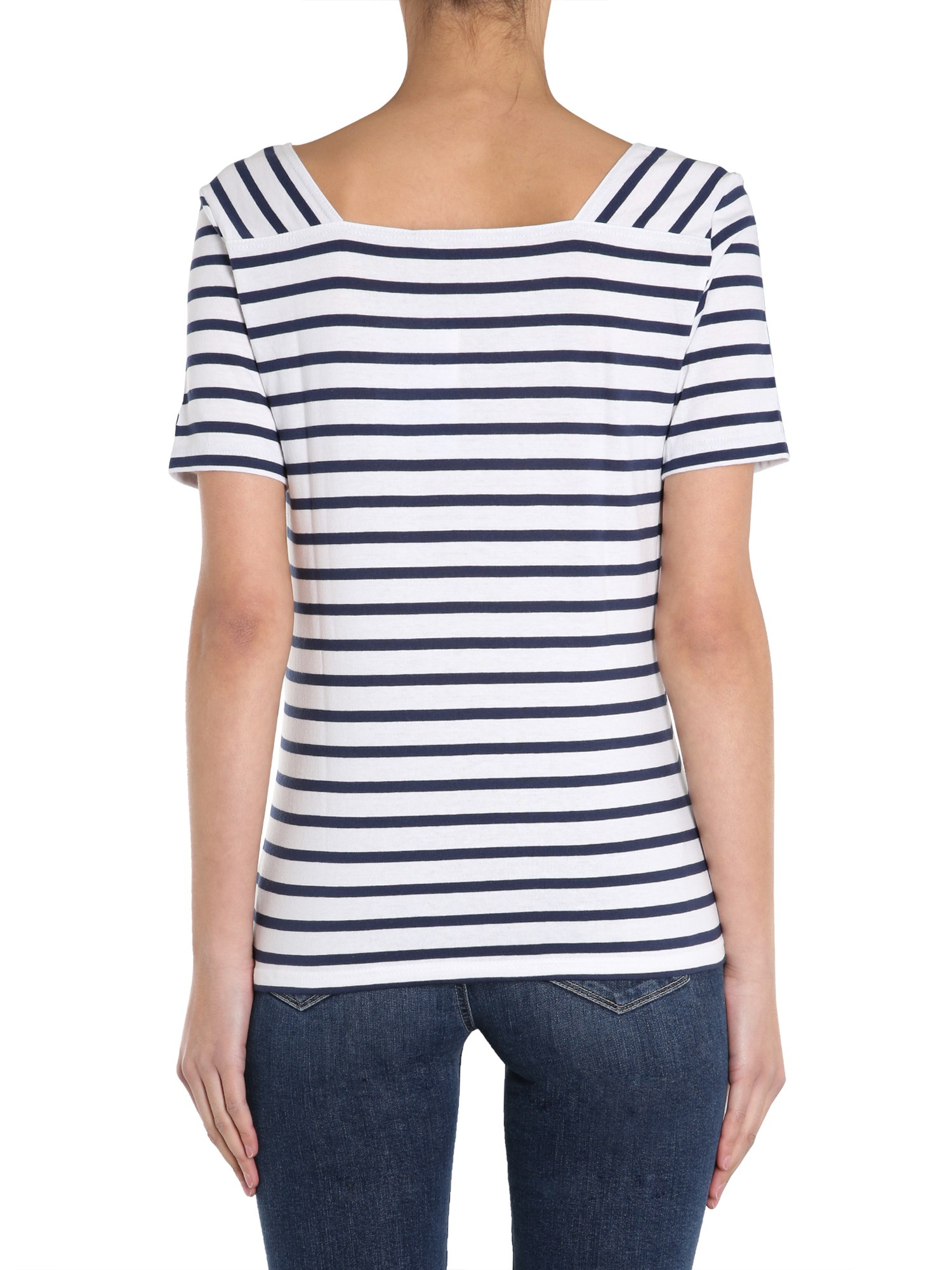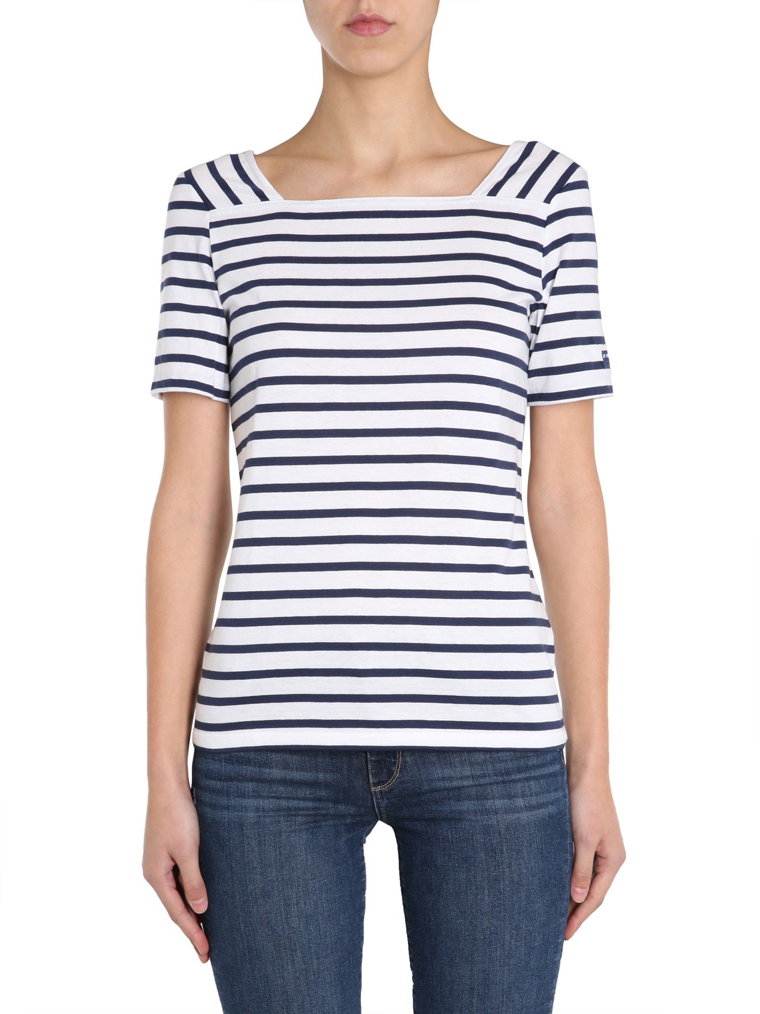 Simple and comfortable, this "Pleneuf" T-shirt from Saint James is your pick for upgrading your summer wardrobe. This cotton based T-shirt is soft, breathable and will keep you sweat-free all day long. The straight neck design combines with striped pattern to give a perfect summer appropriate look.